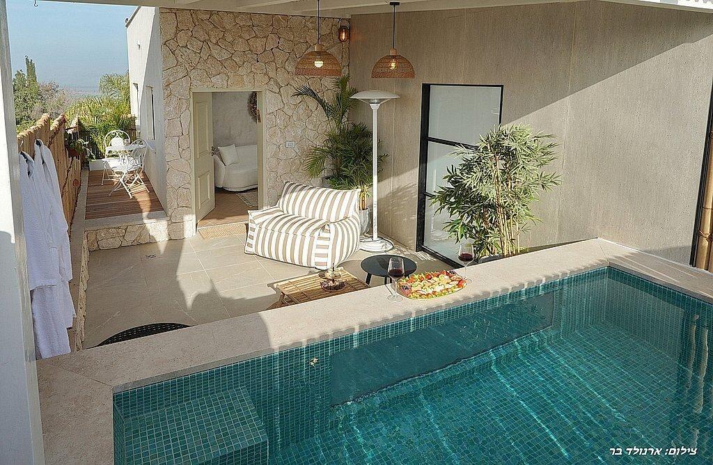 סוויטות שילו מזמינות אתכם להתפנק בשתי סוויטות יוקרה חדשות המגדירות מחדש את המושג פרטיות. סוויטת טרה עם בריכה מחוממת ל 38 מעלות וסוויטת סיינה עם ג'קוזי ספא חיצוני מציעות עיצוב נכון ואבזור מפנק הכולל חלוקים ונעלי ספא. המתחם משלב נוף לעמק עם קרבה לנחלים ולאתר החרמון. כדאי לדעת: המתחם מיועד לזוגות בלבד (קומה 2) ומבטיח דיסקרטיות. קיימת בריכת דגים לפדיקור וחניה פרטית. מותאם לציבור שומר המסורת עם אבזור שבת ובית כנסת קרוב. הגשימו את חלום הנופש היוקרתי והזמינו עוד היום.
