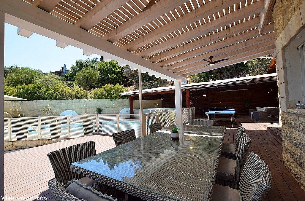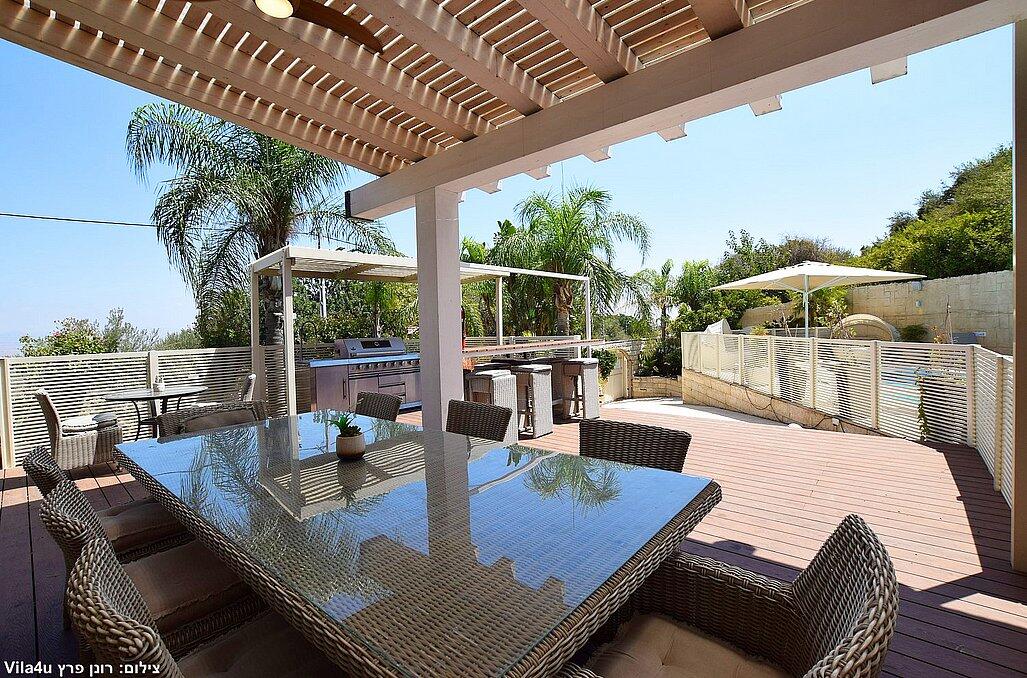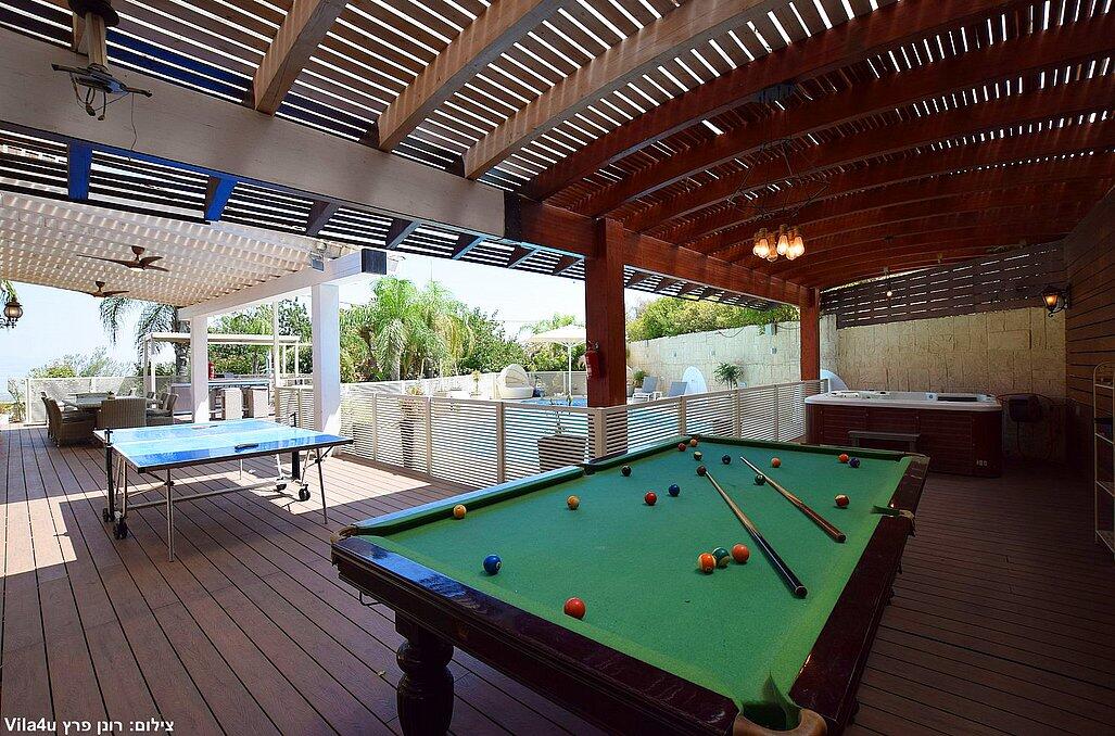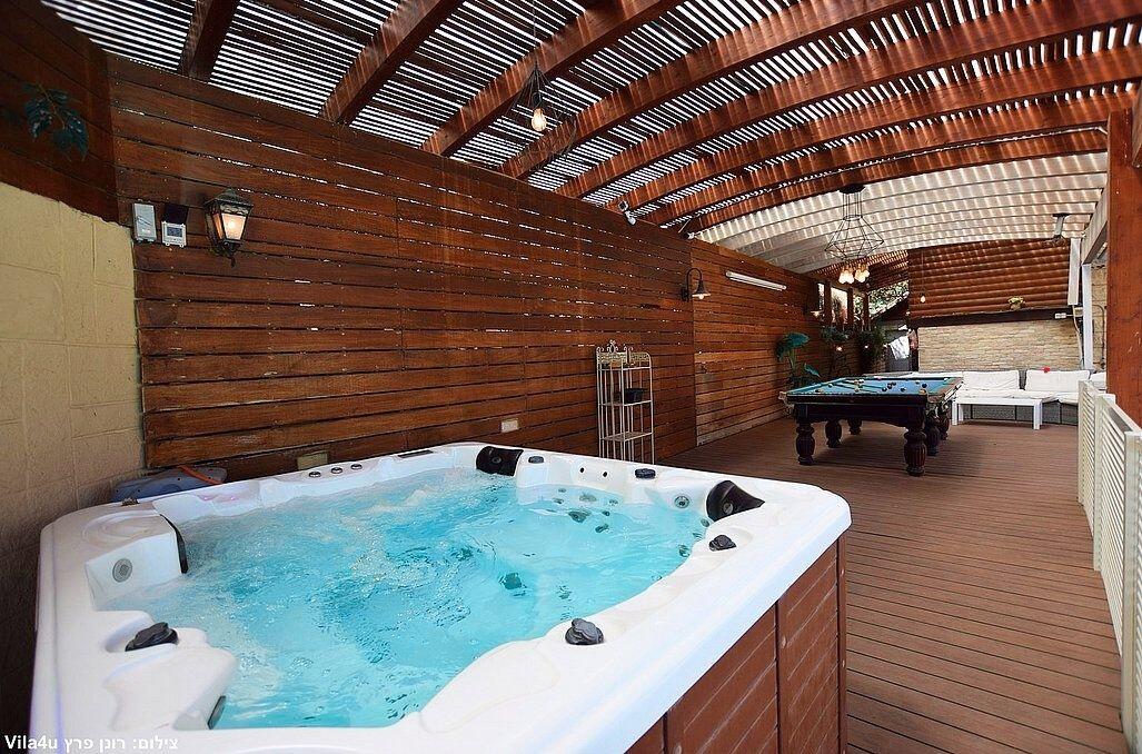 הוילה קרובה לחרמון ולמגוון מרכזי קניות ונמצאת רק 30 דקות מהכנרת, 9 חדרי שינה, בריכת שחייה מחוממת בחורף, ג'קוזי ספא, משחקי שולחן ועוד.