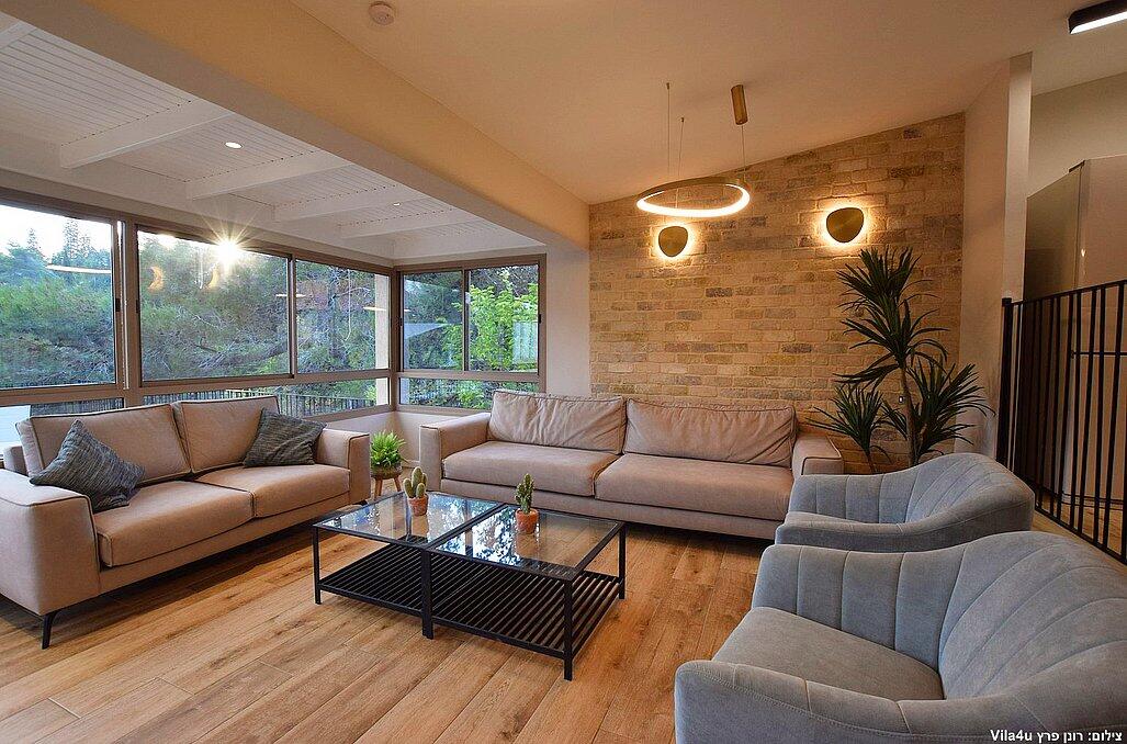 בוילה תהנו מ4 חדרי סוויטות עם חדרי רחצה פרטיים, חצר עם ג'קוזי ספא מפנק, משחקי שולחן ועוד..