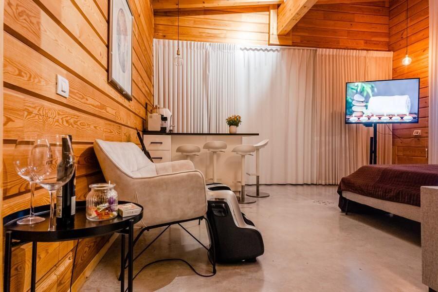 סוויטת אננדו מציעה חוויה יוקרתית לזוגות המעוניינים בשקט ובחיבור אמיתי. בלב השרון, בין עצים ירוקים וניחוחות טבע, הסוויטה מעוצבת בעץ חמים ומצוידת בג’קוזי זוגי, סאונה, מיטה זוגית אורטופדית ומטבח מאובזר.