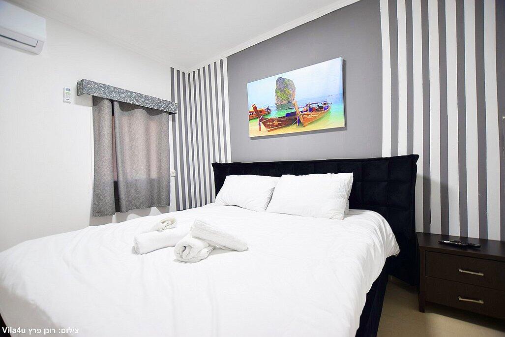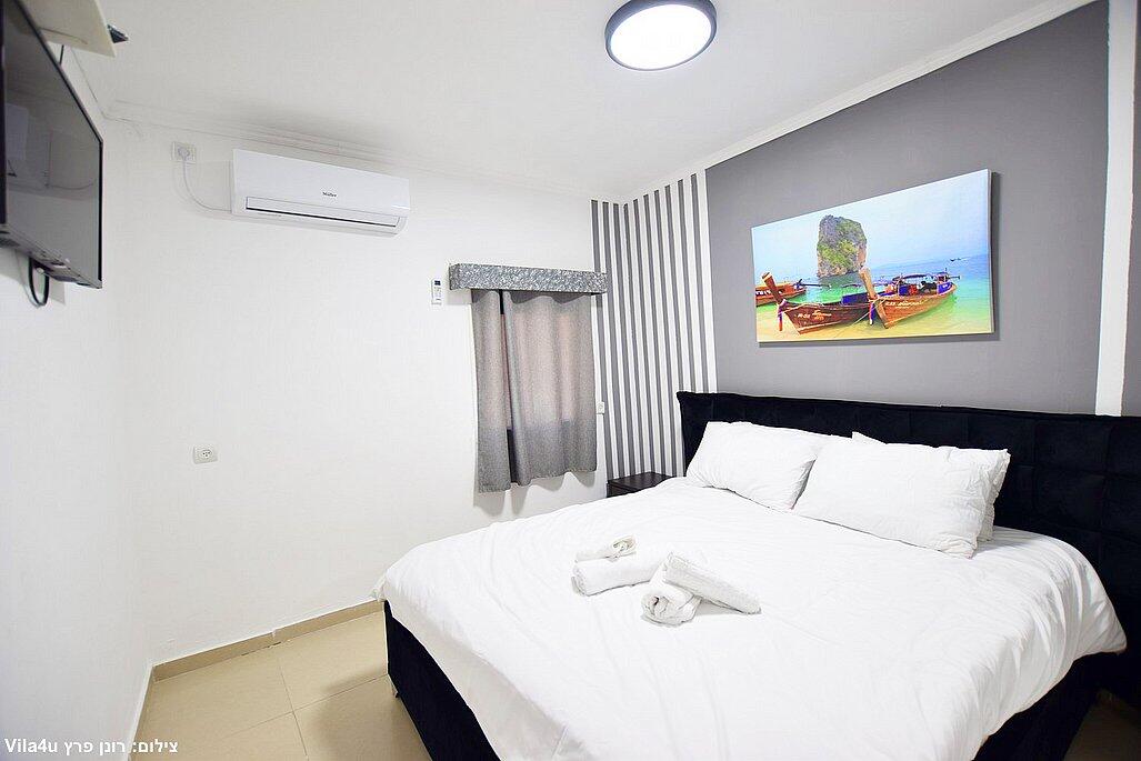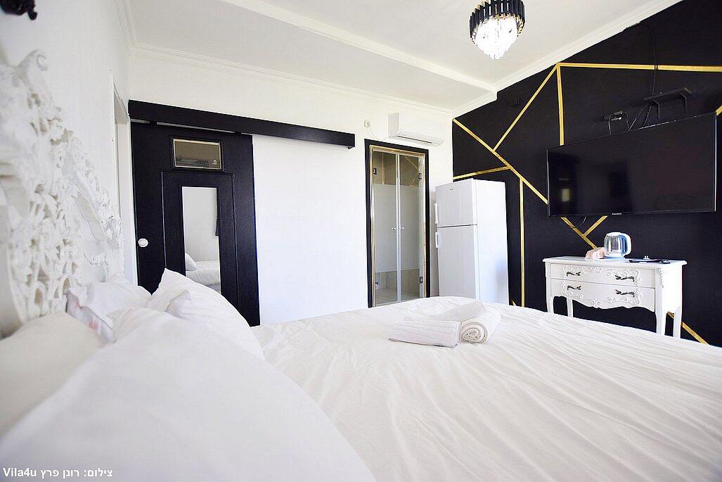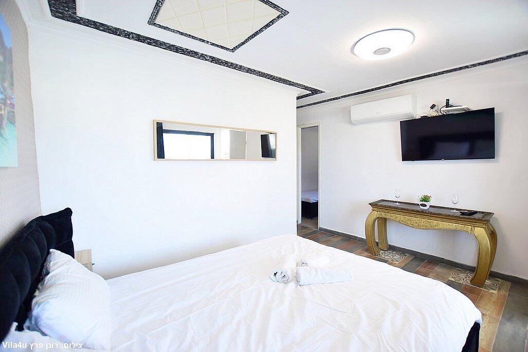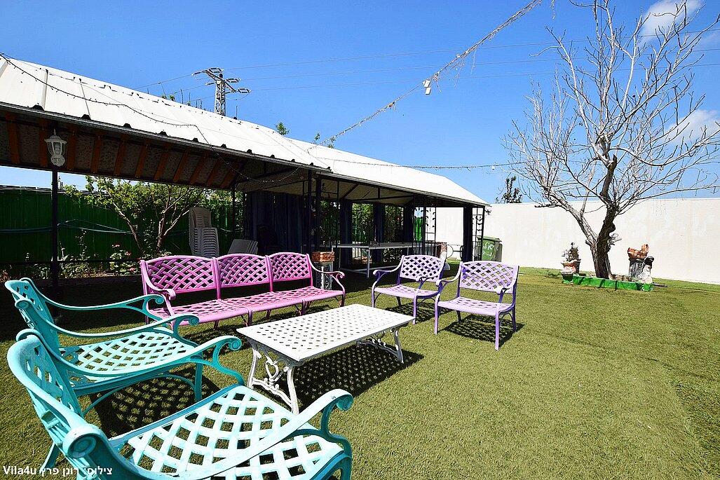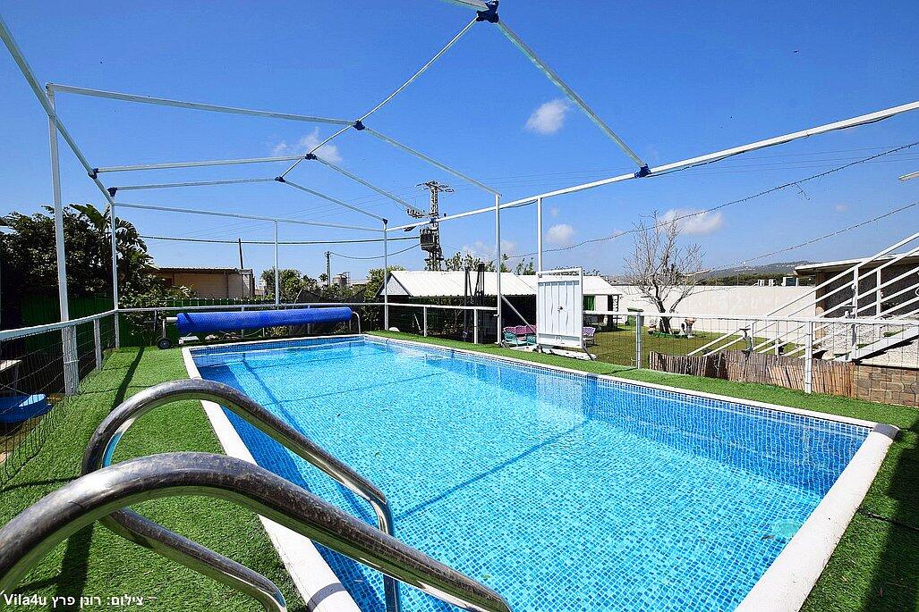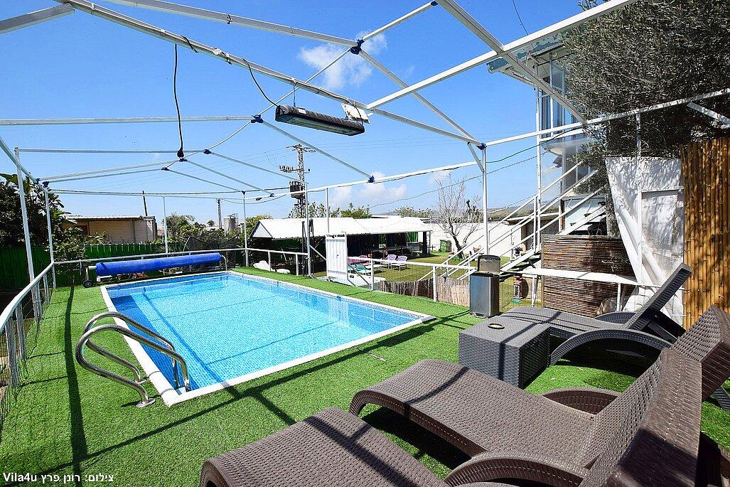 החצר המושקעת כוללת בריכה מחוממת, ג'קוזי ספא, פינת מנגל, שולחן פינג פונג, טרמפולינה לילדים ועוד. המקום אידיאלי לחופשה זוגית, משפחתית או קבוצתית עד 20 איש.
