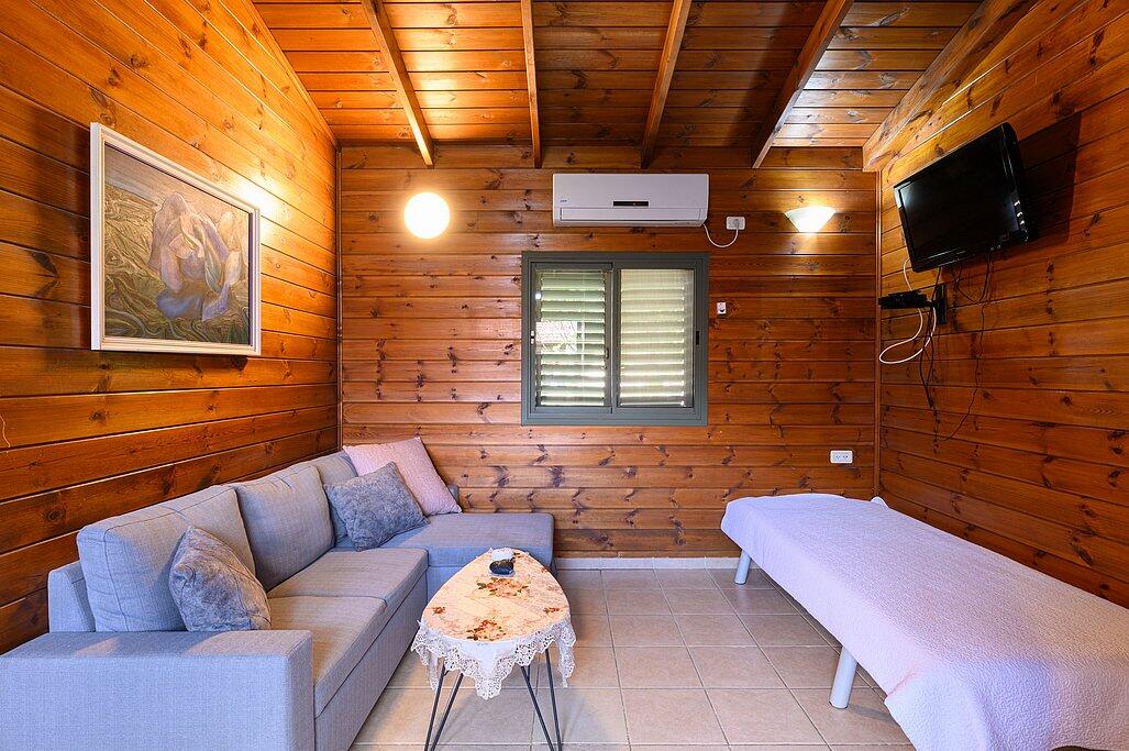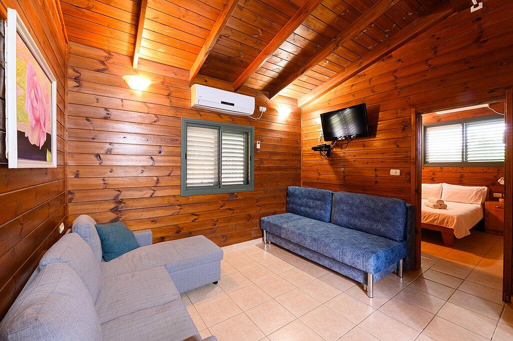מערכת ישיבה נוחה, מטבחון, טלוויזיה, חדר שינה מפנק.