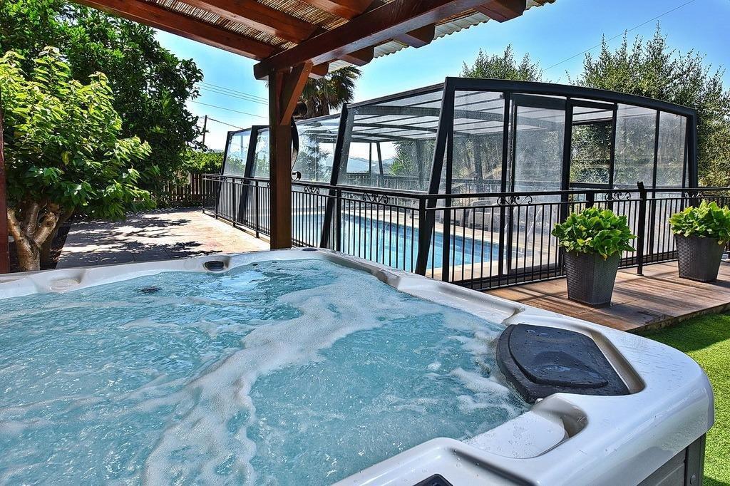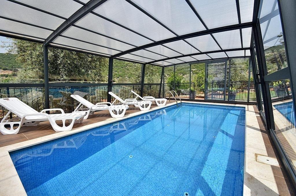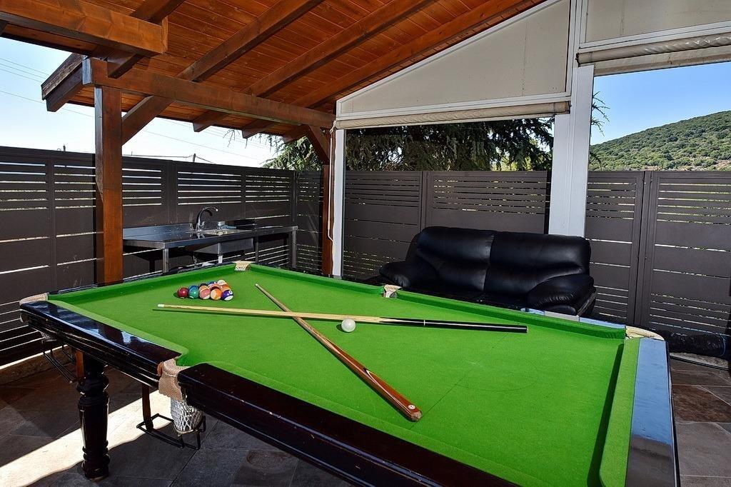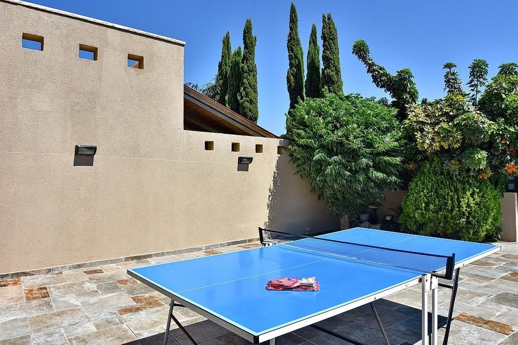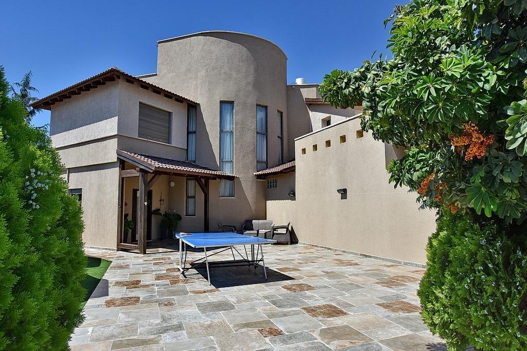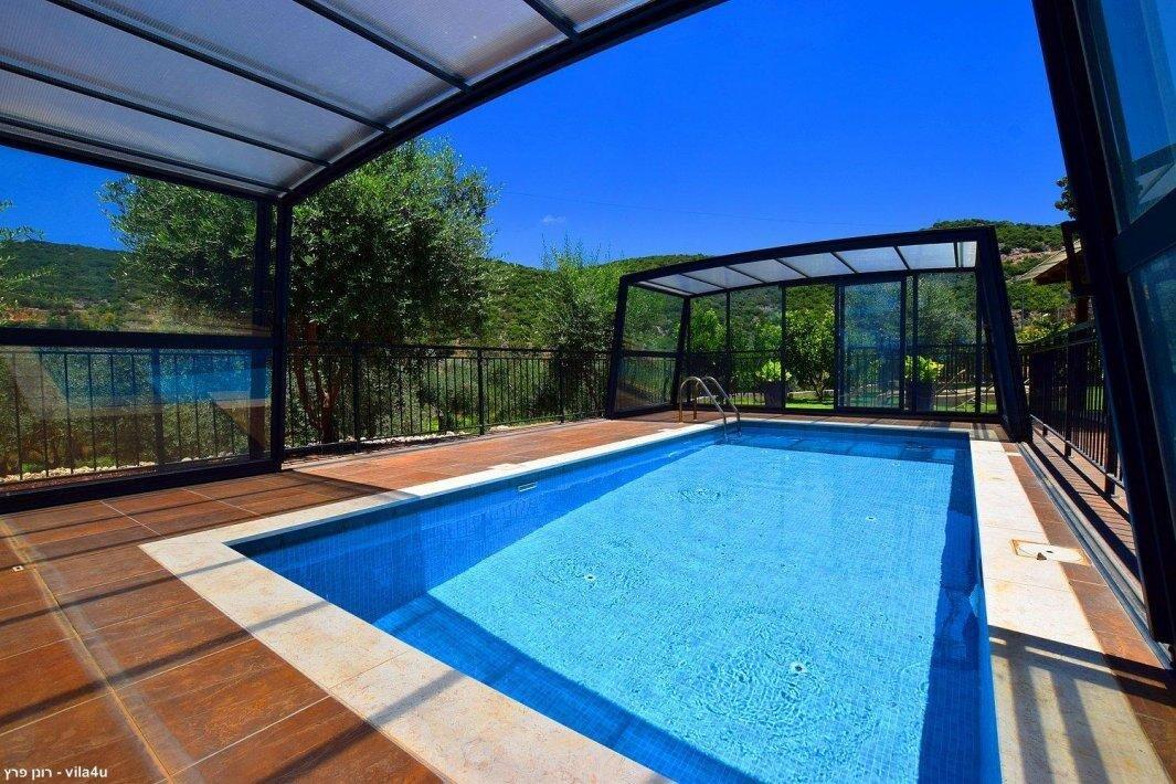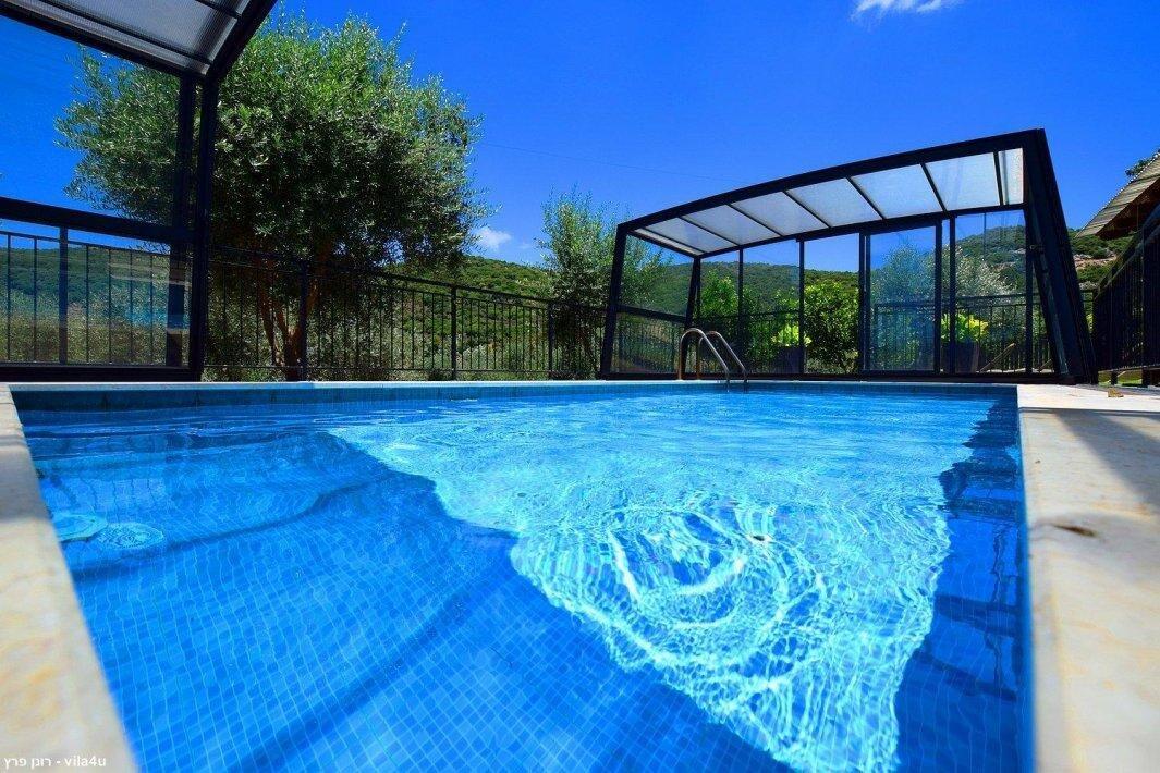 למתחם חצר ענקית ומטופחת עם בריכה גדולה מחוממת ומקורה בעונת החורף הקרה, ג'קוזי ספא מפנק, שולחנות משחק , עמדת מנגל , פינות ישיבה ועוד ועוד ועוד