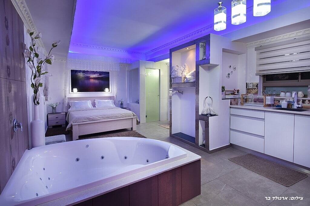 שלוש סוויטות מעוצבות בקפידה עם מרפסת פרטית, עמדת מנגל ופינת ישיבה מחכות לכם. במרכז המתחם תיהנו מבריכה מחוממת ומקורה, מתקני משחק לילדים ופינות ישיבה באווירה פסטורלית. המיקום המושלם מאפשר גישה נוחה לאטרקציות והמסלולים היפים ביותר בצפון הארץ.