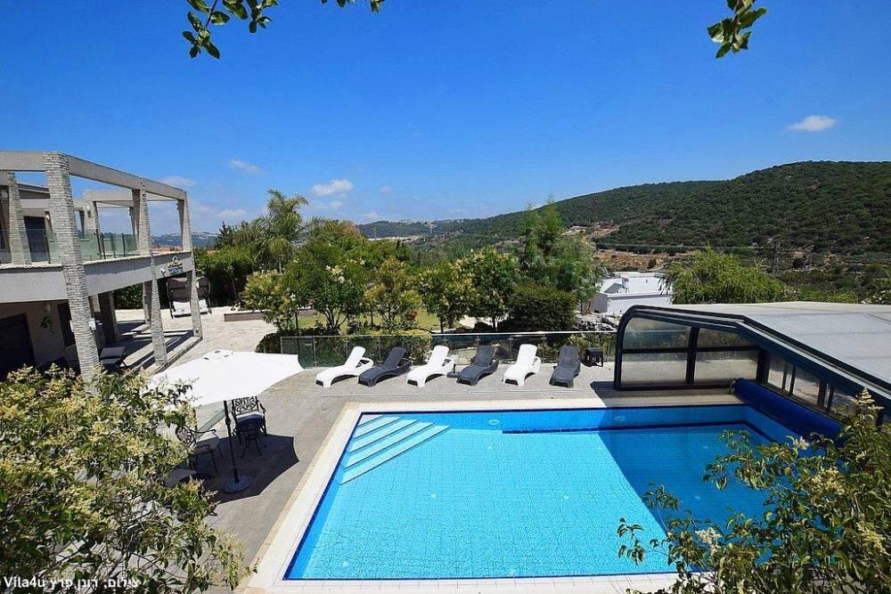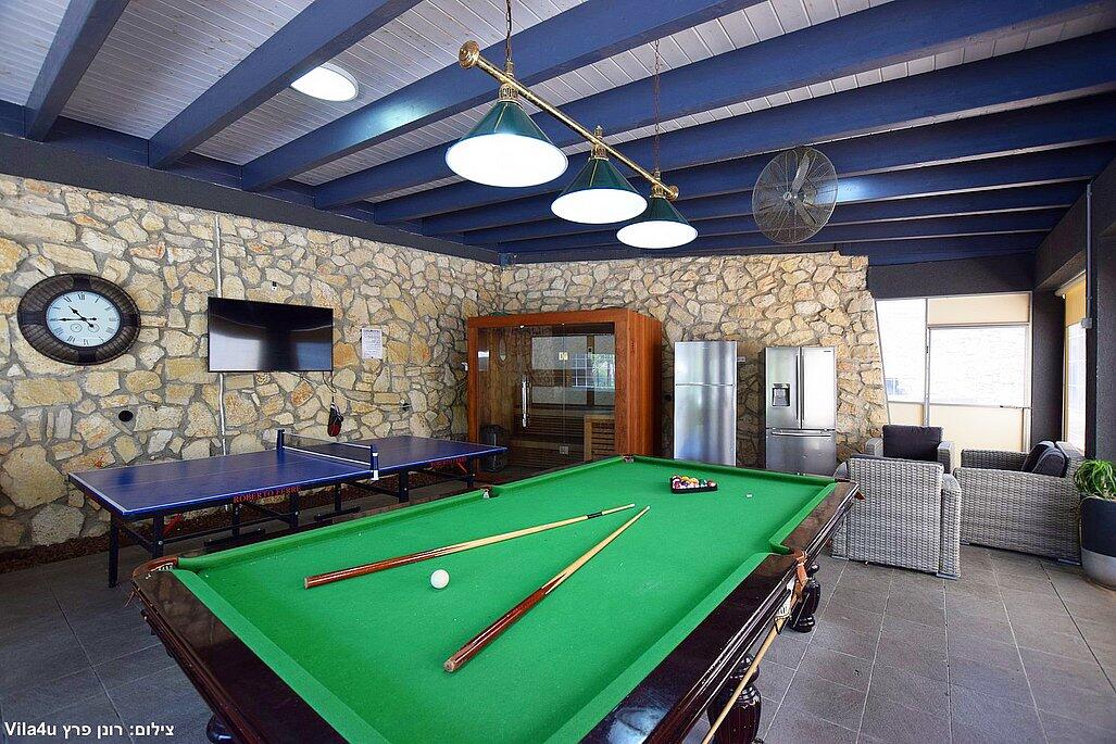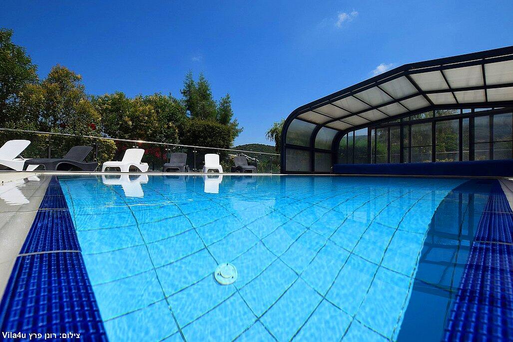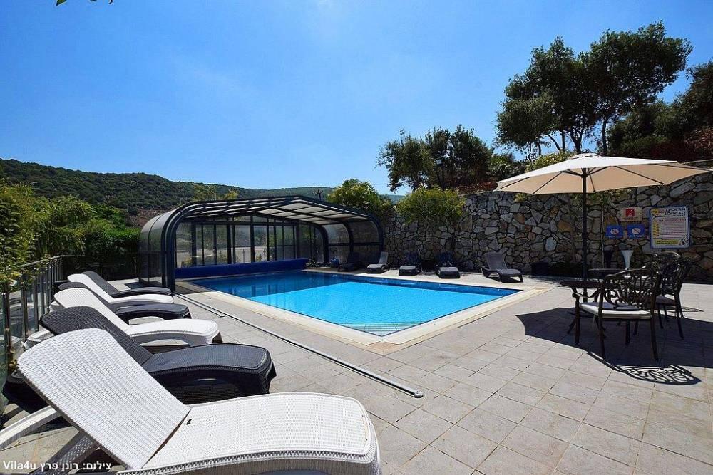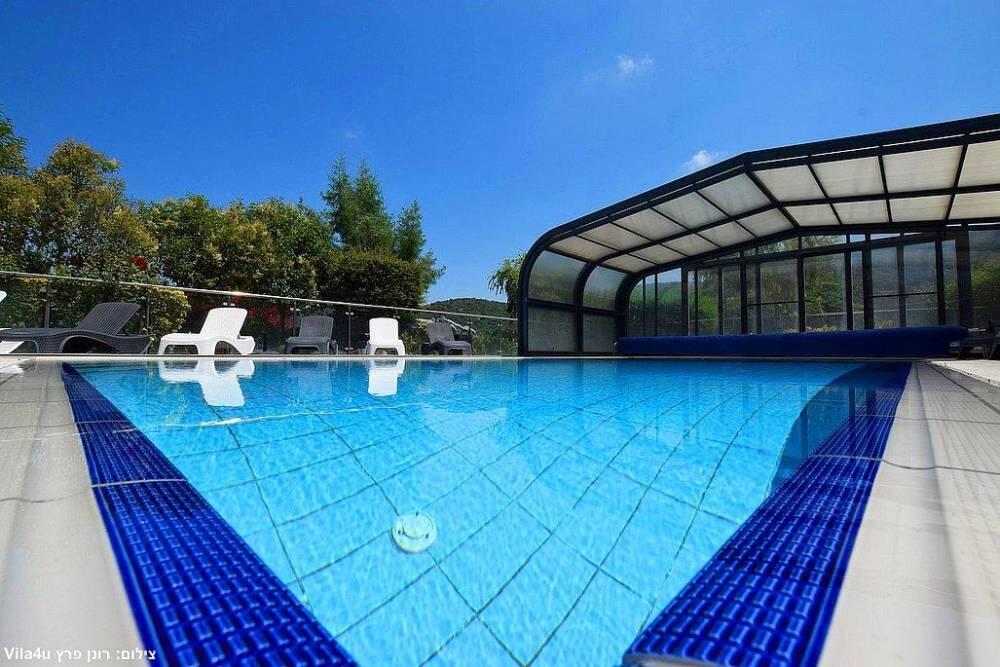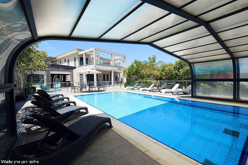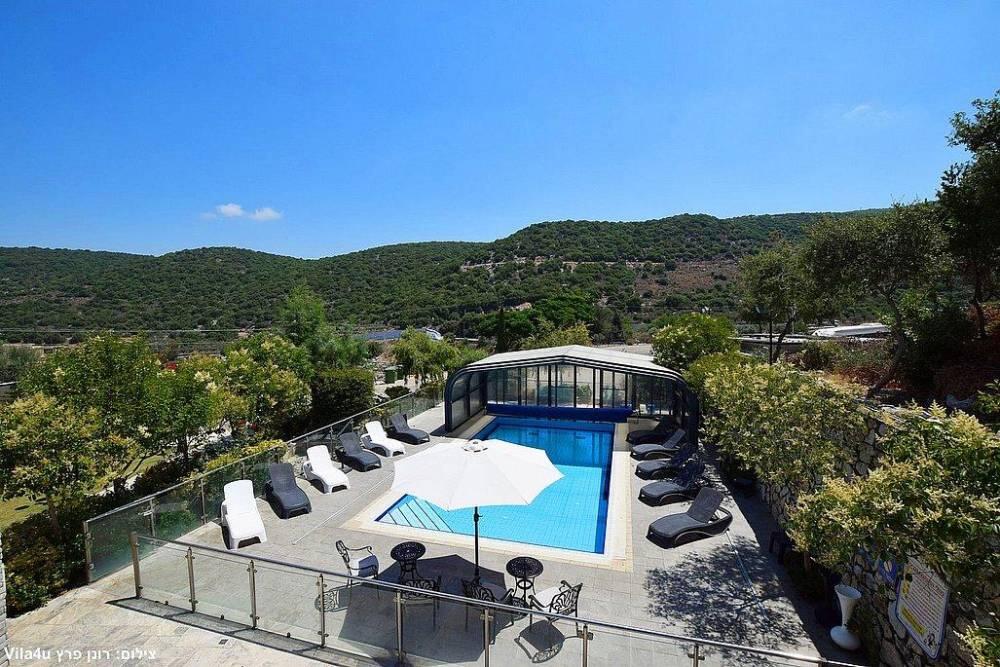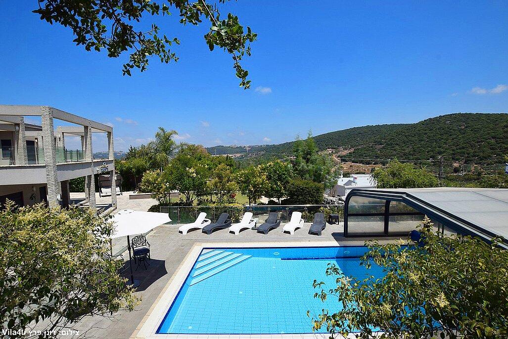 המתחם החיצוני משתרע אל מול נופים מדהימים עם בריכה מחוממת ומקורה בעונה הקרה, ג'קוזי ספא גדול, סאונה יבשה, שולחנות משחק , חצר ענקית ומטופחת עם תאוורת אווירה מלטפת.
