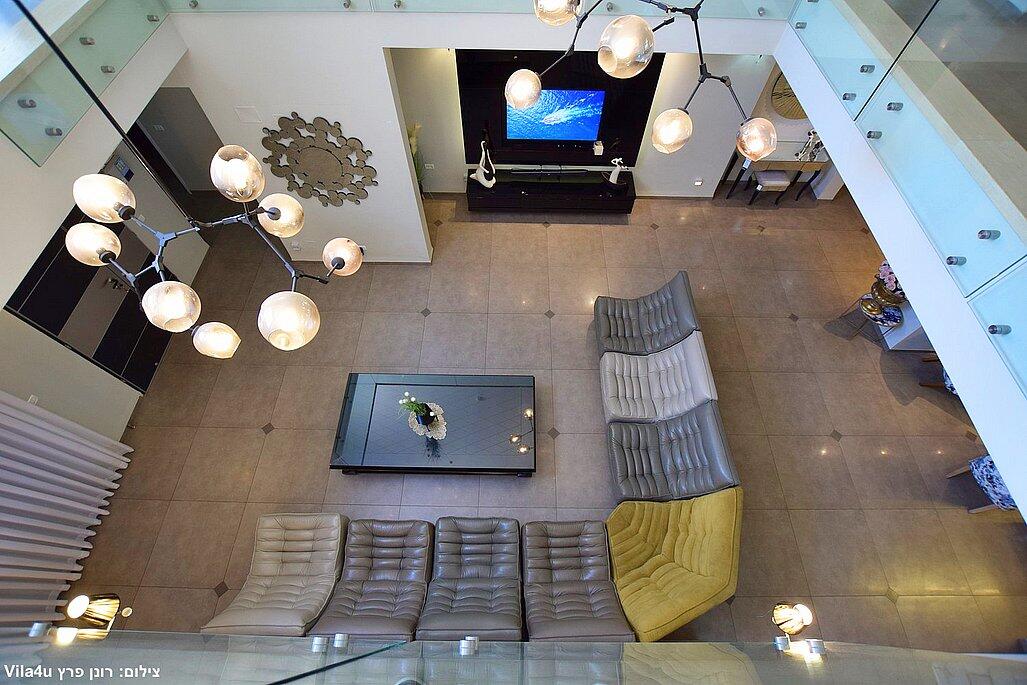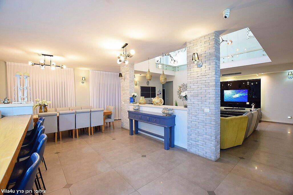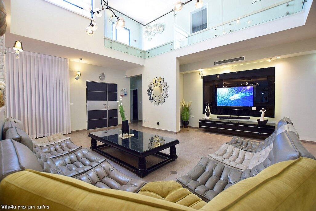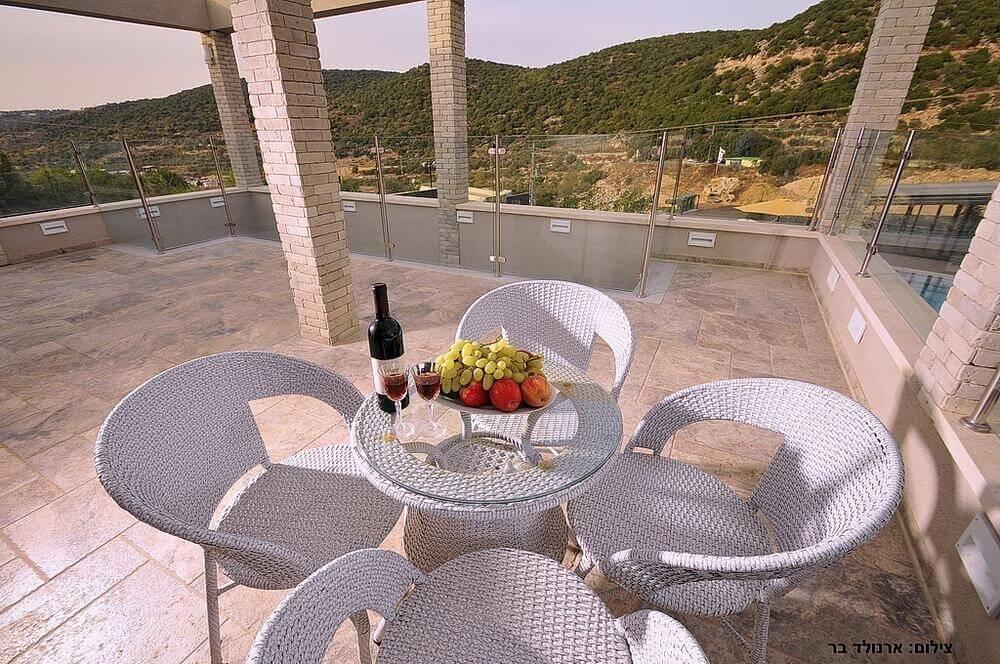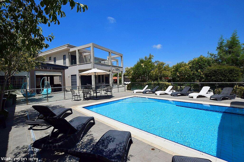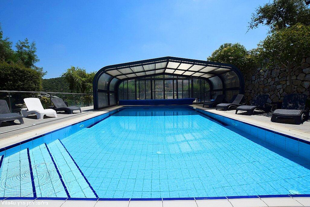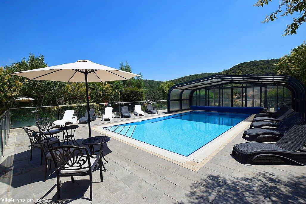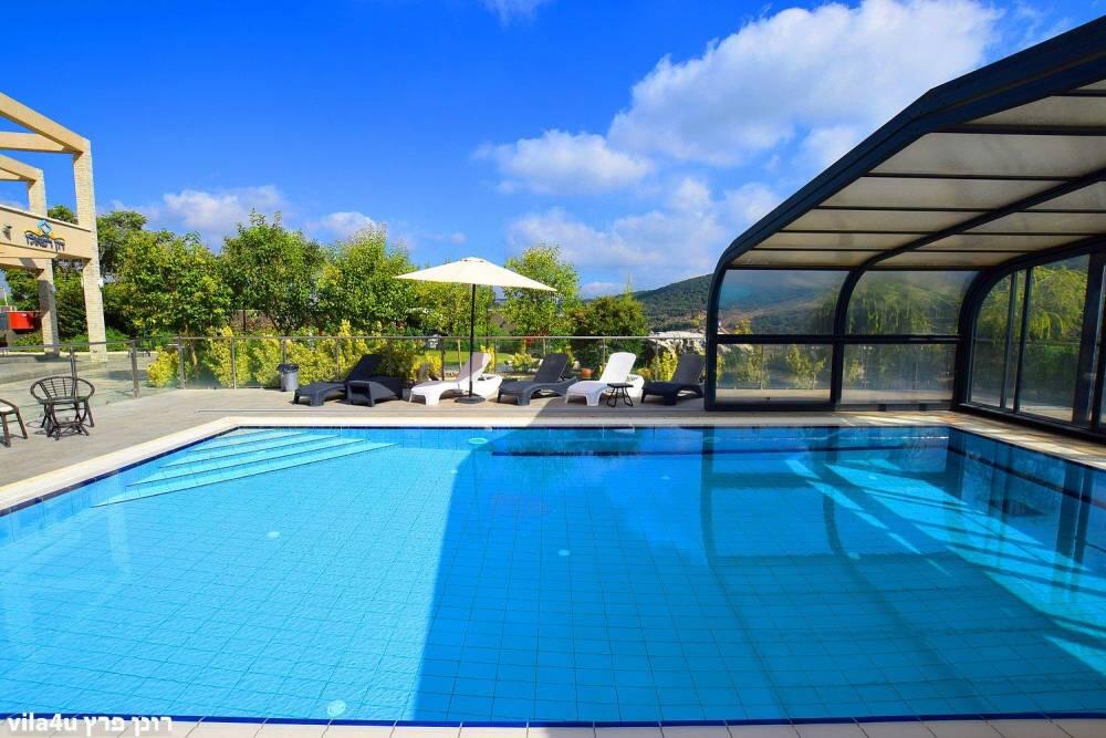 המתחם החיצוני משתרע אל מול נופים מדהימים עם בריכה מחוממת ומקורה בעונה הקרה, ג'קוזי ספא גדול, סאונה יבשה, שולחנות משחק , חצר ענקית ומטופחת עם תאוורת אווירה מלטפת.