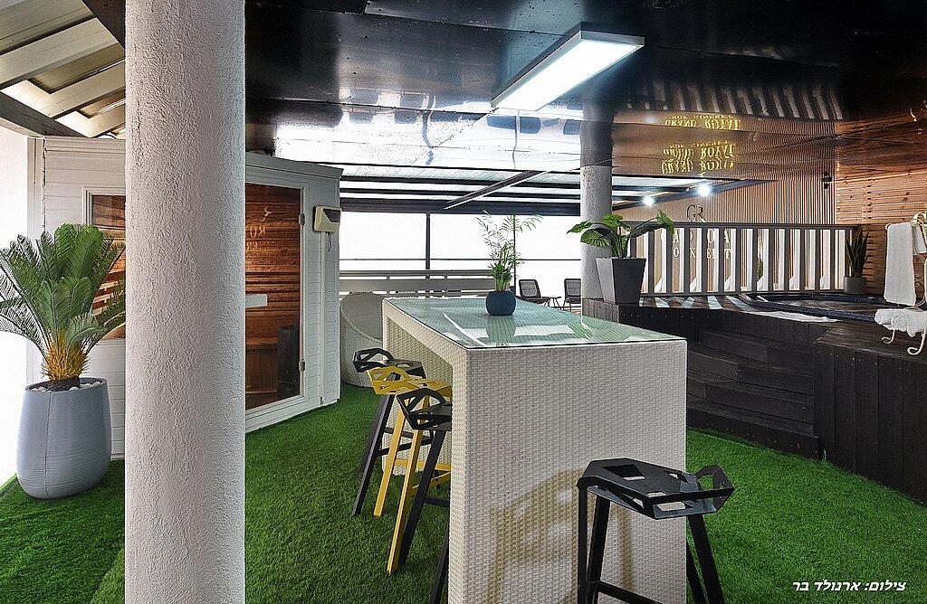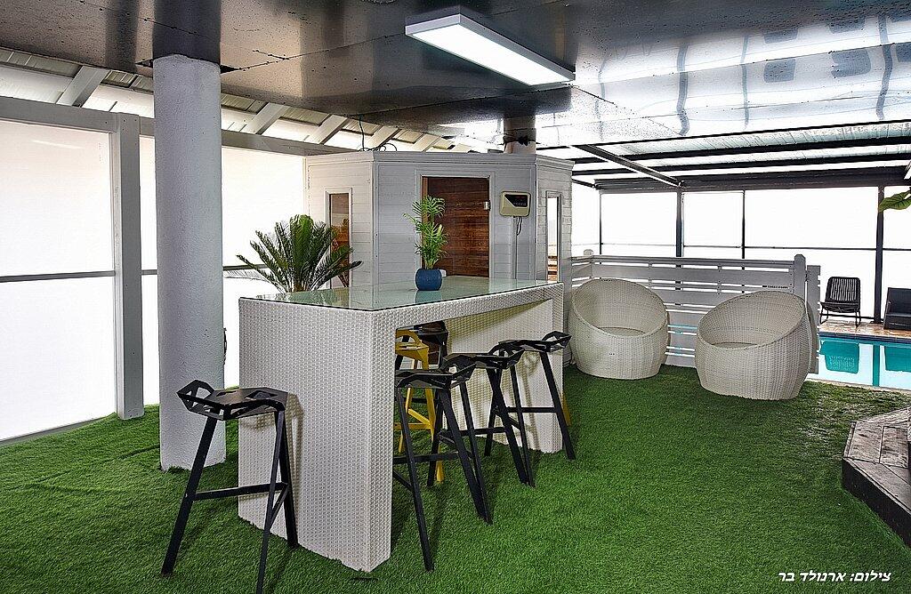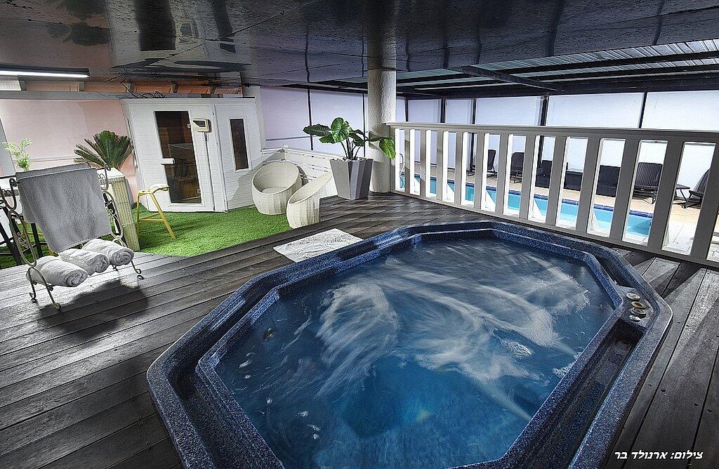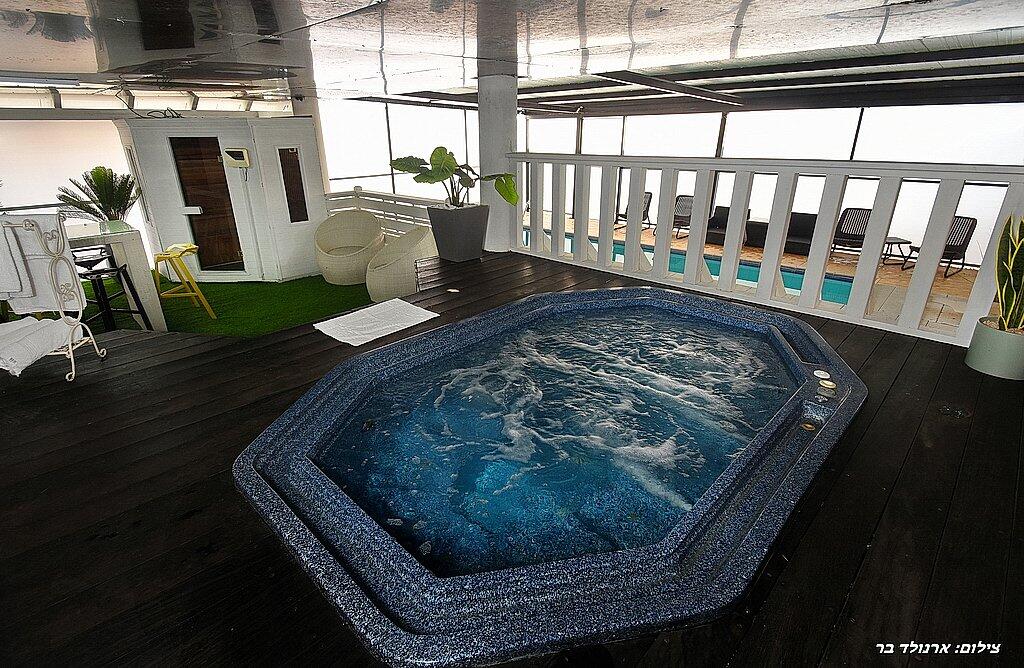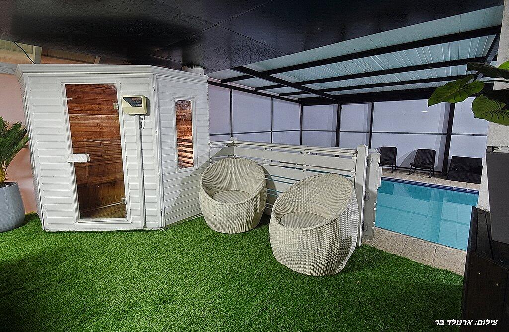 בוילה יש מתחם סגור עם בריכה, סאונה וג'קוזי גדול עם בר ישיבה ופינות רביצה.