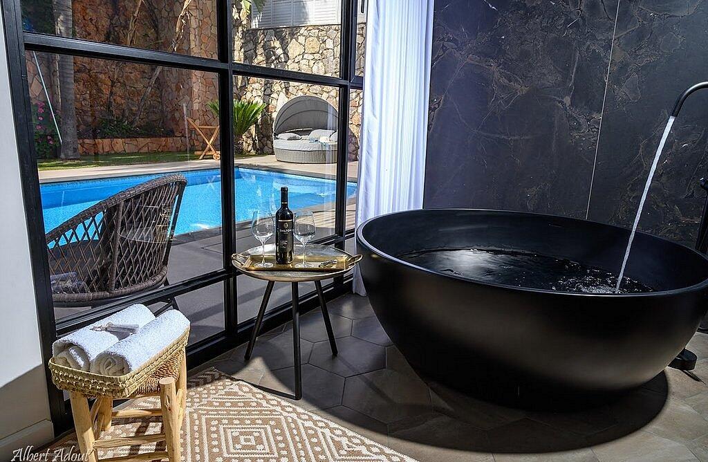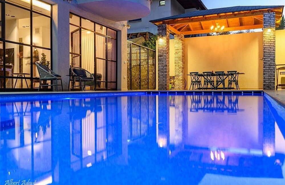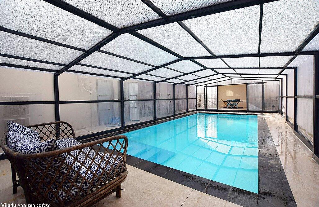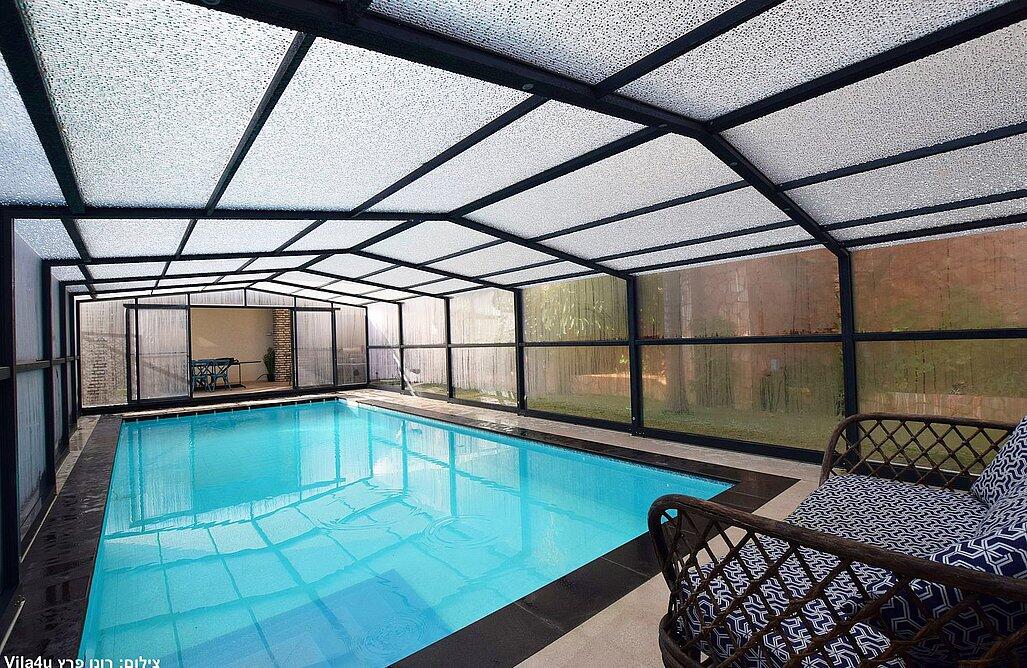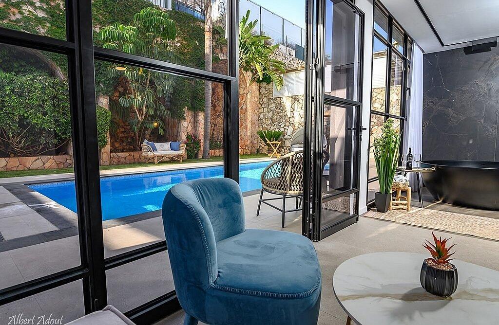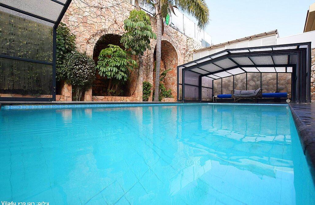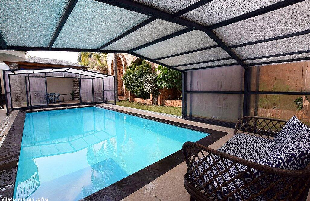 החצר המטופחת והמעוצבת כוללת את האטרקציה המרכזית – בריכה פרטית, מחוממת ומקורה בהתאם לעונה. אורחי הסוויטה ייהנו משחייה מרעננת בשעות הבוקר ויכולים לסיים את היום ברחצה לילית בבריכה המוארת בתאורה קסומה. לצד הבריכה תמצאו פינות ישיבה נוחות, שולחן גינה, מטבח מאובזר ועמדת ברביקיו. דלת זכוכית גדולה מובילה ישירות מהסלון של הסוויטה אל הבריכה, ומאפשרת חווית נופש בלתי נשכחת.