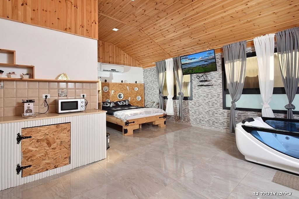 במתחם תוכלו להנות ממתחם חיצוני עם נוף גלילי משגע ובריכת שחייה מפנקת
