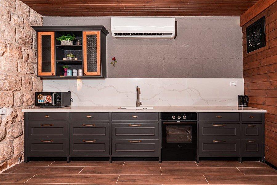 המתחם מאובזר במטבח פנימי בכל סוויטה ובמטבח חיצוני ענק הכולל עמדת מנגל מקצועית ופינות אוכל גדולות.