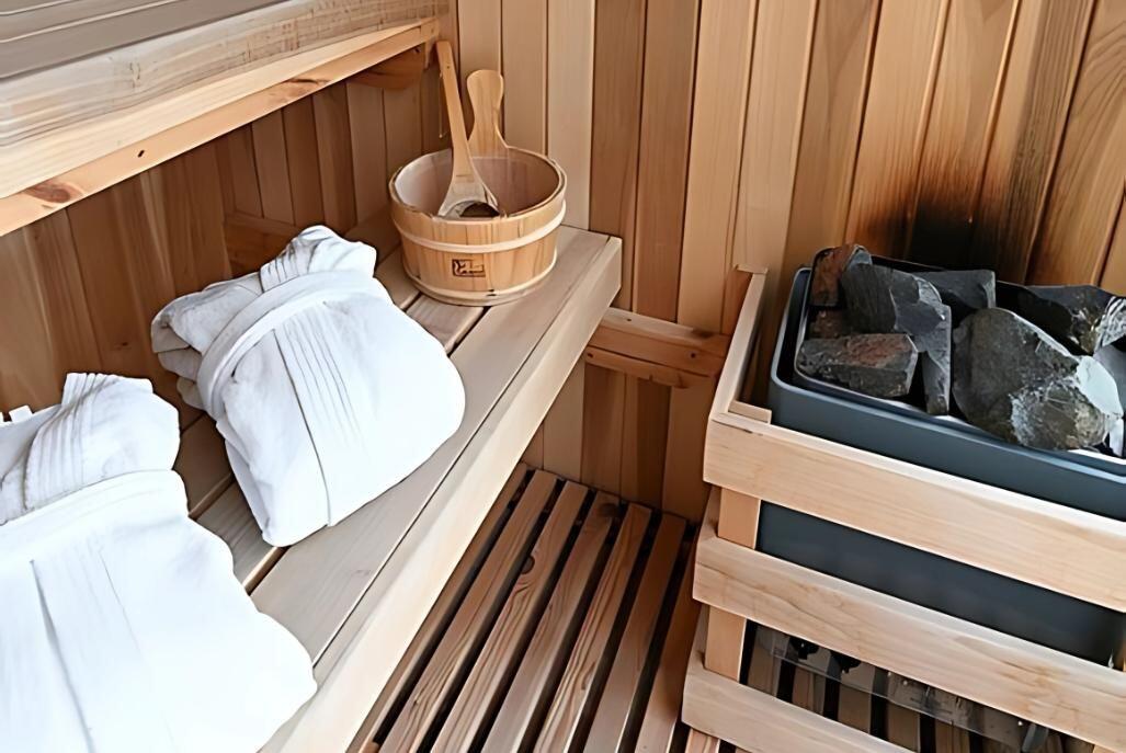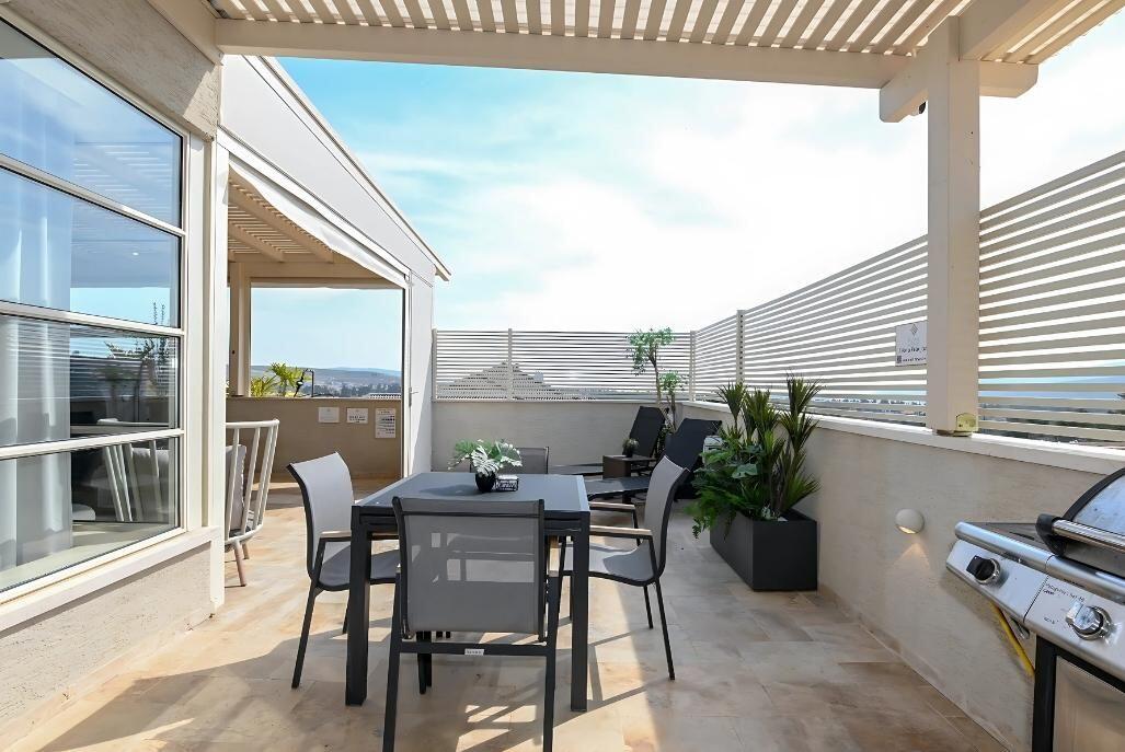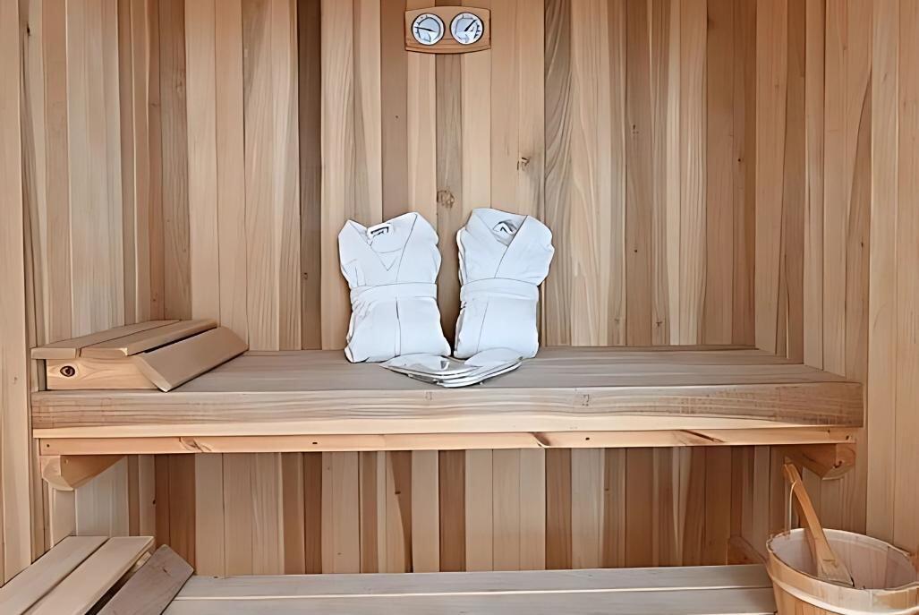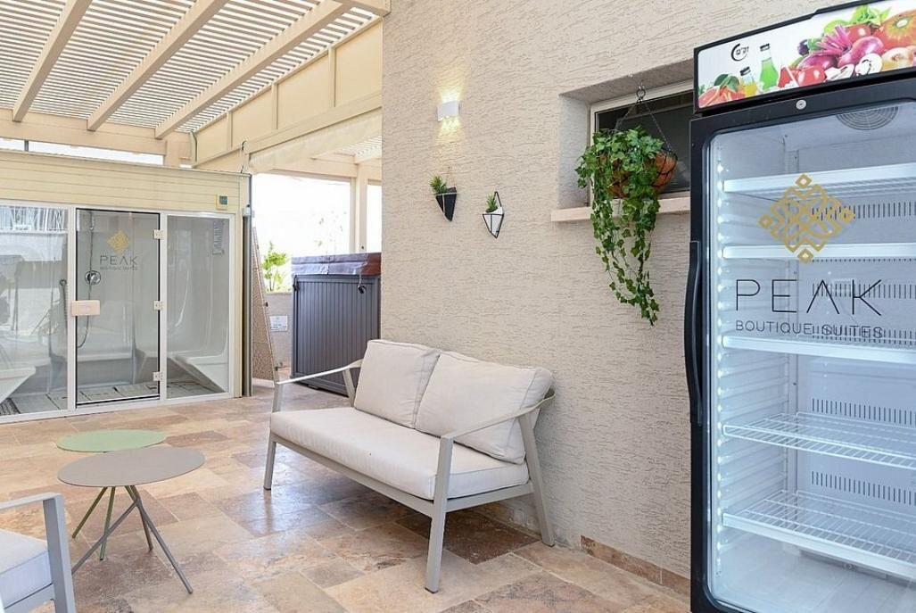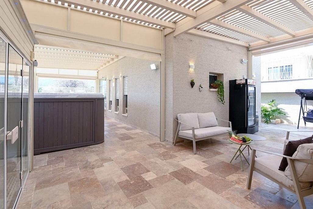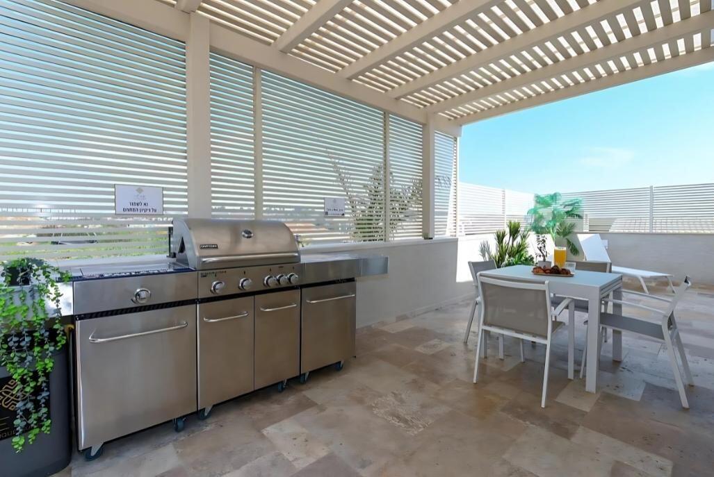 החצר המשותפת כוללת בריכה מחוממת, סאונה יבשה ורטובה, מיטות שיזוף, פינת ישיבה ומטבח חוץ מאובזר.