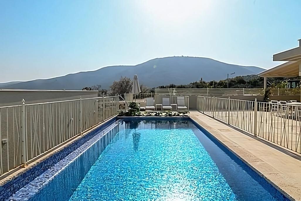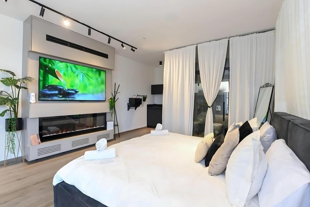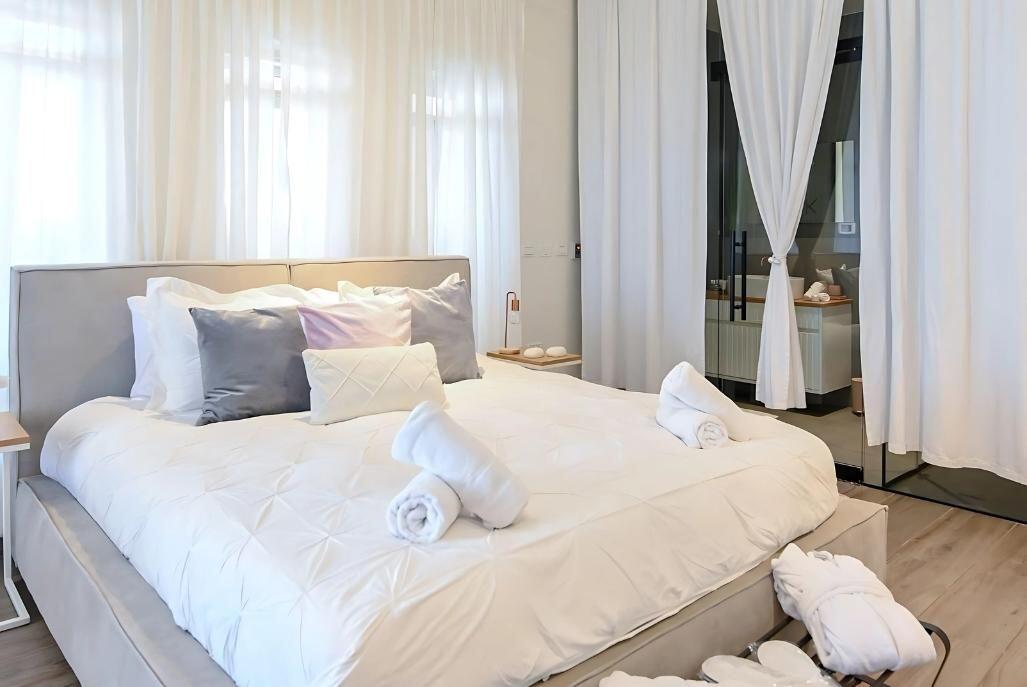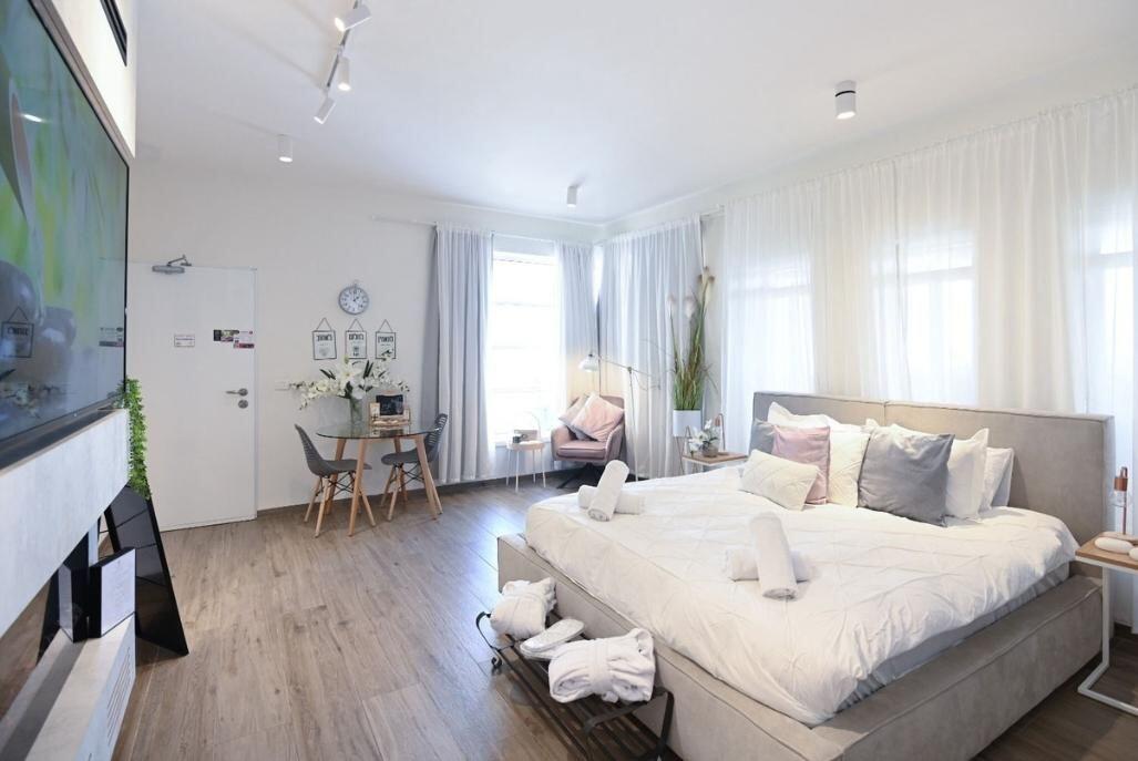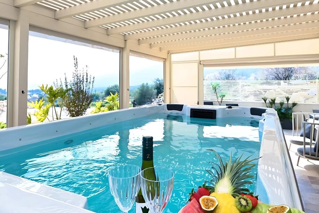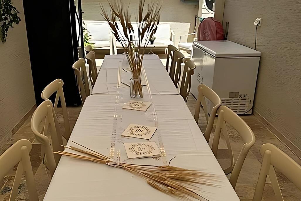 החצר המשותפת כוללת בריכה מחוממת, סאונה יבשה ורטובה, מיטות שיזוף, פינת ישיבה ומטבח חוץ מאובזר.