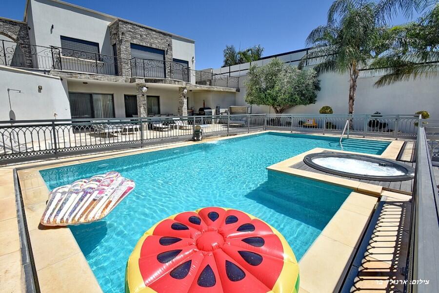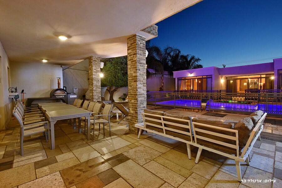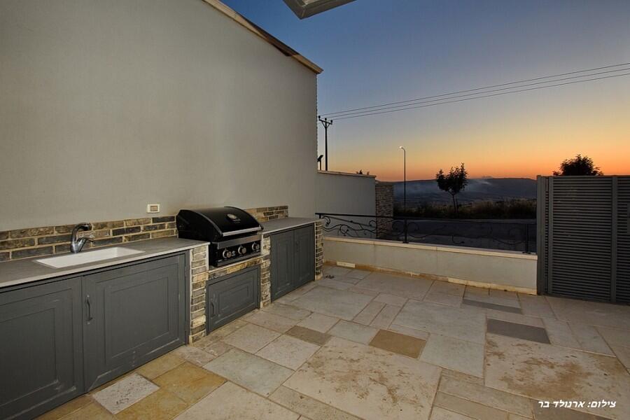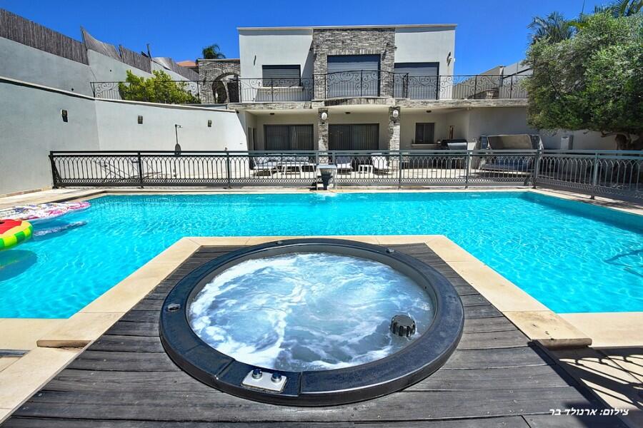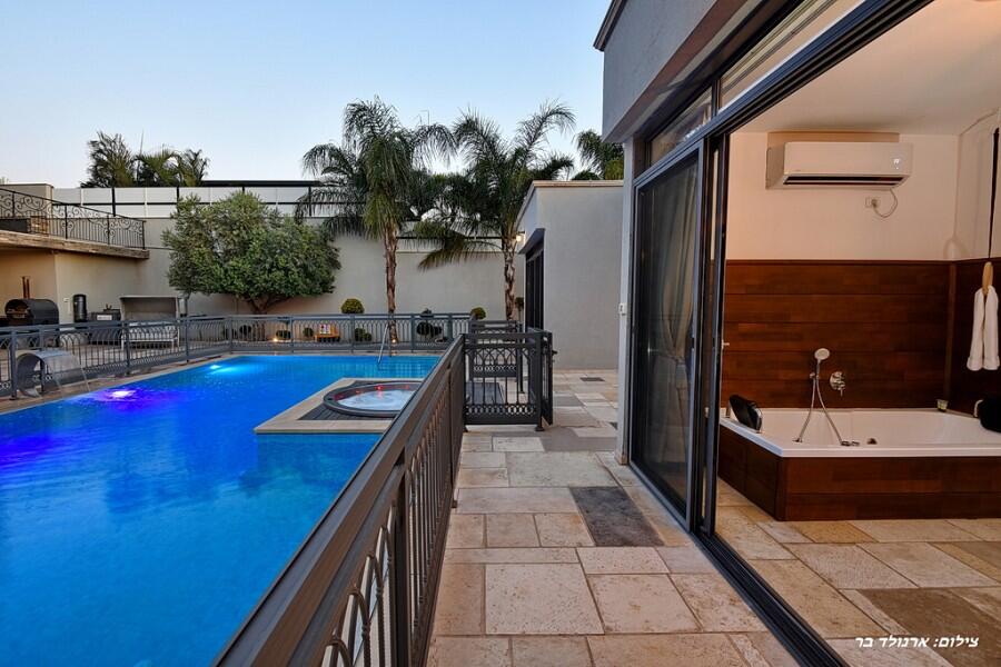 המתחם מציע בריכה מחוממת ומגודרת, חצר ירוקה עם פינות ישיבה, מטבח חוץ שכולל טאבון ומנגל גז – ואפילו ג’קוזי ספא תחת כיפת השמיים.