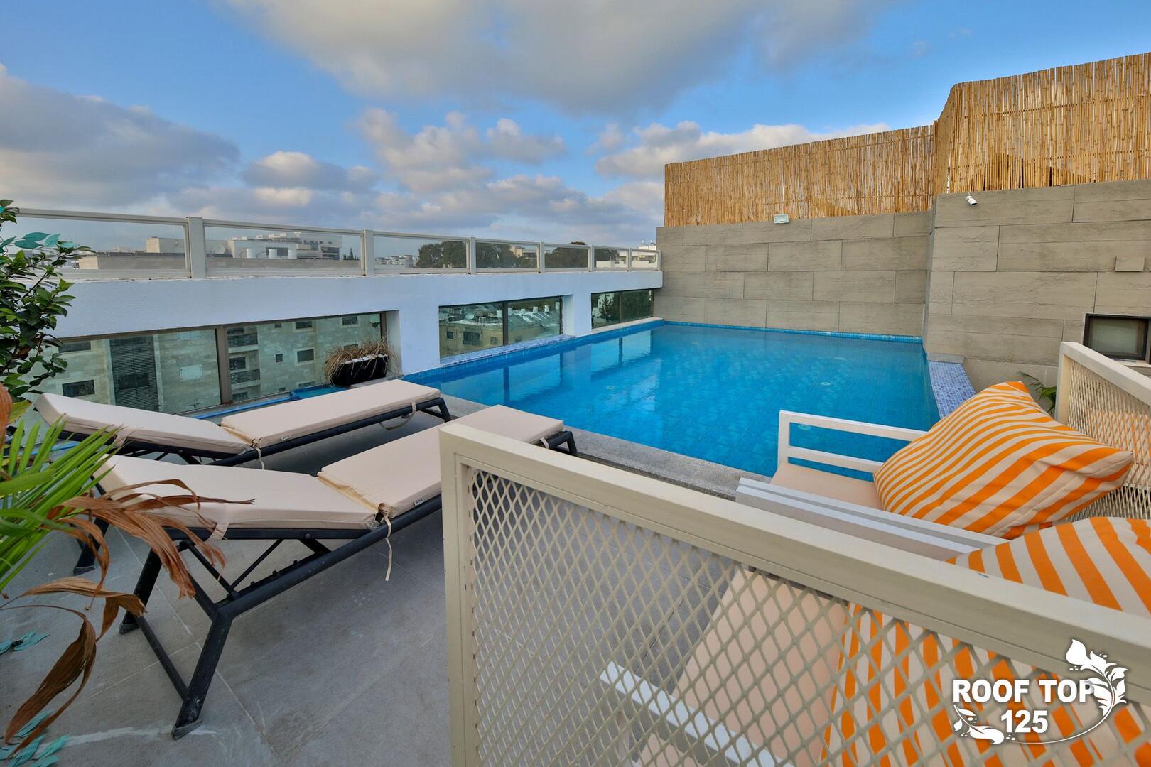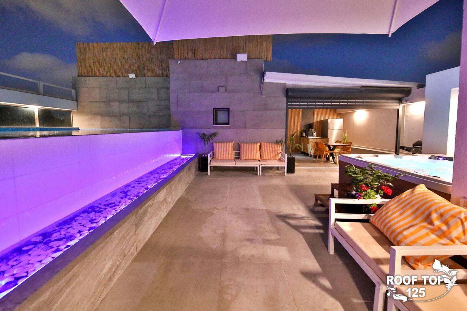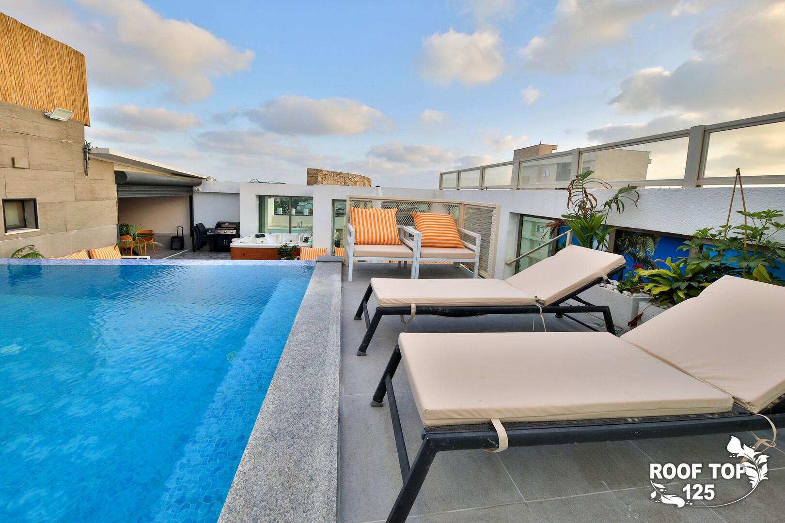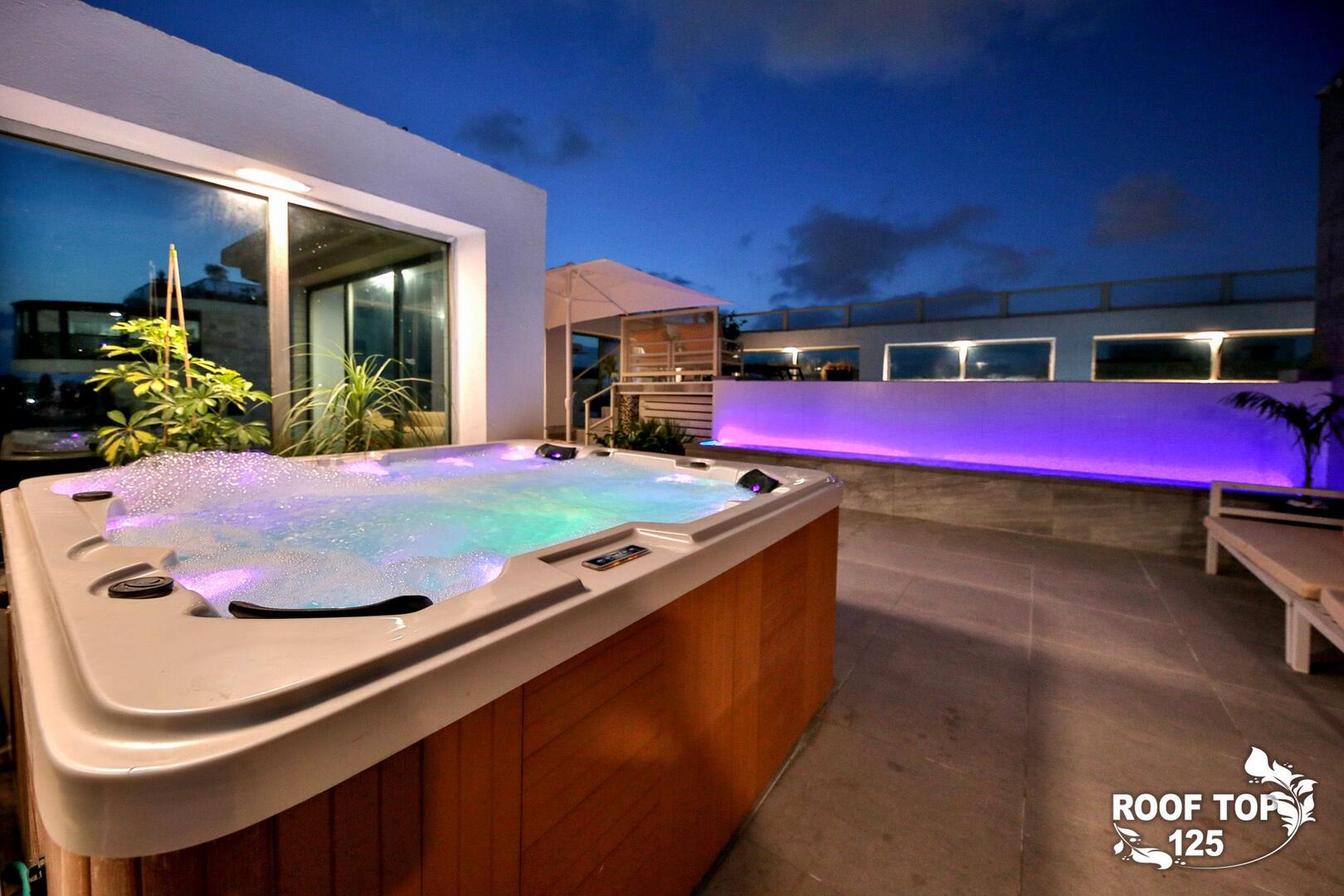 רוף טופ 125 בנהריה מציע את חווית הנופש המושלמת במיקום מצוין ובנוף עוצר נשימה. מדובר במתחם אירוח בגג בניין, שבו תמצאו את כל מה שאתם צריכים לנפוש בנוחות ובסטייל. במתחם הפנימי תיהנו מ-5 חדרי שינה מרווחים, סלון מעוצב עם טלוויזיה ומערכת ישיבה נוחה, מטבח מאובזר עם כל הדרוש, המתחם החיצוני מציע בריכת אינפיניטי מדהימה בגודל 8X5, ג'קוזי ספא מחומם, פינת BBQ ונוף מהמם של העיר. בנוסף אצלנו תוכלו לחגוג מסיבות הפתעה, ימי הולדת, רווקות או יום כיף עם חברים – רוף טופ 125 יענה על כל הציפיות שלכם ויותר.