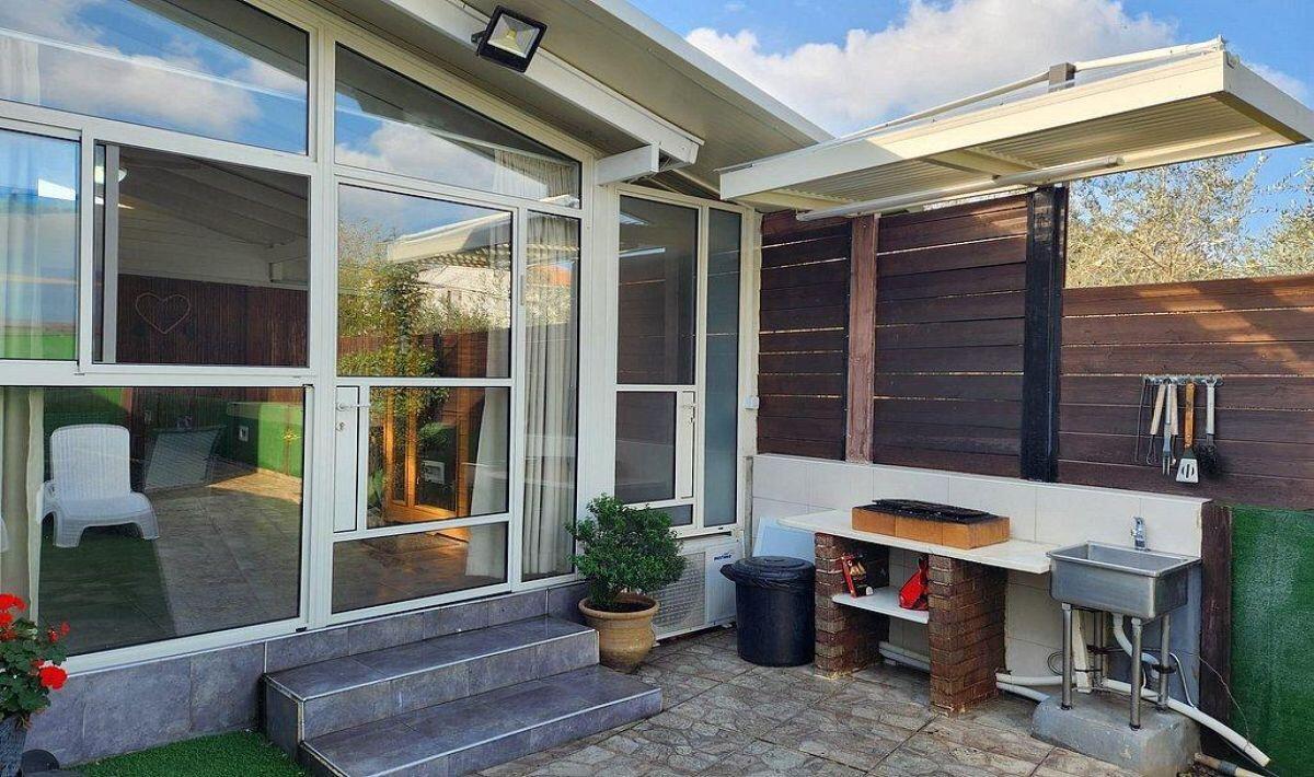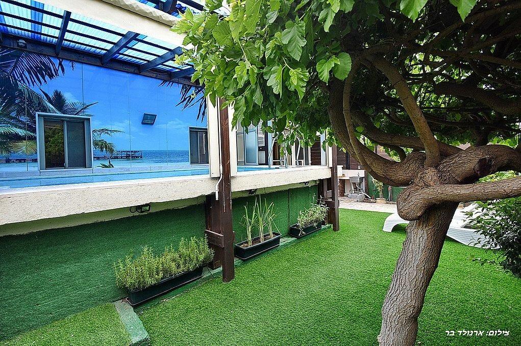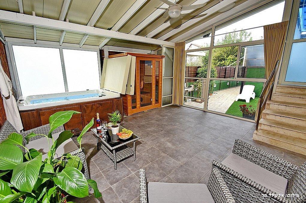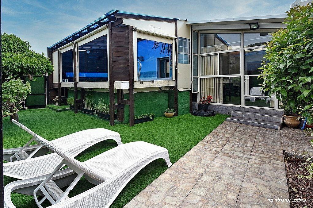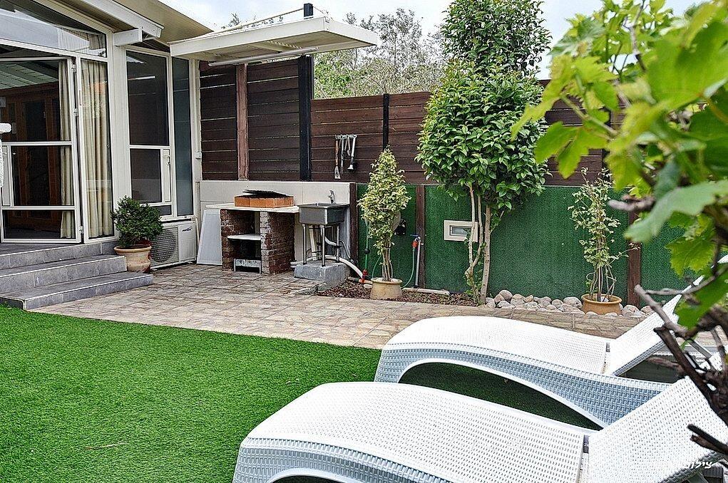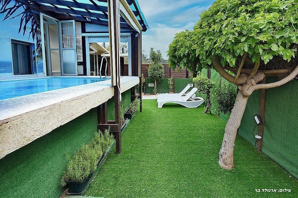 המתחם החיצוני מציע מדשאה רחבה עם מיטות שיזוף, פינת מנגל, חניה צמודה ועוד.