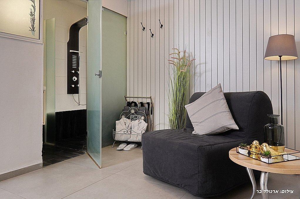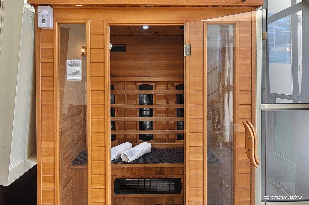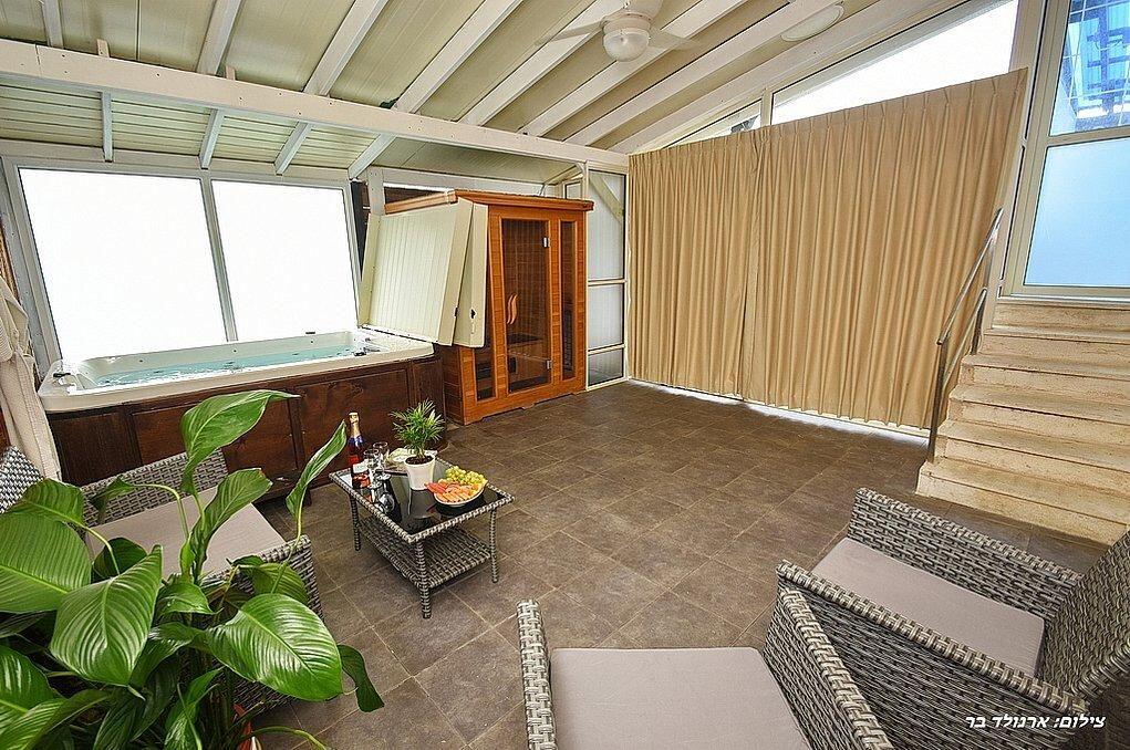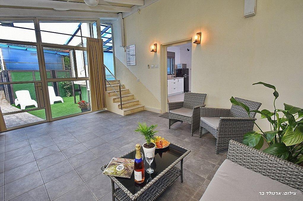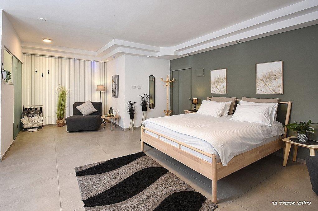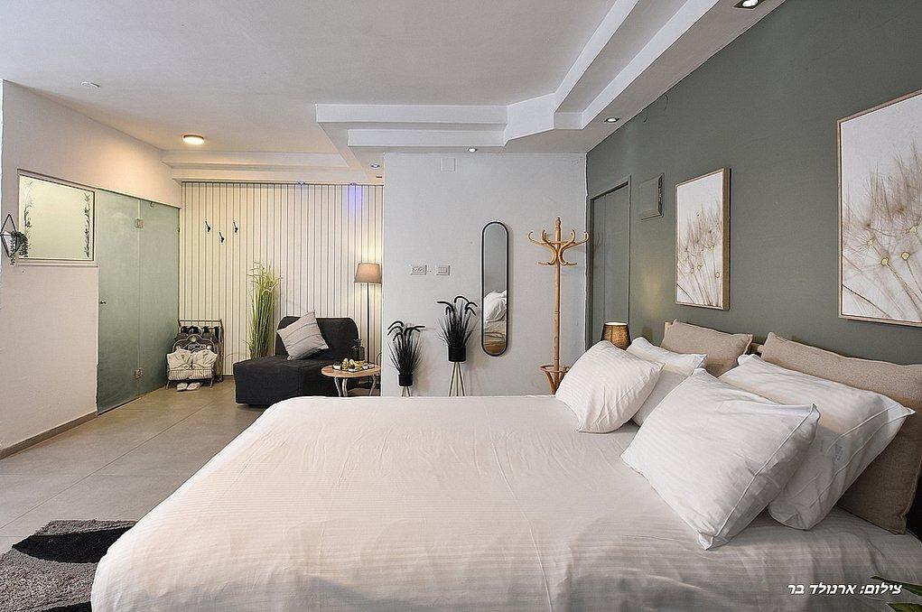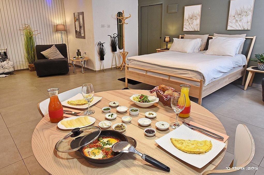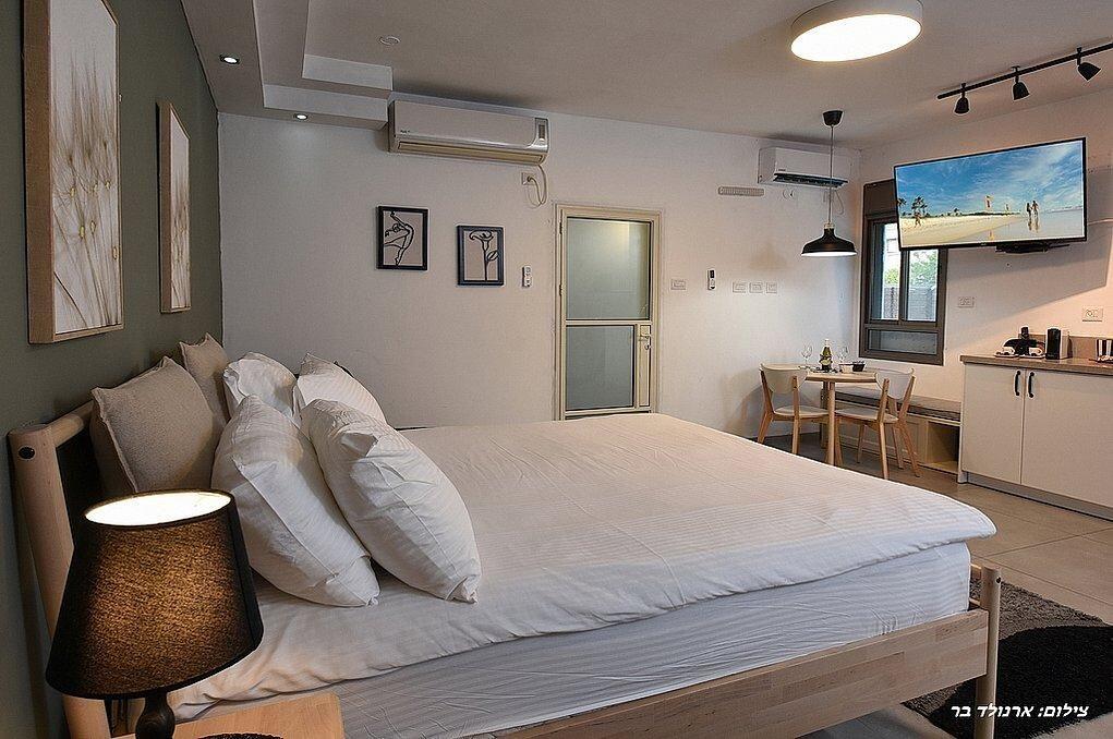הסוויטה כוללת חלל מרכזי פתוח עם מיטה זוגית, ספות נפתחות, מטבחון מאובזר, פינת אוכל, חדר רחצה ומסך טלוויזיה עם HOT, המתאים למשפחה עם עד 3 ילדים.