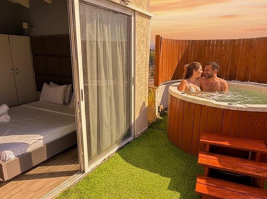 סיאסטה באכזיב מציעה סוויטות יוקרה מאובזרות עם מתקני ספא מתקדמים.