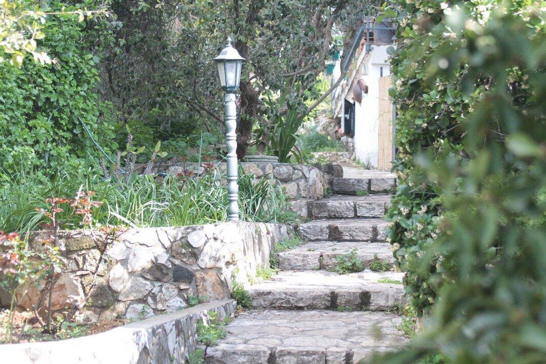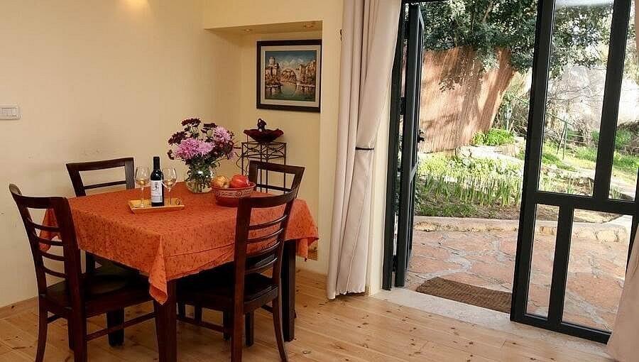 החצר המטופחת משלבת פינות ישיבה, גינת תבלינים וצמחי תה ריחניים, להנאה מושלמת בכל רגע.
