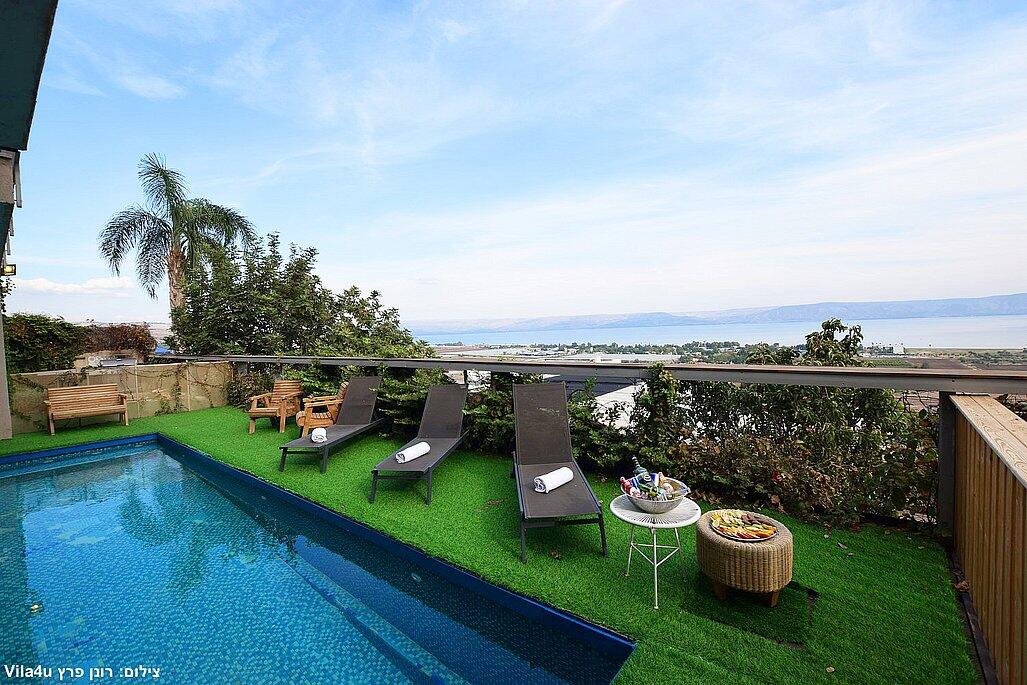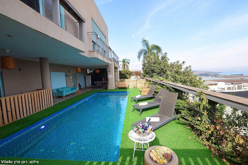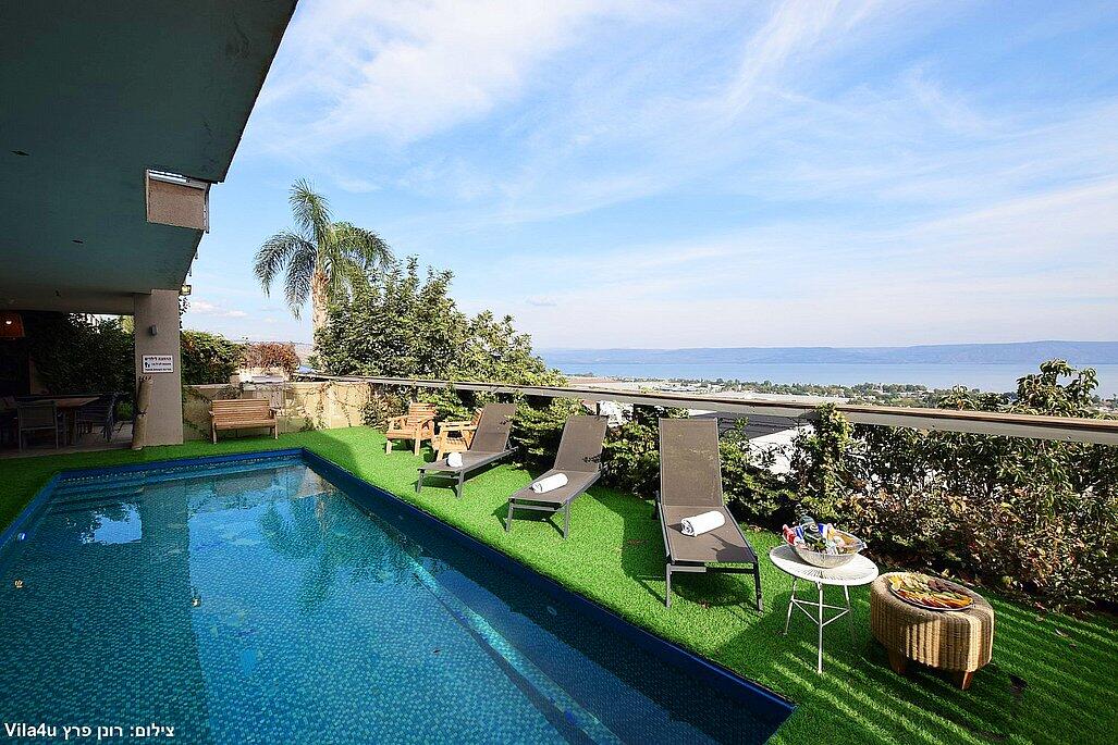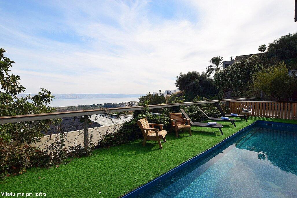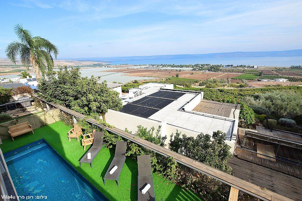 וילה אקסלוסיבית על הר במושבה מגדל עם נוף קסום לכינרת. מקום אידיאלי לנופש רוגע ושקט עם 4 חדרי שינה מרווחים, מתוכם 3 סוויטות יוקרתיות. בחצר תמצאו בריכה מחוממת בחורף, ג'קוזי ספא, פינת BBQ, ריהוט גן ועוד. כל זה ממוקם מול נוף עוצר נשימה של הרי הגולן והכנרת.