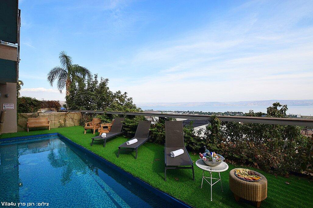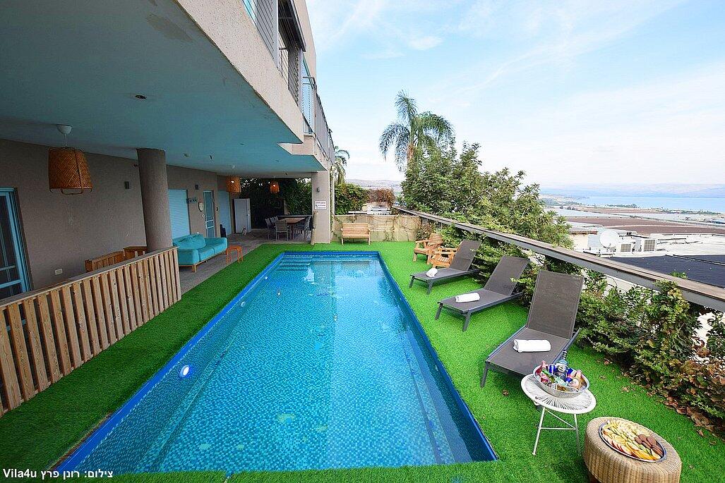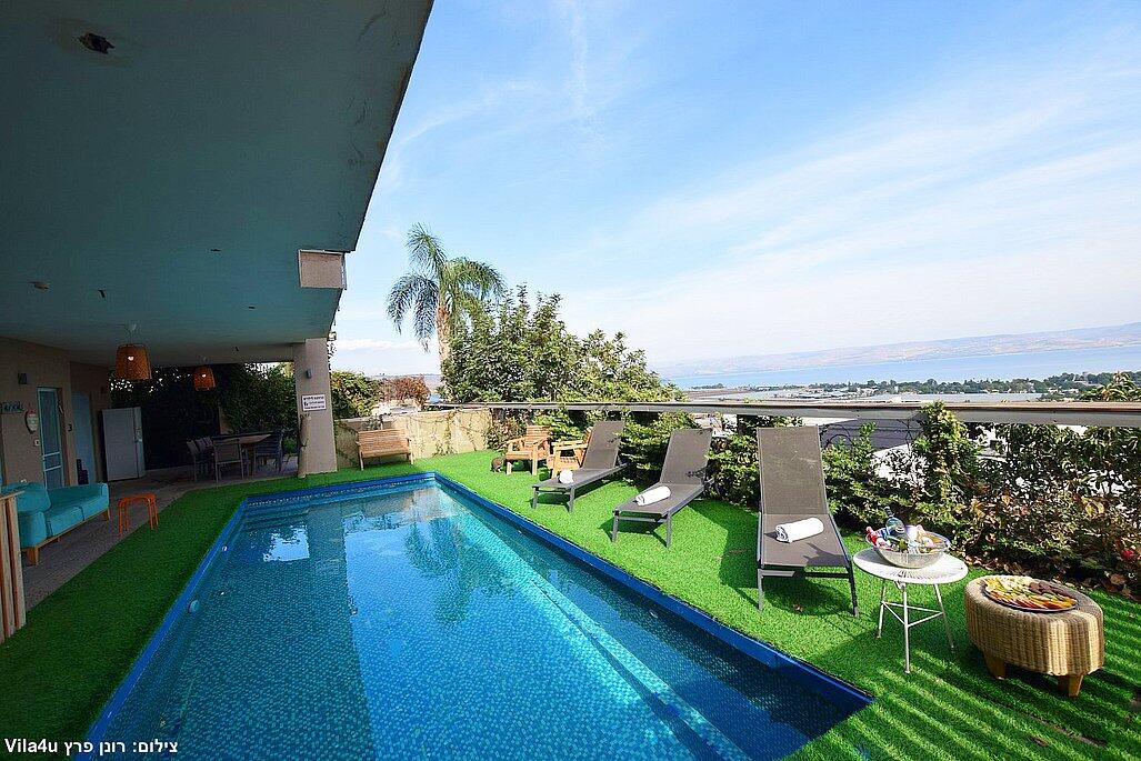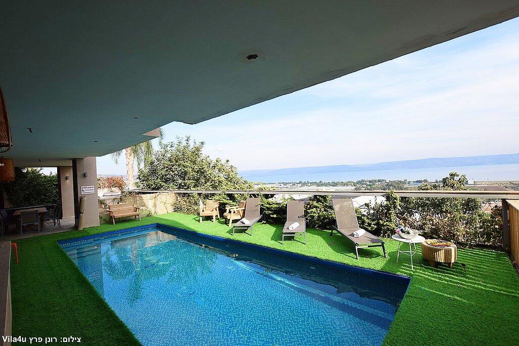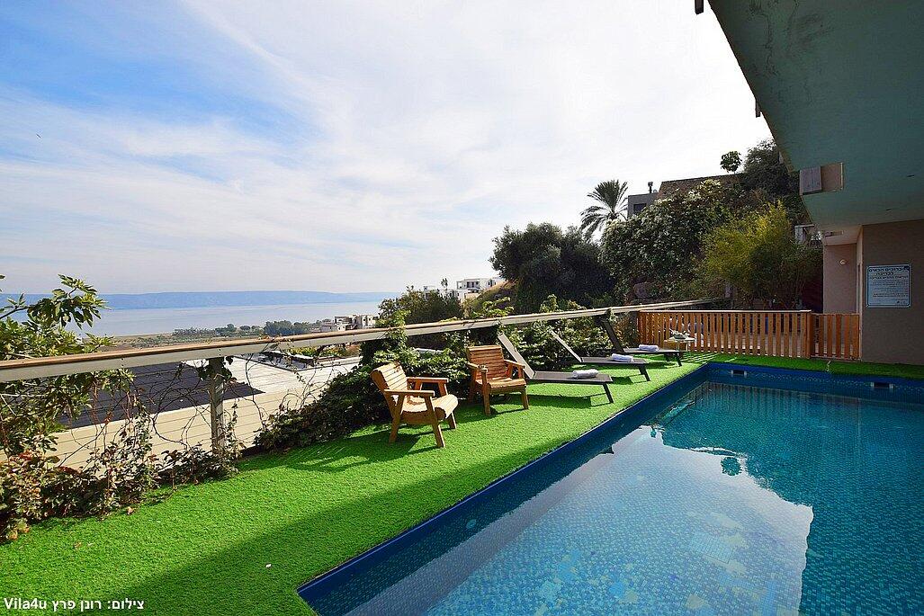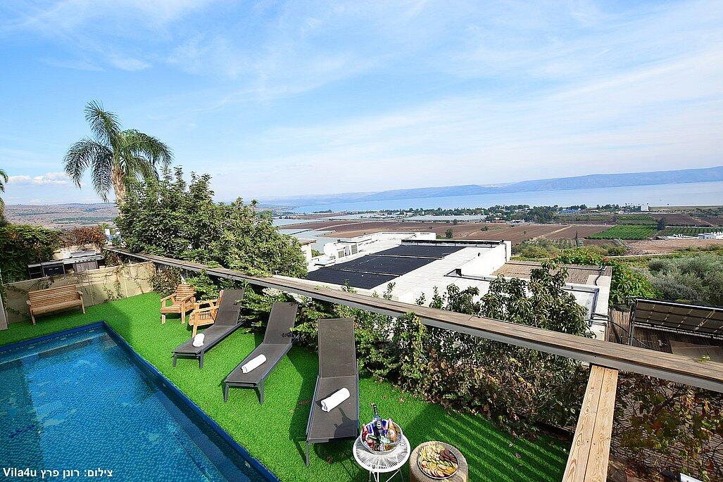 וילה אקסלוסיבית על הר במושבה מגדל עם נוף קסום לכינרת. מקום אידיאלי לנופש רוגע ושקט עם 4 חדרי שינה מרווחים, מתוכם 3 סוויטות יוקרתיות. בחצר תמצאו בריכה מחוממת בחורף, ג'קוזי ספא, פינת BBQ, ריהוט גן ועוד. כל זה ממוקם מול נוף עוצר נשימה של הרי הגולן והכנרת.