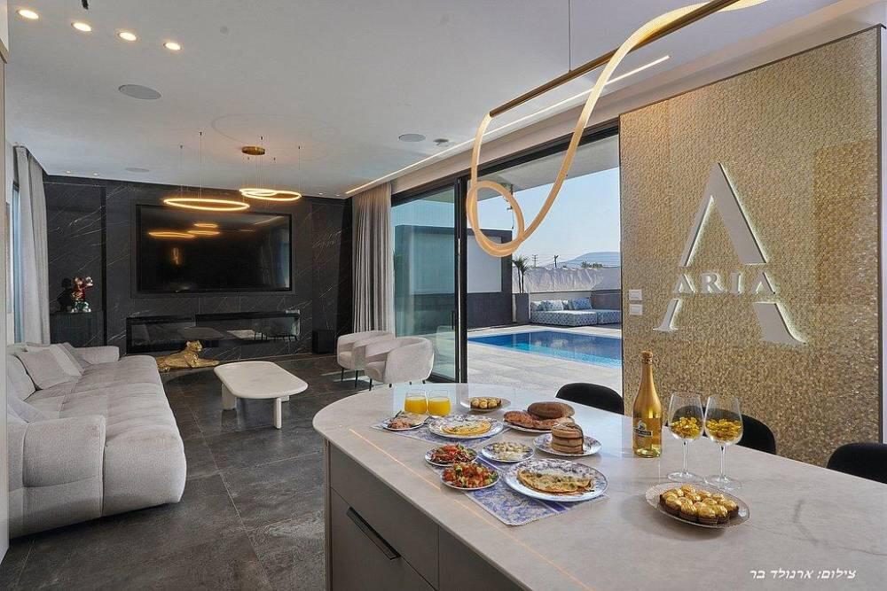הגעתם למקום המושלם לחופשה זוגית רומנטית – וילה אריא סינמה. 2 סוויטות מפוארות עם חדרי שינה יוקרתיים, בריכה מחוממת ופינות ישיבה אינטימיות, 3 מטבחים מאובזרים, אי וכיסאות לכל מטבח, כל פרט בוילה תוכנן כדי להעניק לכם את השקט, הפינוק והפרטיות שאתם מחפשים.