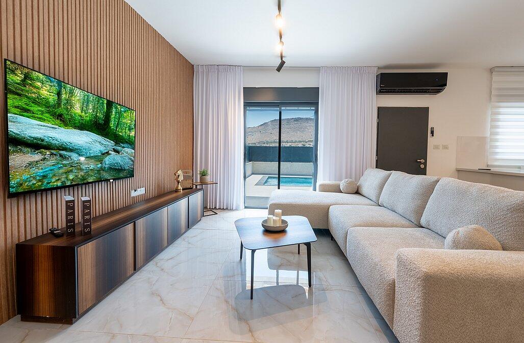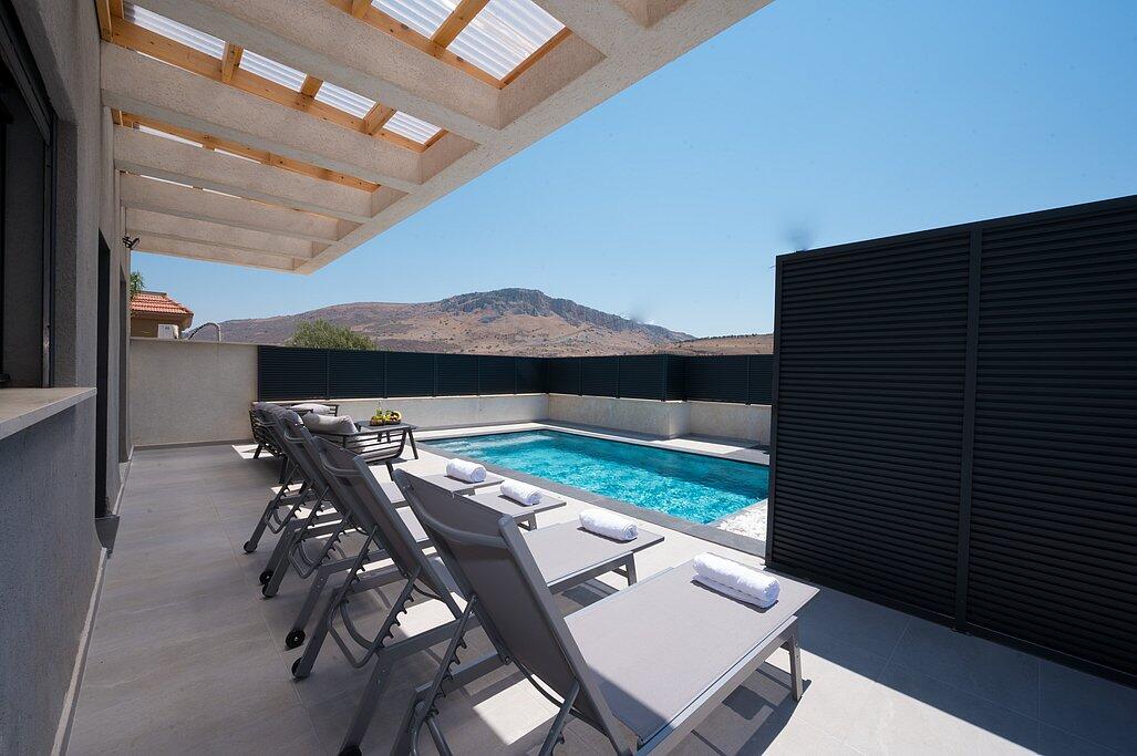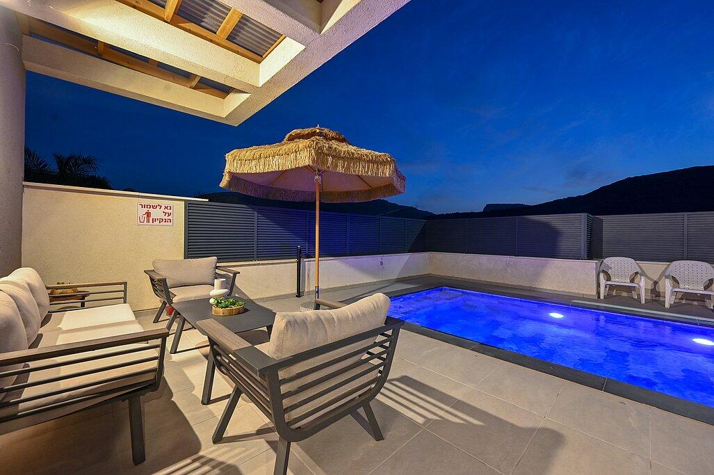 הוילה שלכם בצפון מחכה לכם – וילה מגדל ריזורט במגדל - בריכה פרטית מחוממת מקורה ונוף עוצר נשימה לכנרת, מתחם חיצוני ופנים מפנק, 4 חדרי שינה זוגיים, מטבח מאובזר, סלון רחב ומיזוג.