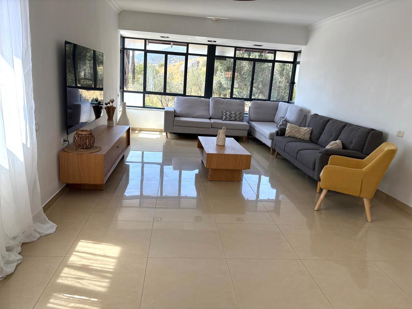 סלון מרווח ומטבח מאובזר קומפלט מאפשרים חוויית שהייה מפנקת ומרגיעה לכל המשפחה או חברים.