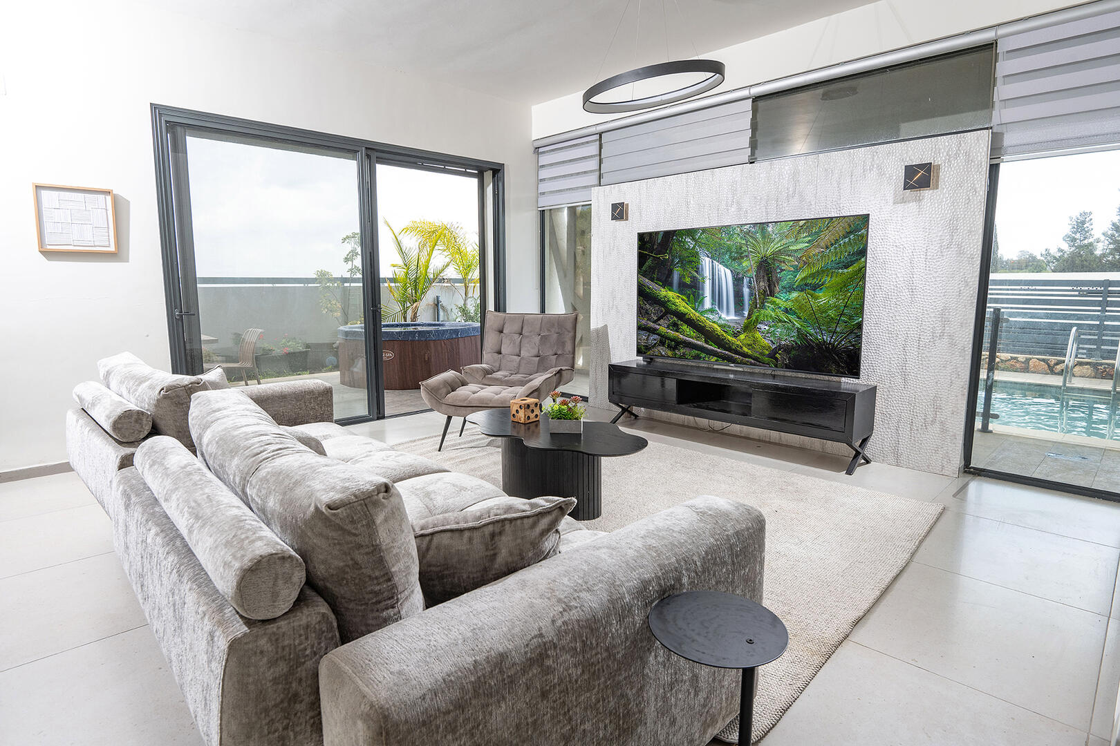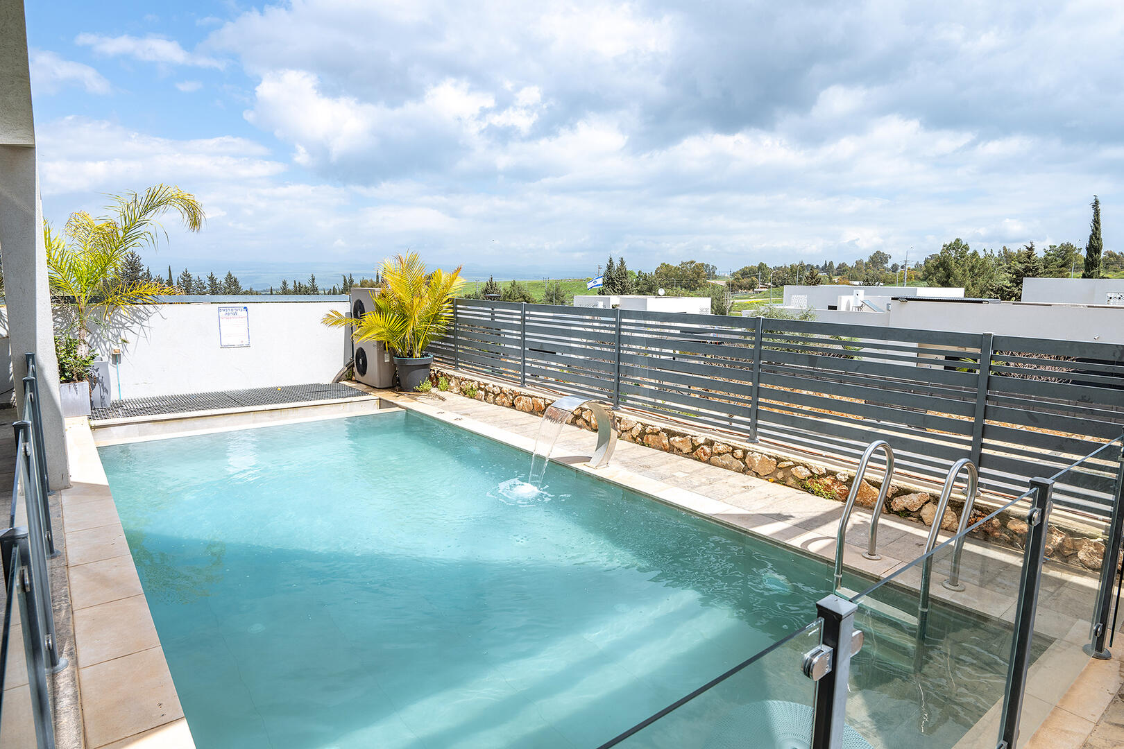 וילה תמר בצפון הארץ מציעה נופש יוקרתי בראש פינה עם בריכה מחוממת ונוף מרהיב לכנרת, האירוח כולל 4 חדרי שינה מרווחים, סלון מעוצב עם מסך גדול ומטבח מאובזר לנוחות מלאה - מתחם החוץ כולל ג’קוזי ספא, פינות שיזוף וישיבה, ריהוט גן יוקרתי ותאורה לילית מרשימה.