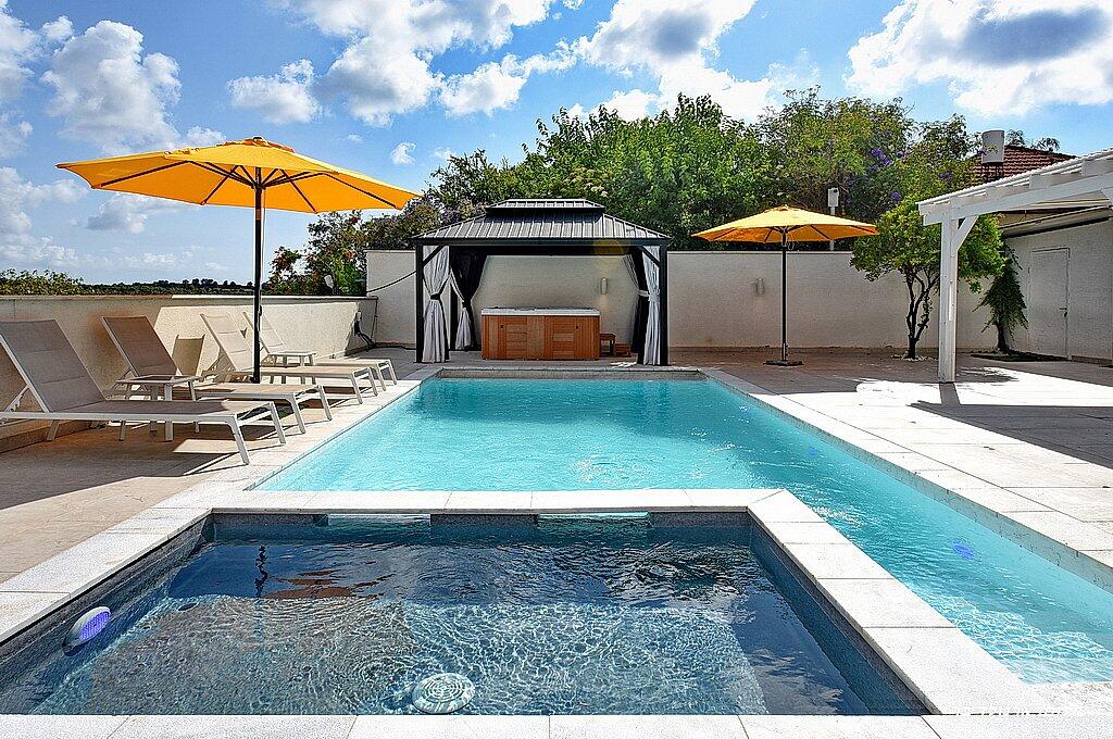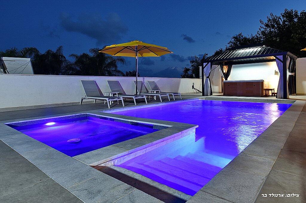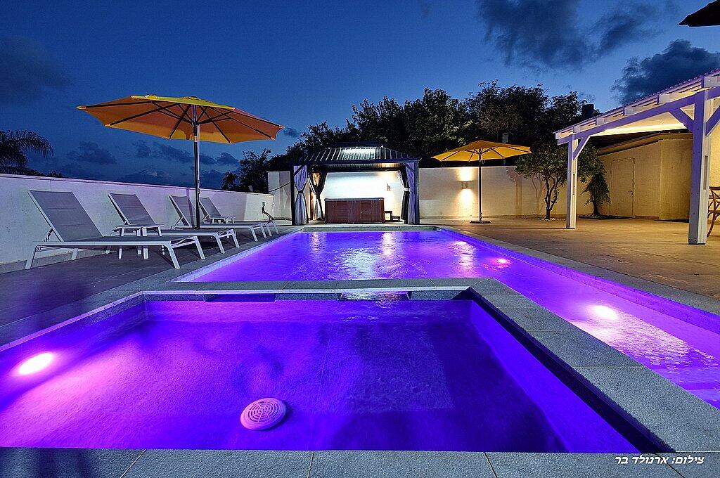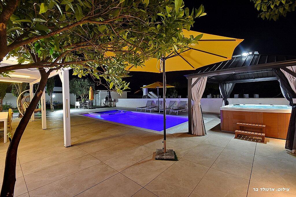 כדאי לדעת: בנוסף לוילה, ישנה אפשרות להשכיר עוד 2 סוויטות יוקרתיות. כל סוויטה כוללת מיטה זוגית, ג'קוזי מפנק, סלון יוקרתי, טלוויזיה 32 אינץ', מטבחון מאובזר, מיזוג אוויר, חדר רחצה ומרפסת פרטית עם מערכת ישיבה. סוויטות אלו כוללות גם בריכה פרטית מחוממת ומקורה. אם תבחרו להשכיר את הוילה והסוויטות יחד, תהנו ממתחם ענק עם 8 חדרים ו-3 בריכות שחייה – מקום אידיאלי לנופש קבוצתי או משפחתי.