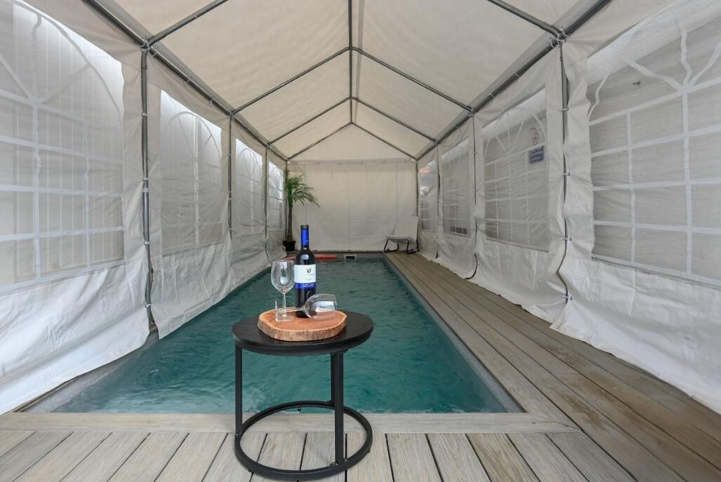 בחצר המטופחת תמצאו בריכת שחייה מחוממת ומקורה פרטית המשקיפה לנוף עוצר נשימה. המיקום השקט והאווירה הפסטורלית מבטיחים חופשה רגועה ונעימה.