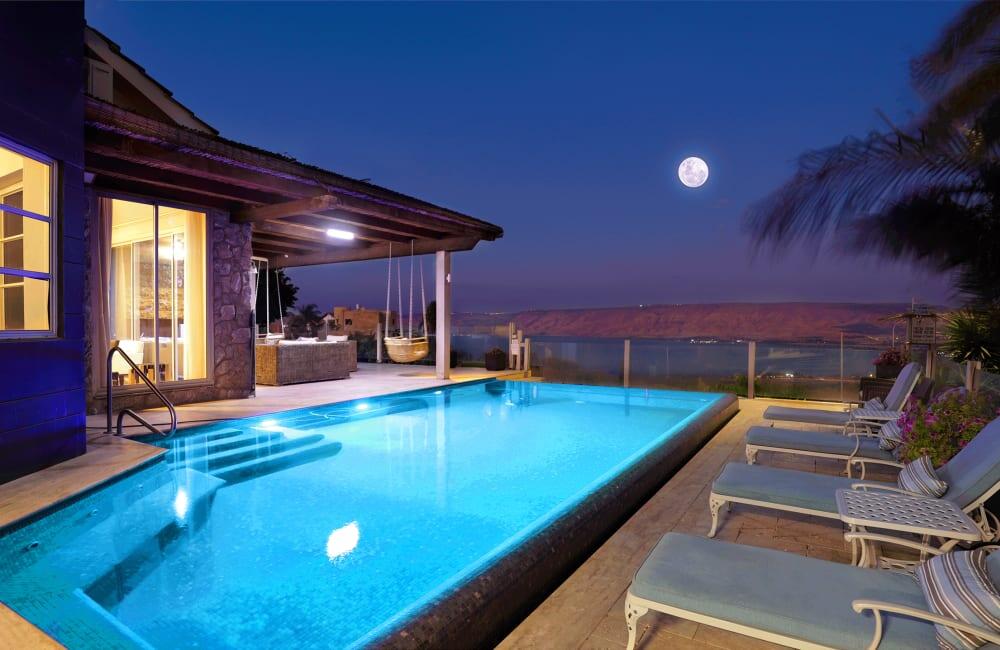 ילה מצפה הוד מזמינה אתכם לחופשות חורף וקיץ יוקרתיות מול נוף פנורמי לכנרת ולהרי הגולן. בתוך המתחם תמצאו 8 חדרי שינה מעוצבים, כולל סוויטת מערה ייחודית ואח עצים בסלון שמשרה אווירה חמימה וביתית. החצר מציעה את הפינוק המושלם: בריכת אינפיניטי ולימים הקרים הבריכה מחוממת, סאונה יבשה וג'קוזי ספא צופה לנוף ומקורה. בין אם אתם מתכננים ערב ערב משפחות או יום גיבוש לקבוצות, כאן תוכלו להתנתק מהשגרה וליהנות משלווה צפונית אמיתית. הזמינו נופש מפנק עוד היום!