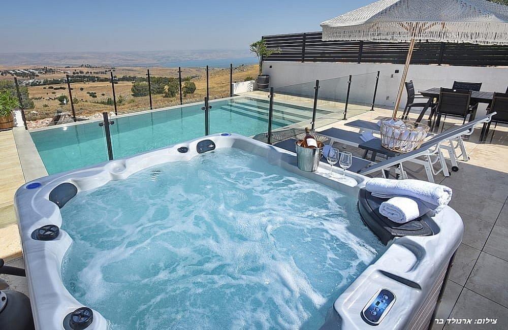 וילה יוקרתית עם בריכה מרהיבה הפונה אל הנופים הכחולים של הכנרת וההרים הירוקים של הצפון.