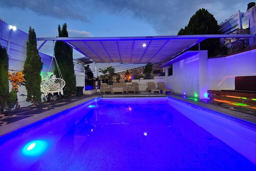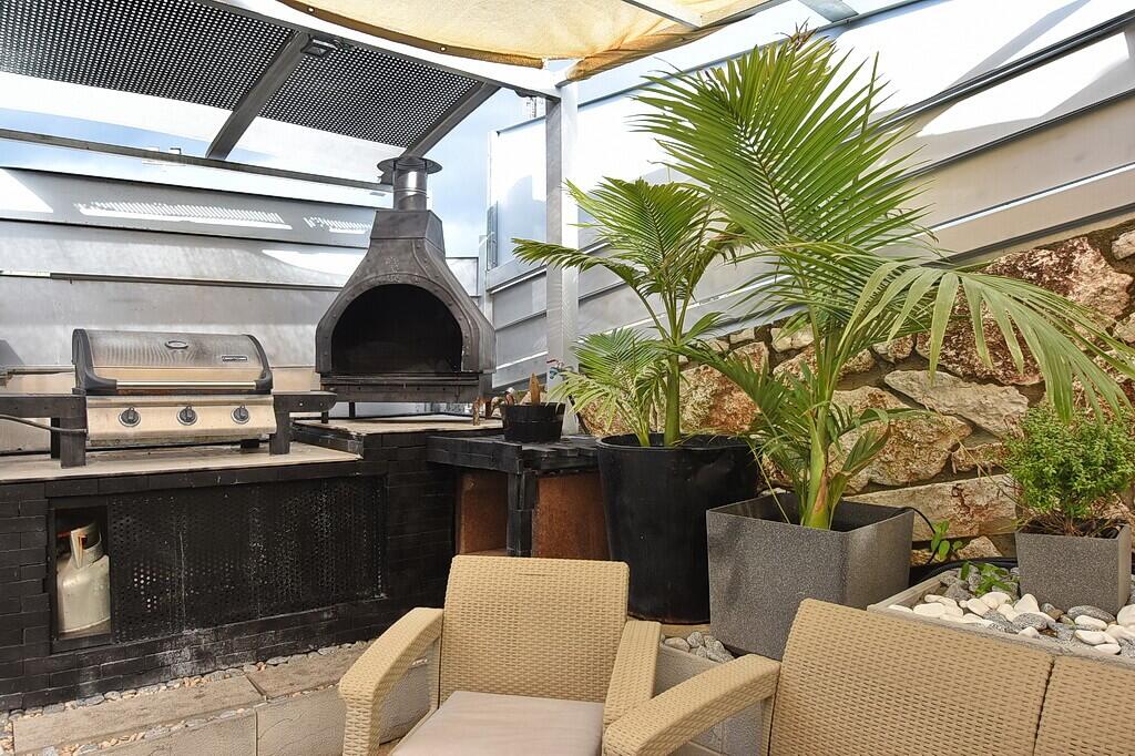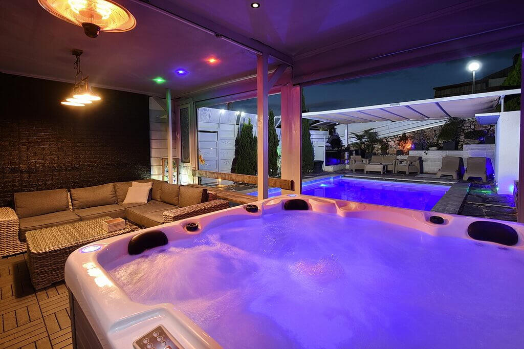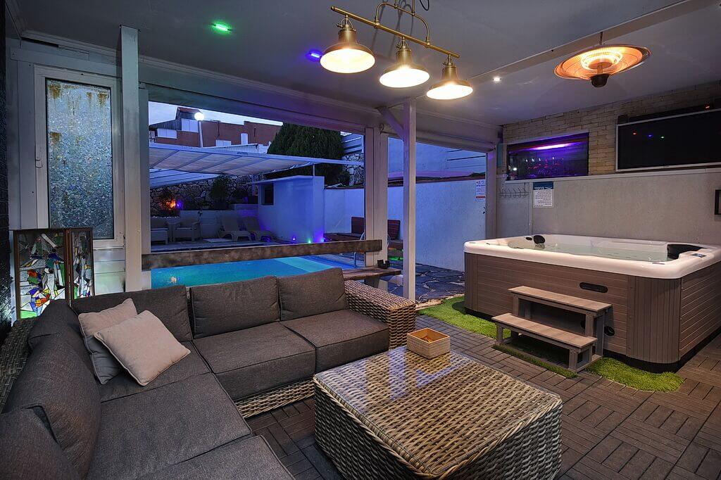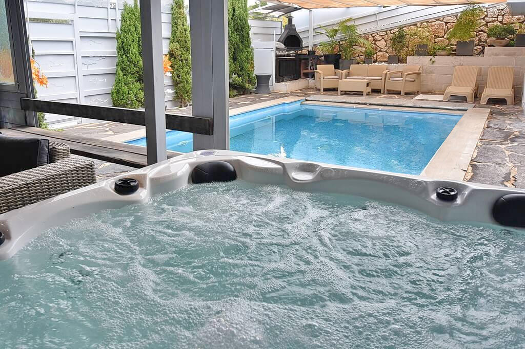 החצר הפרטית כוללת בריכת שחייה גדולה, ג׳קוזי ספא מקורה, פינות ישיבה נוחות, מיטות שיזוף ועמדת מנגל מקצועית – שילוב בין טבע ליוקרה.
