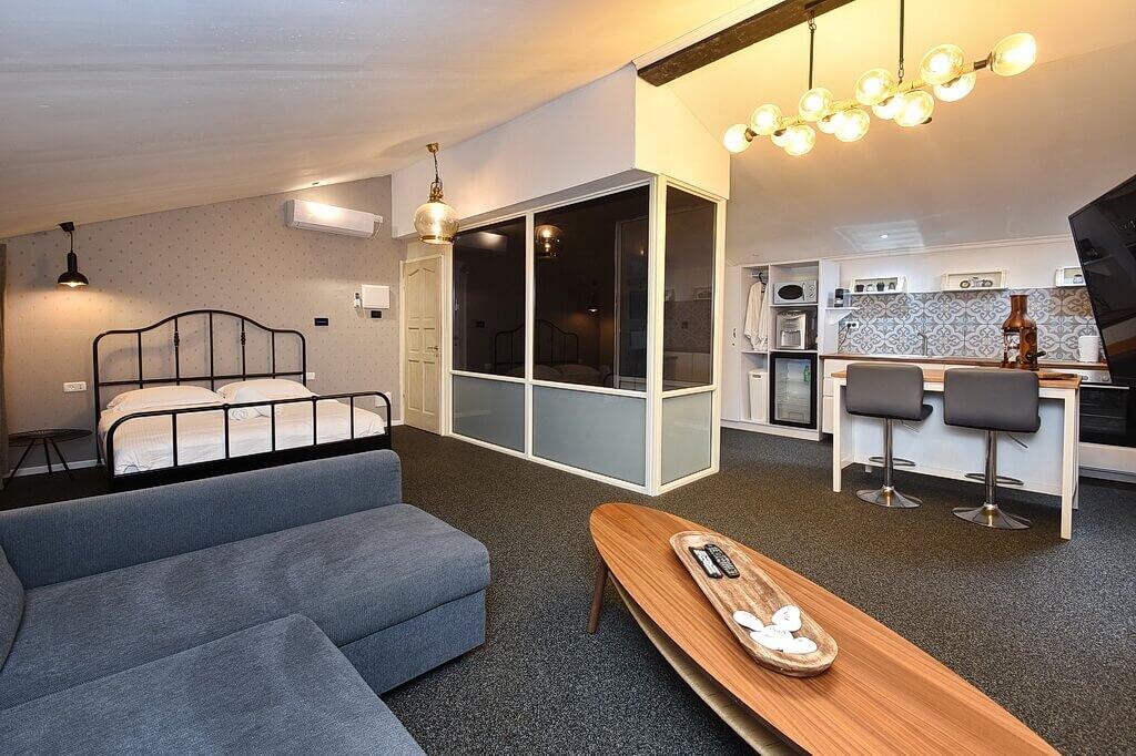 סוויטת איבון, פנינה בלב הגליל המערבי, מציעה חופשה רומנטית עם פרטיות מלאה. חלל הסוויטה בנוי כאופן ספייס מרווח הכולל מטבחון מאובזר, סלון נעים ומיטה זוגית מפנקת – מושלם לרגעים של רוגע ופינוק.
