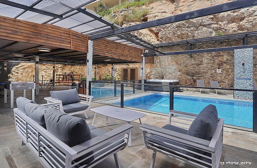 אחוזת הסלעים - גן עדן של חופשה משפחתית! התפנקו במתחם יוקרתי המשלב וילה מרווחת עם 4 חדרי שינה ו-2 צימרים מעוצבים. המקום מציע בריכה מחוממת מקורה עם מפל מים קסום וגדר בטיחות, בריכת פעוטות נפרדת וג'קוזי ספא מפנק במיוחד המתאים ל-9 מתרחצים. השלימו את החוויה עם מטבחים מאובזרים ופינות ישיבה מוצלות לארוחות משפחתיות מושלמות.