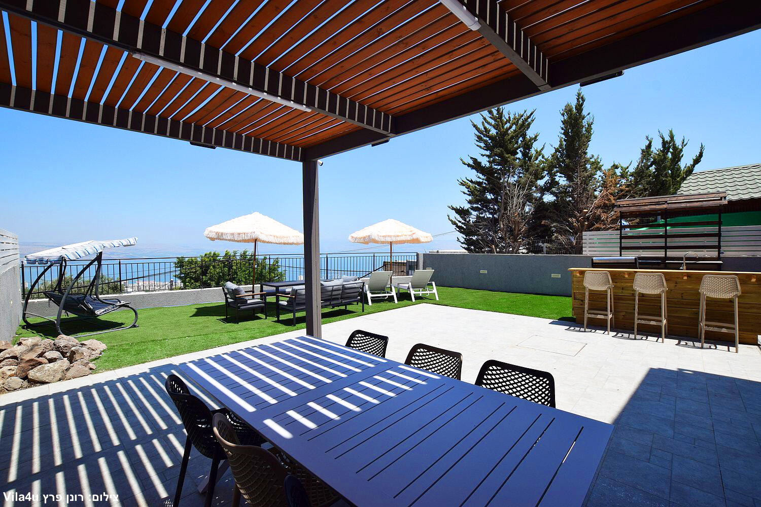 אחוזת אביאל - חוויית אירוח יוקרתית על שפת הכנרת. המתחם המפואר מציע חמישה חדרי שינה מרווחים, שני חדרי רחצה ושני מרחבי אירוח נפרדים, כל אחד עם סלון ופינת אוכל.
