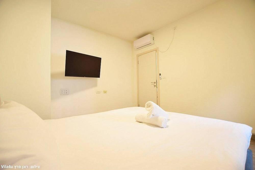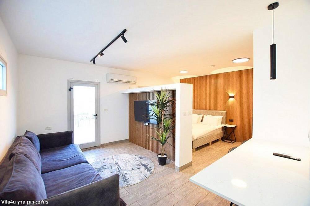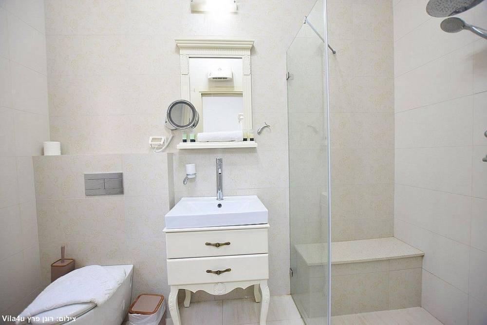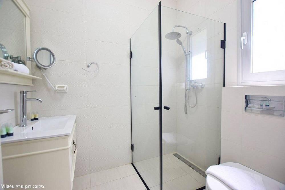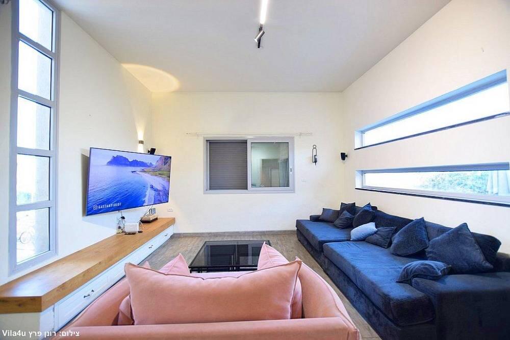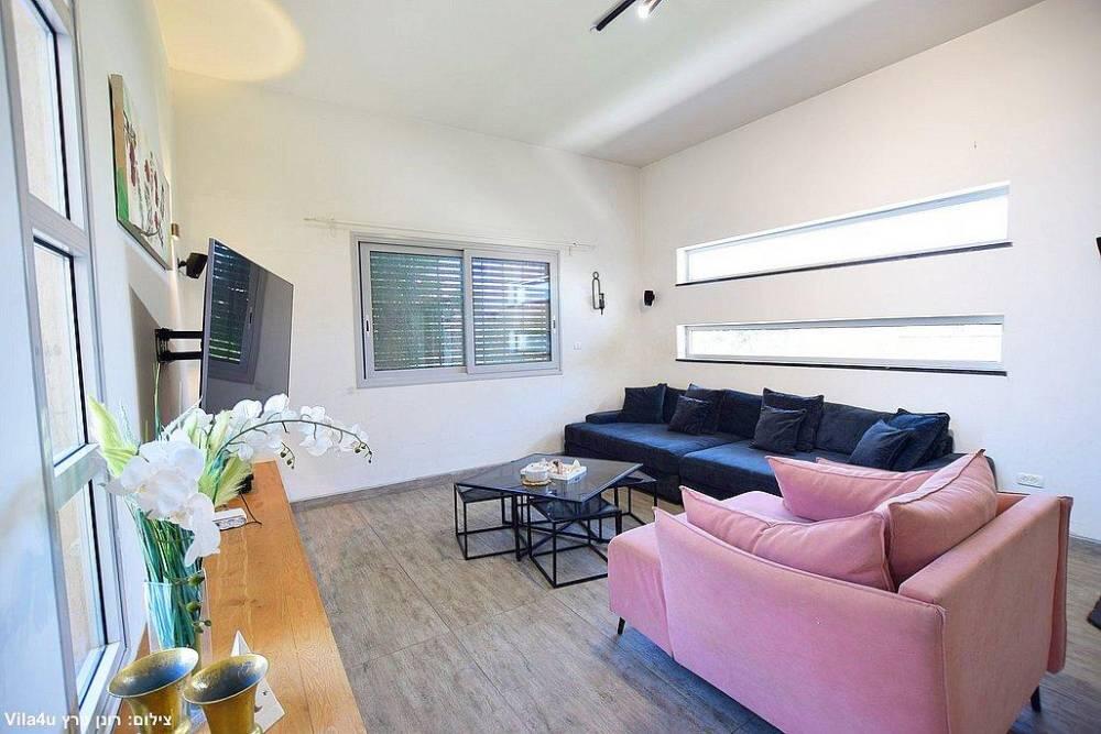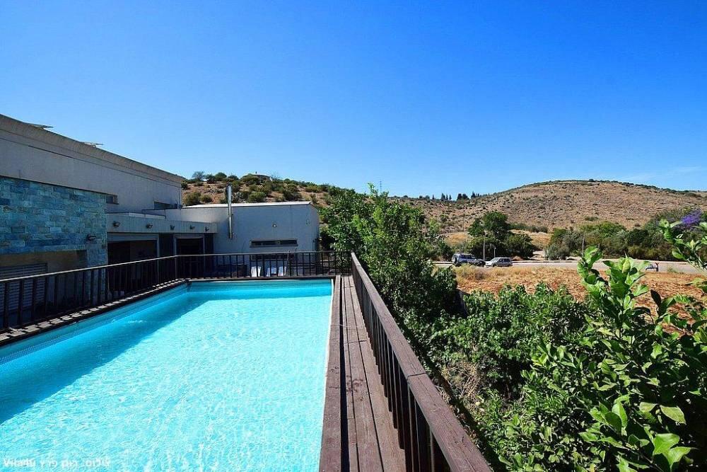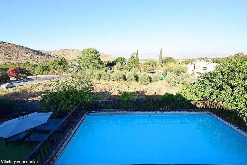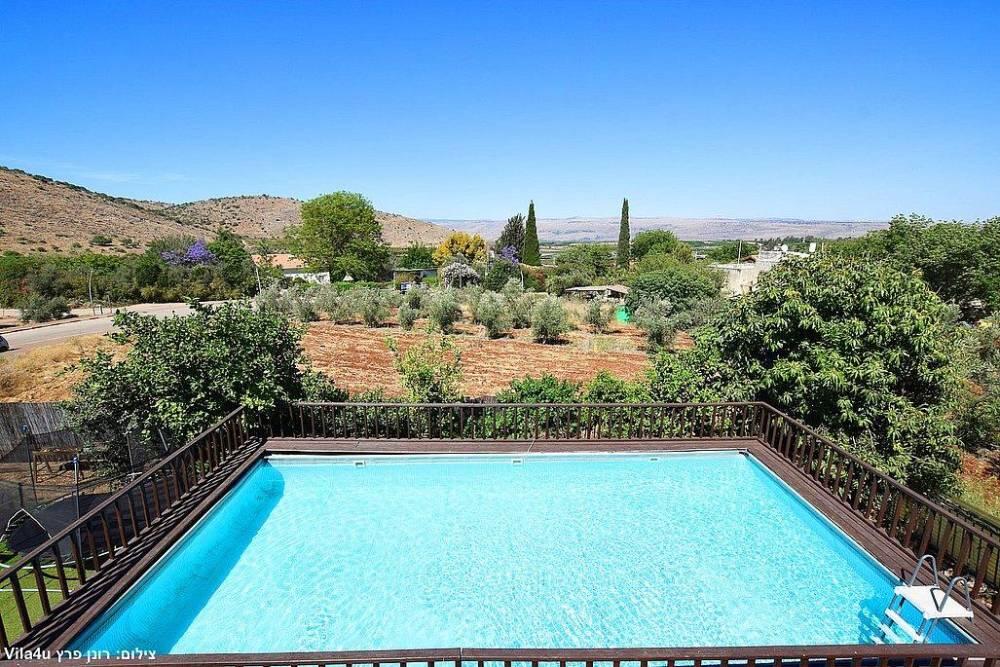 חצר מטופחת עם בריכה מחוממת, ג'קוזי ספא, פינות ישיבה ומדשאות ירוקות, מתאימה למשפחות וקבוצות עד 34 איש, עם שירות אישי ברמה הגבוהה ביותר.