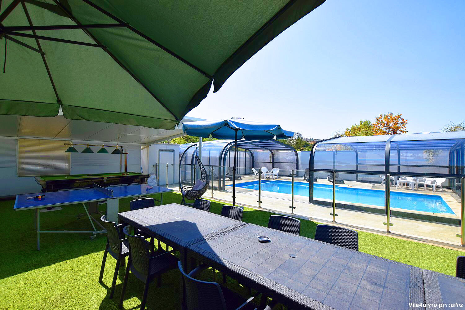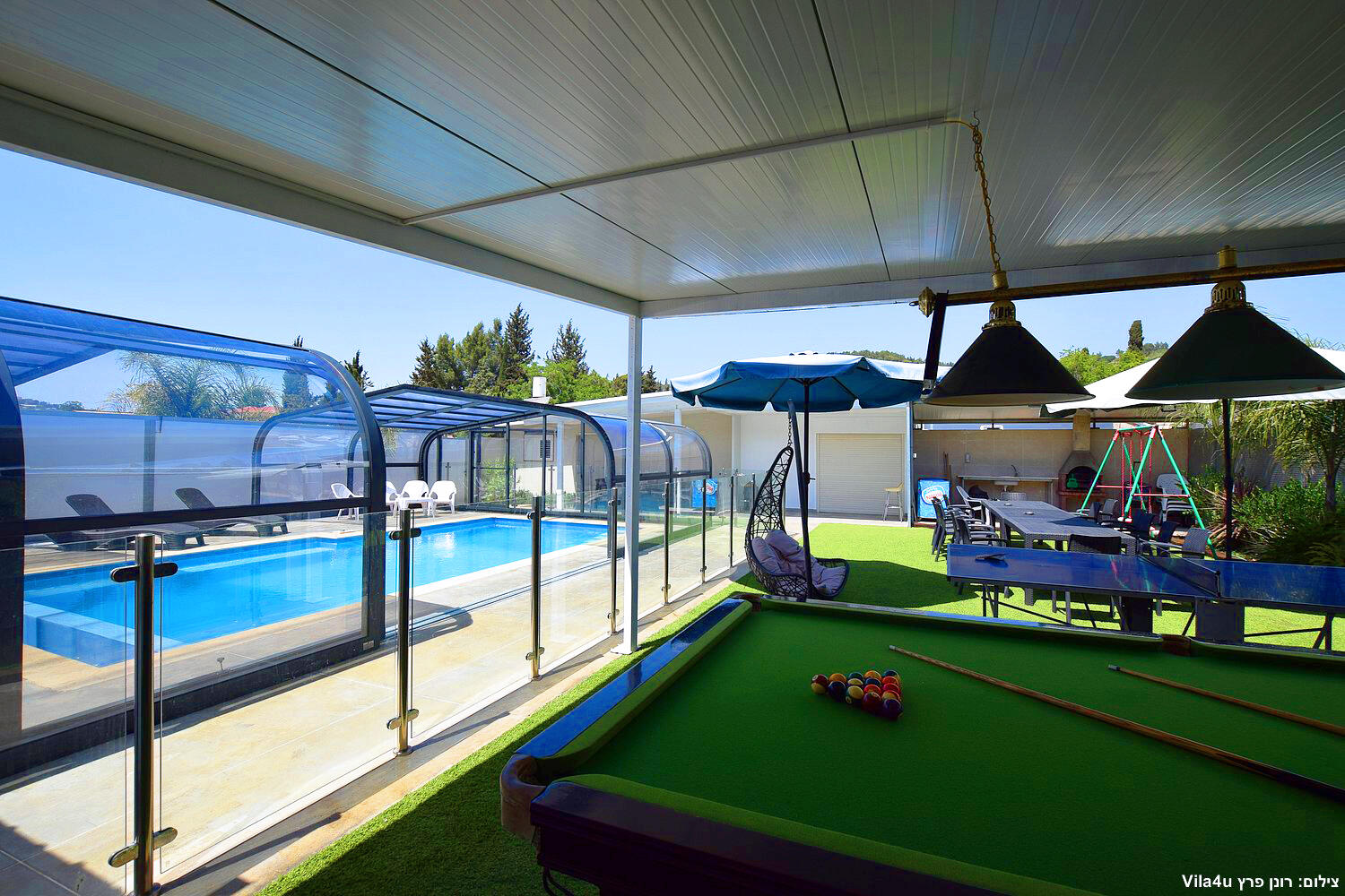 אחוזת הלל בגליל – וילה עם 5 חדרים, סלון נעים, מטבח מאובזר ושטח חוץ רחב הכולל בריכה פרטית מחוממת, שולחן סנוקר, פינת מנגל ועוד. אחוזת הלל בגליל המערבי מזמינה אתכם לחופשה חלומית. במקום ישנם 5 חדרי לינה מעוצבים ומרווחים, סלון גדול, מטבח מאובזר ופינת אוכל. בחצר המתחם תוכלו להירגע בבריכת שחיה פרטית אשר בחודשי החורף מקורה ומחוממת, ג'קוזי ספא, ושולחן סנוקר. אז אם אתם אוהבים לנפוש ולחוות מקומות או סתם רוצים את הפינה השקטה לאירוח סולידי תחת כיפת השמיים, הווילה מציעה לכם את כל מה שצריך לחופשה מושלמת.