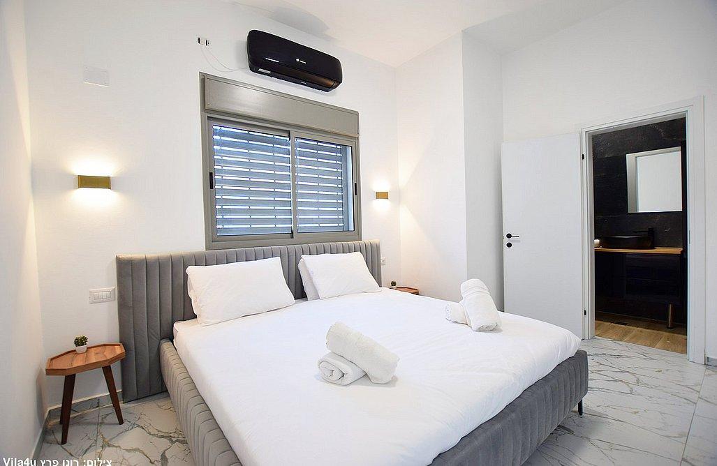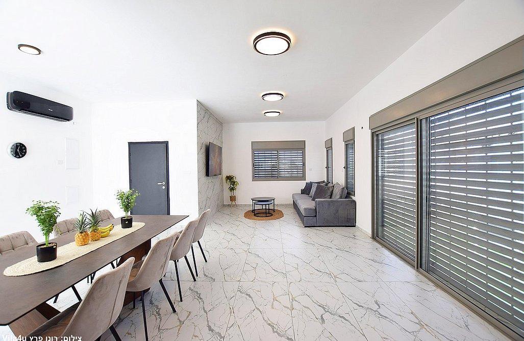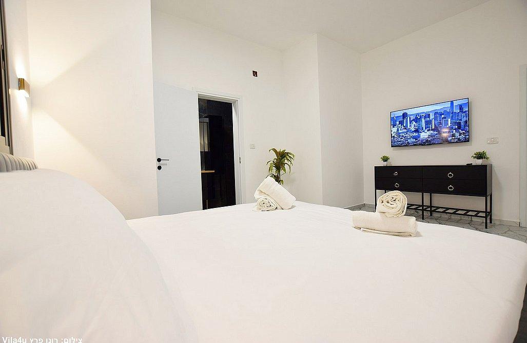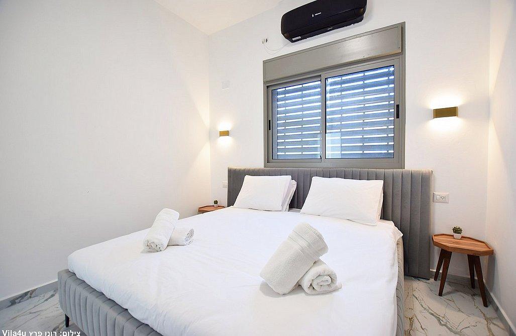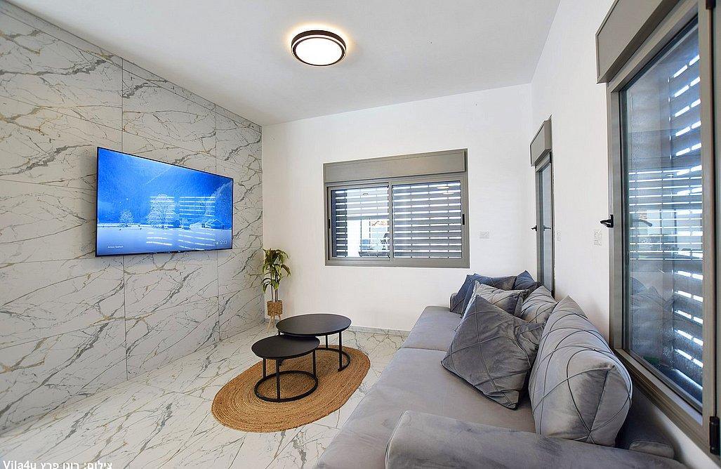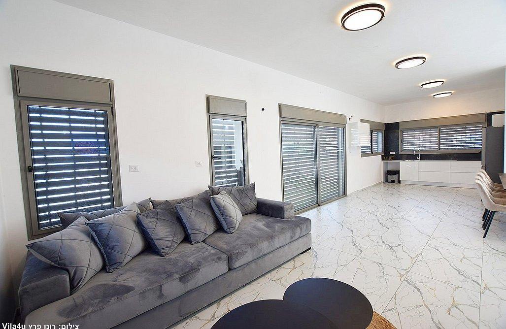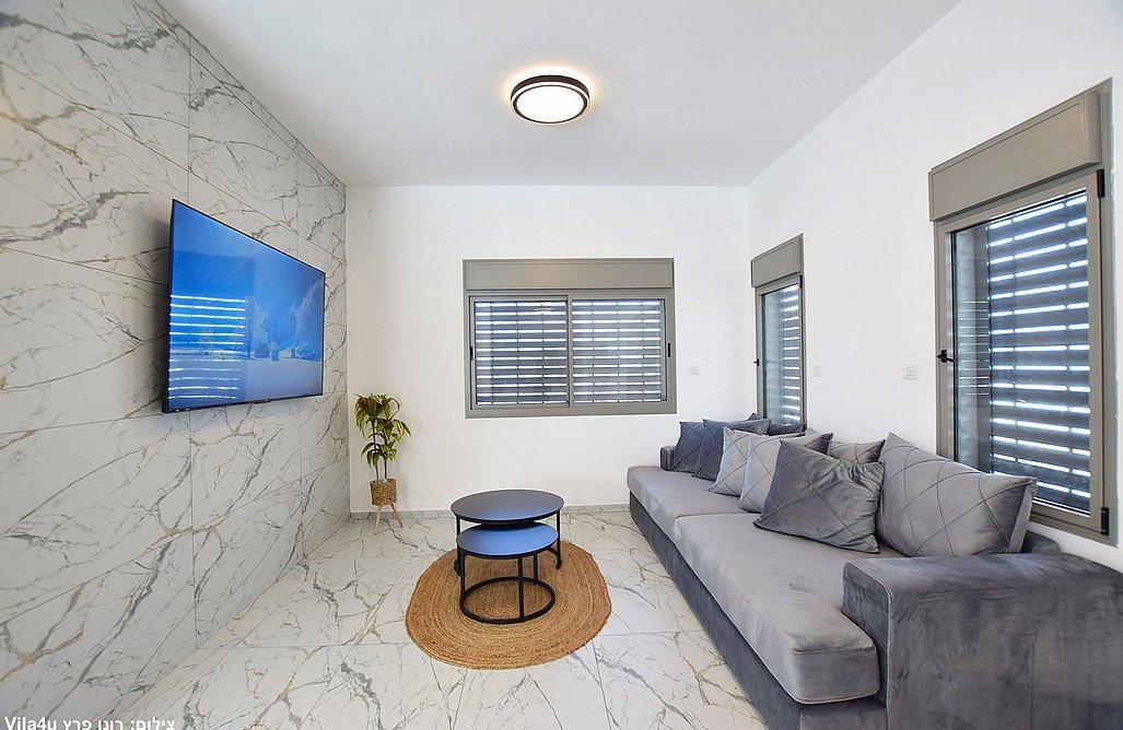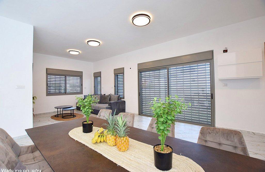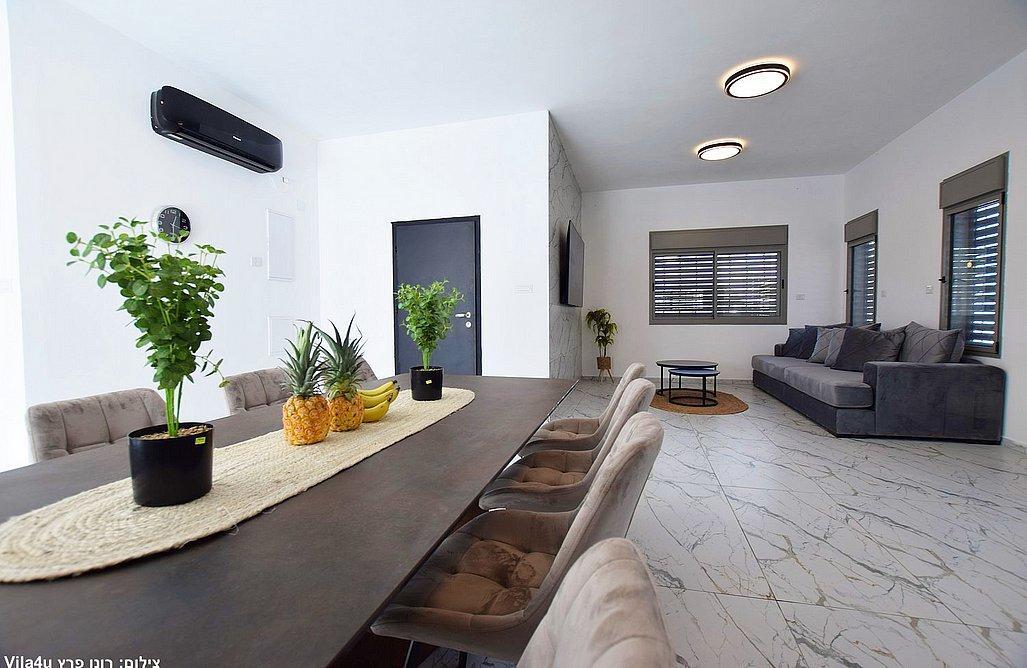 הוילה כוללת שלושה חדרי שינה, מטבח מאובזר וסלון עם טלוויזיה חכמה.