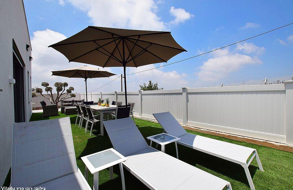 בחצר תיהנו מבריכה, ג'קוזי ספא, פינות ישיבה ומדשאות ירוקות.