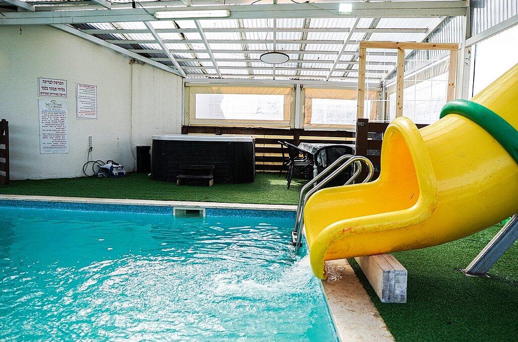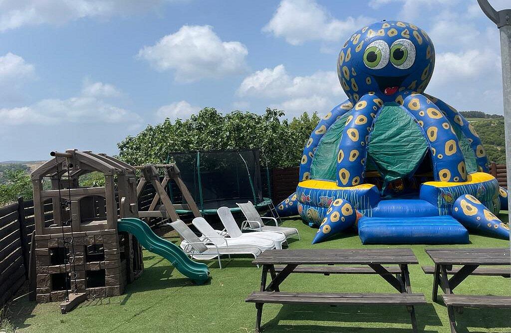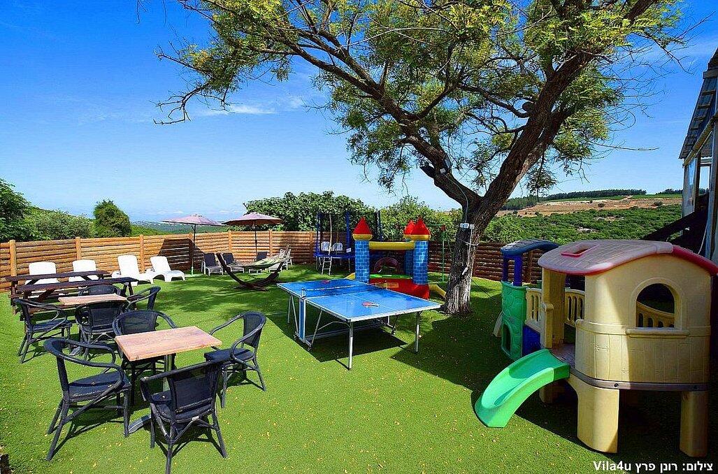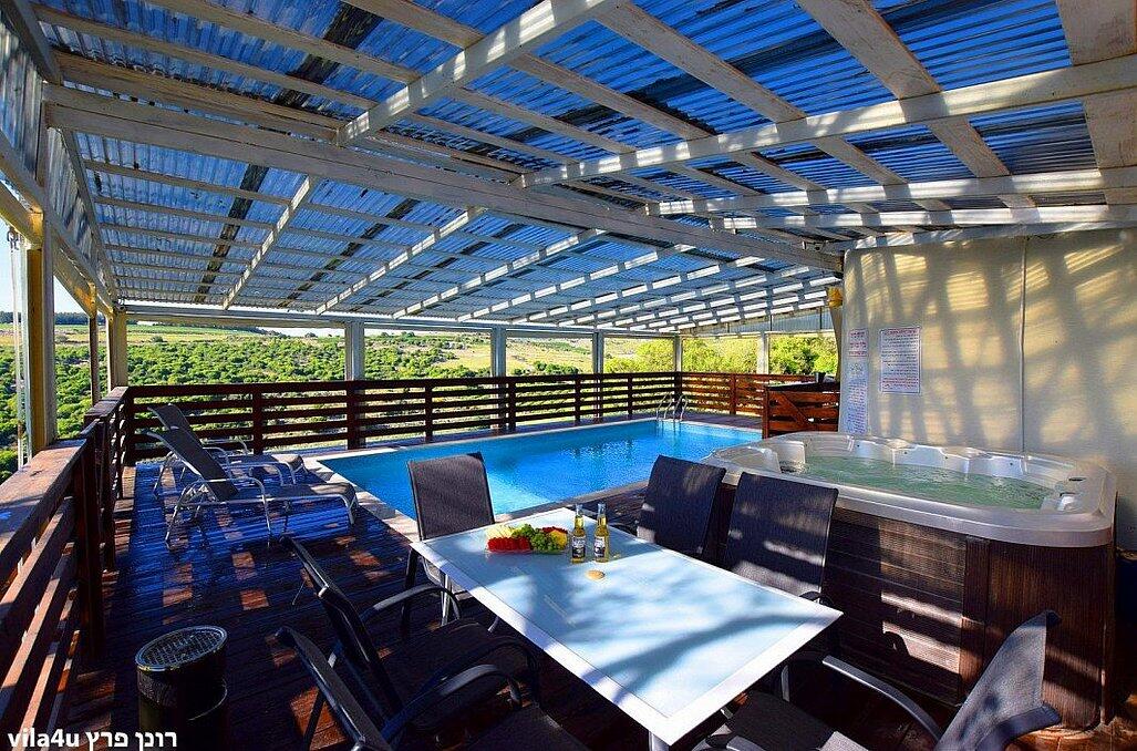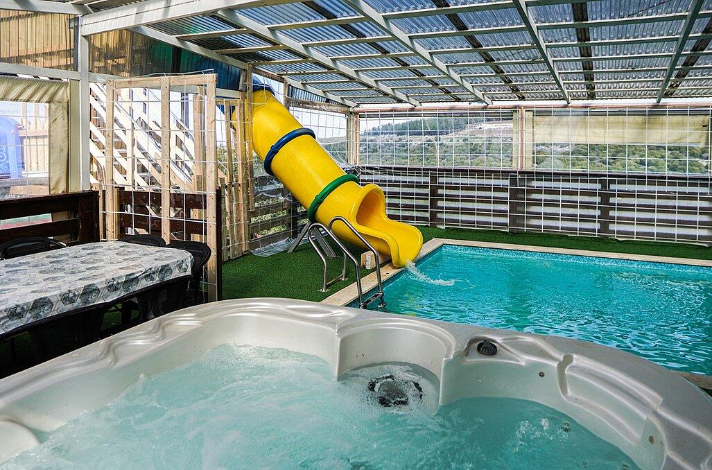 מתחם פנימי מרשים הכולל סלון פינתי גדול ומטבח מאובזר קומפלט, וכמובן מתחם חיצוני שופע באטרקציות לכל המשפחה - בריכת שחייה מחוממת בגודל 4/8 מטר עם מגלשה, ג'קוזי ספא זרמים מענג, נוף עוצר נשימה, מבחר ענק של משחקים לילדים ועוד שלל פינוקים!