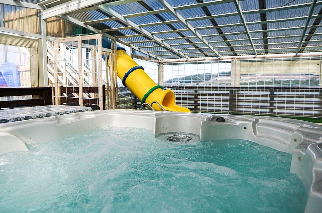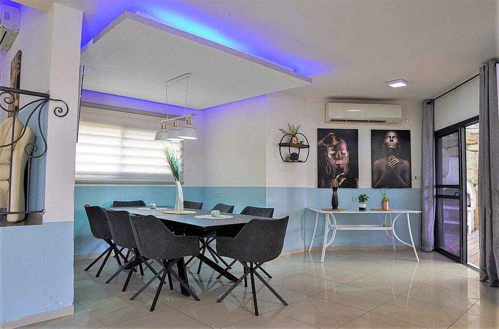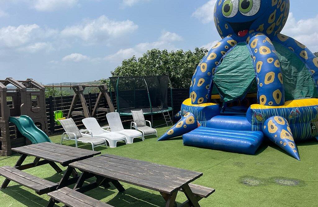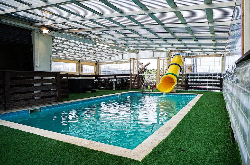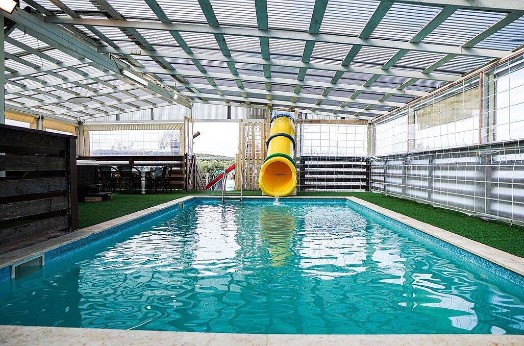 מתחם פנימי מרשים הכולל סלון פינתי גדול ומטבח מאובזר קומפלט, וכמובן מתחם חיצוני שופע באטרקציות לכל המשפחה - בריכת שחייה מחוממת בגודל 4/8 מטר עם מגלשה, ג'קוזי ספא זרמים מענג, נוף עוצר נשימה, מבחר ענק של משחקים לילדים ועוד שלל פינוקים!