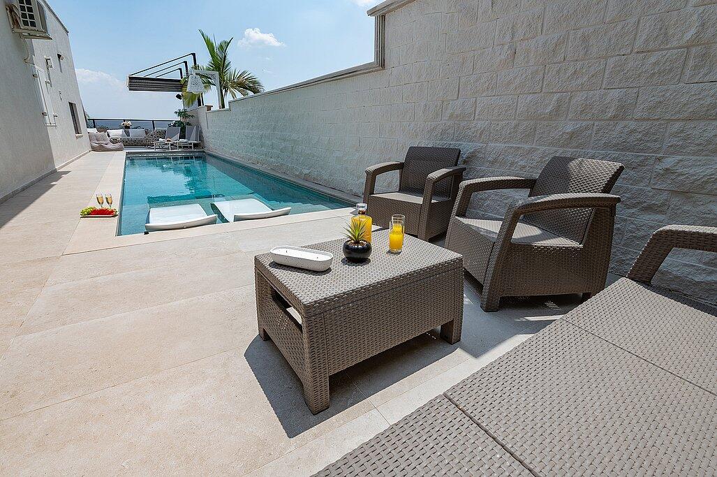 מרפסות, מדשאות ופינות ישיבה מוצלות מחכות לכם בין עצי הגן – חופשה של טבע, שקט וסטנדרט גבוה.