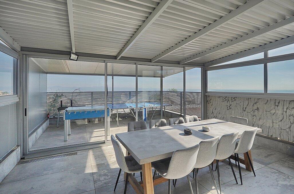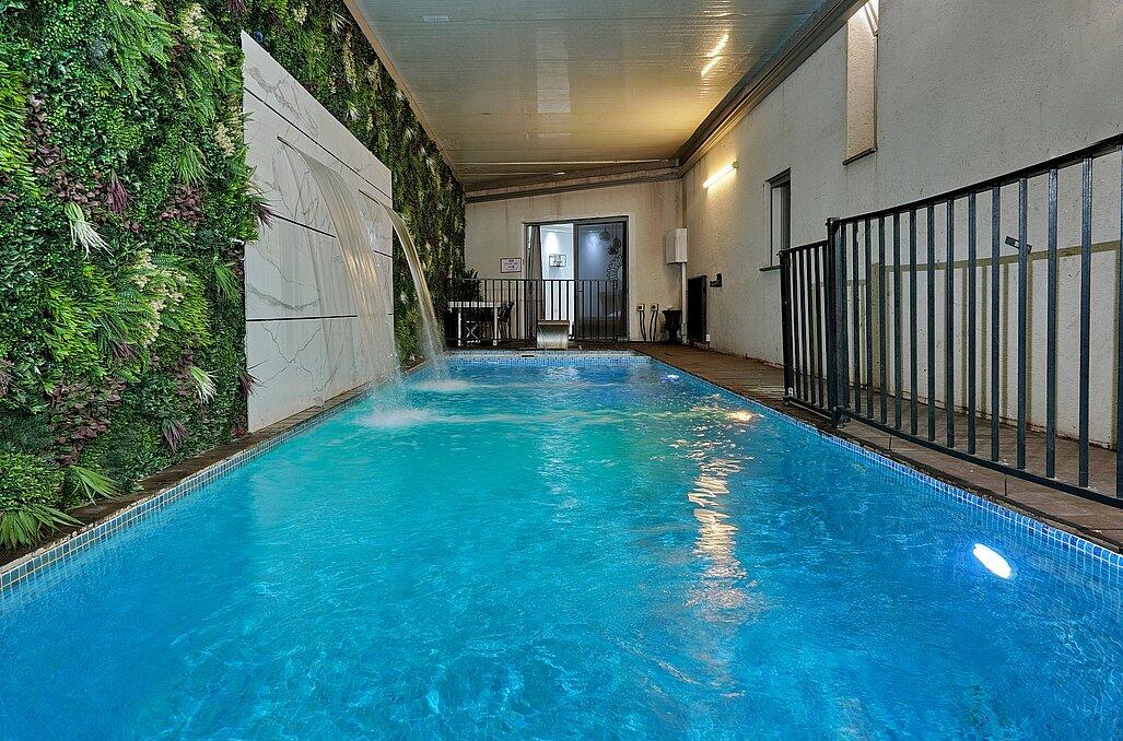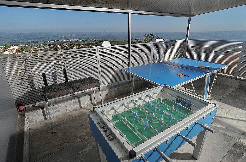 וילה עם 7 חדרי שינה ו 6 חדרי רחצה עם מתחם בריכה מקורה ומחומם ועם ג'קוזי ספא מפנק ואפילו קמין מחמם. לוילה יש גן משחקים לילדים ושולחנות משחק להנאת המתארחים, עמדת מגל ונוף מדהים.