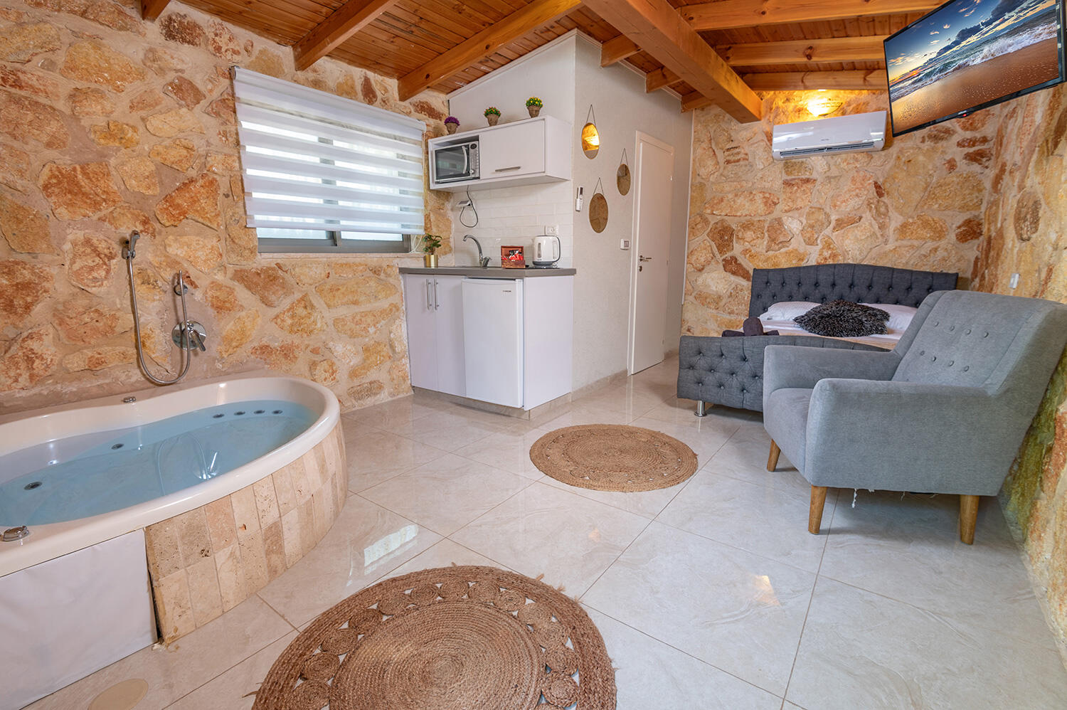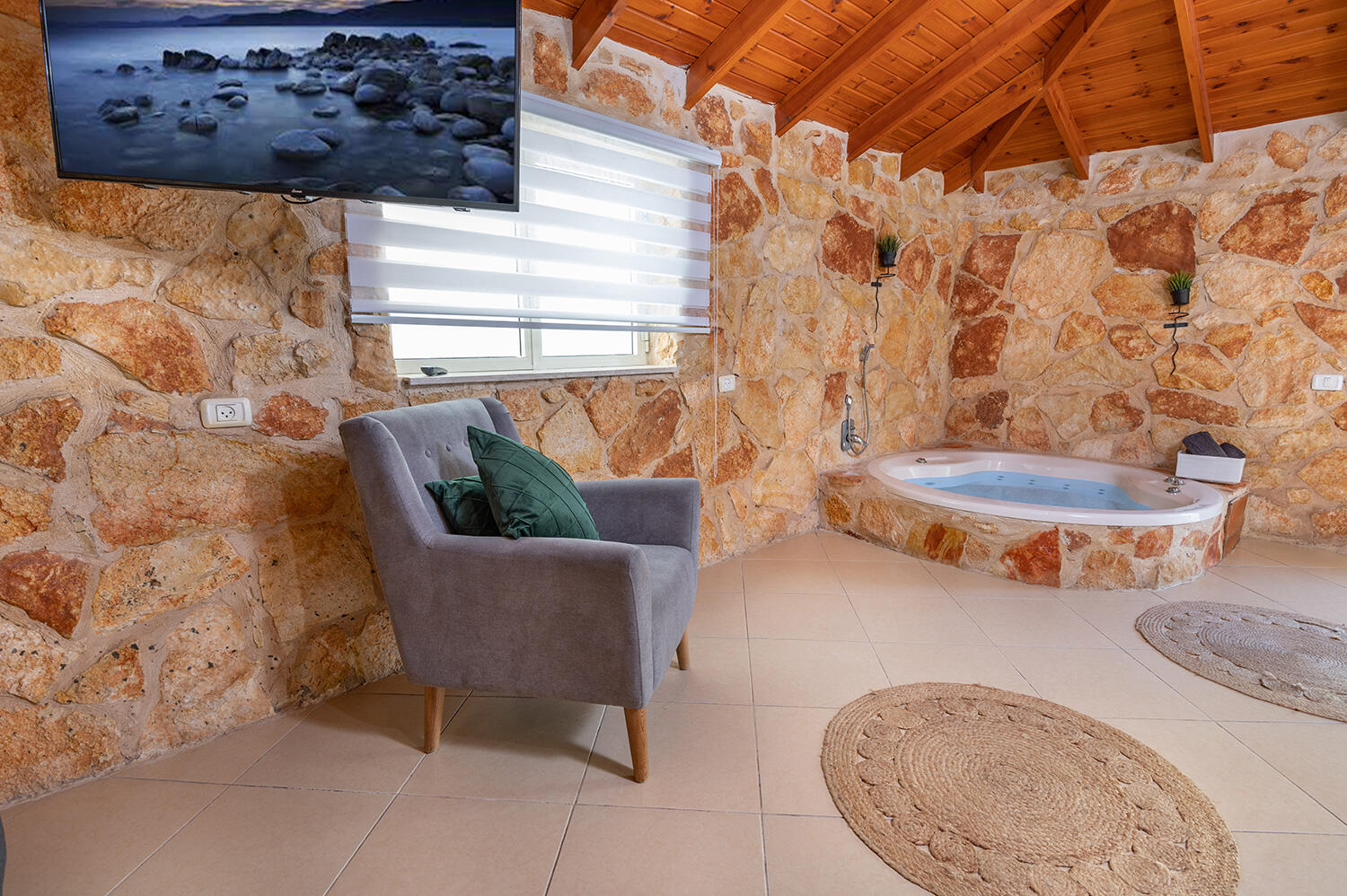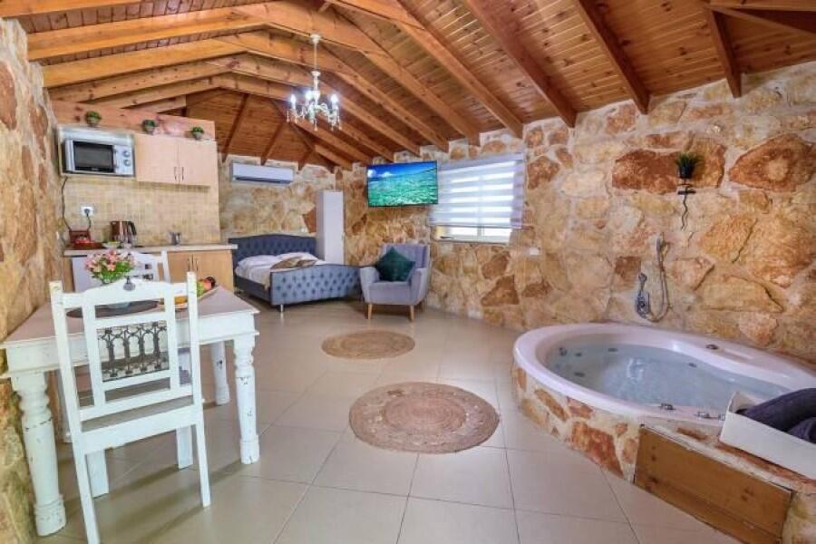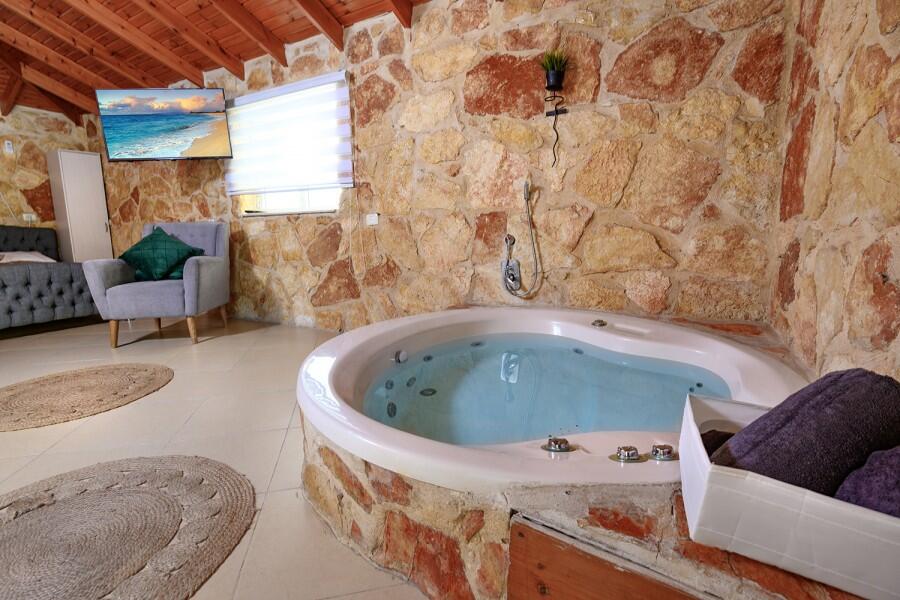 במתחם היוקרתי שלנו תיהנו מ-2 סוויטות מאבן בעיצוב מרהיב, כל אחת מצוידת בג'קוזי רומנטי ומפנק. החצר המרוויחה מציעה בריכת שחייה מחוממת ומקורה, צמחייה מטופחת ומגוון אטרקציות נוספות שיהפכו את החופשה שלכם לבלתי נשכחת. המתחם מיועד לאירוח זוגות, משפחות וקבוצות, ומבטיח חוויה יוקרתית ומפנקת