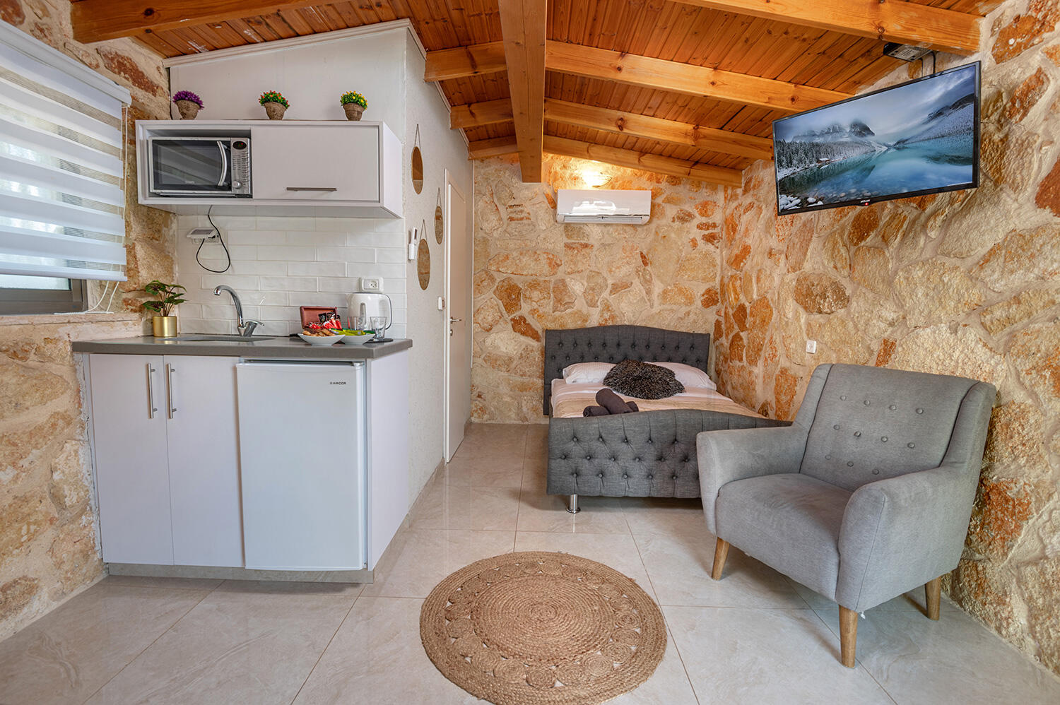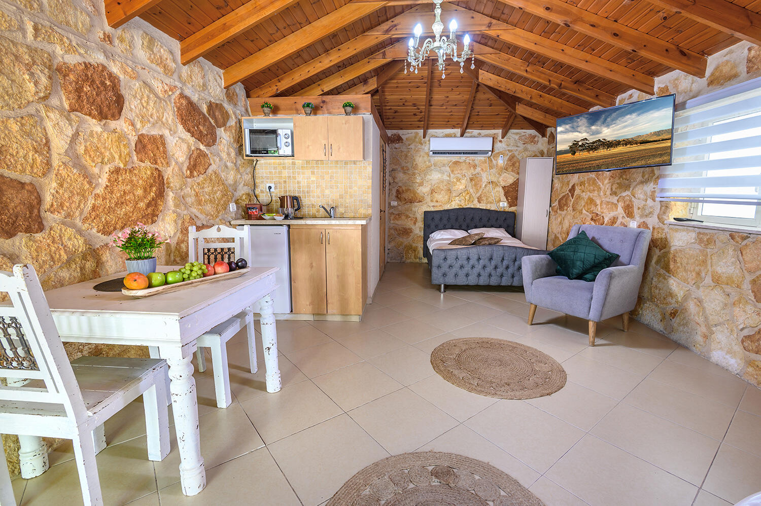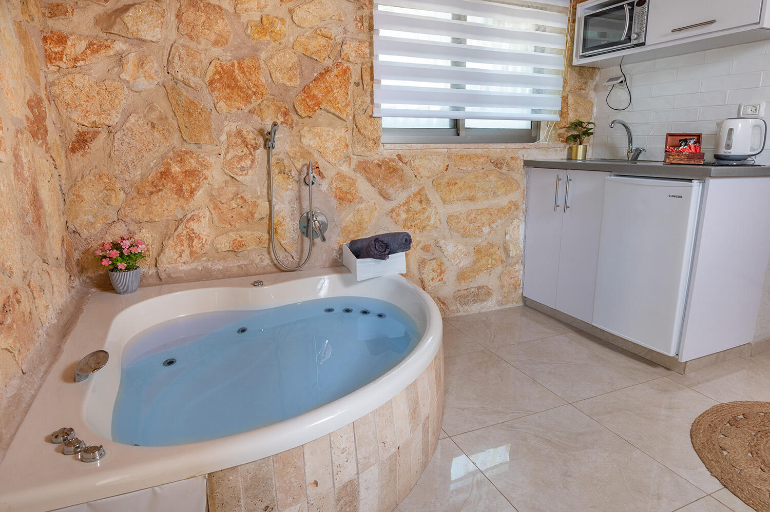 במתחם היוקרתי שלנו תיהנו מ-2 סוויטות מאבן בעיצוב מרהיב, כל אחת מצוידת בג'קוזי רומנטי ומפנק. החצר המרוויחה מציעה בריכת שחייה מחוממת ומקורה, צמחייה מטופחת ומגוון אטרקציות נוספות שיהפכו את החופשה שלכם לבלתי נשכחת. המתחם מיועד לאירוח זוגות, משפחות וקבוצות, ומבטיח חוויה יוקרתית ומפנקת