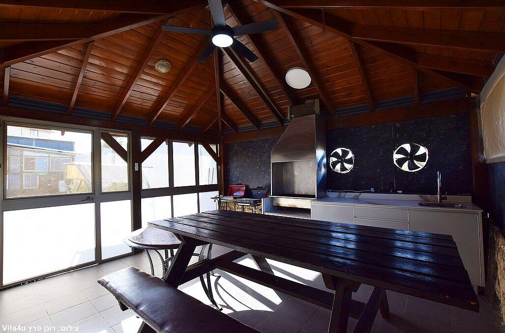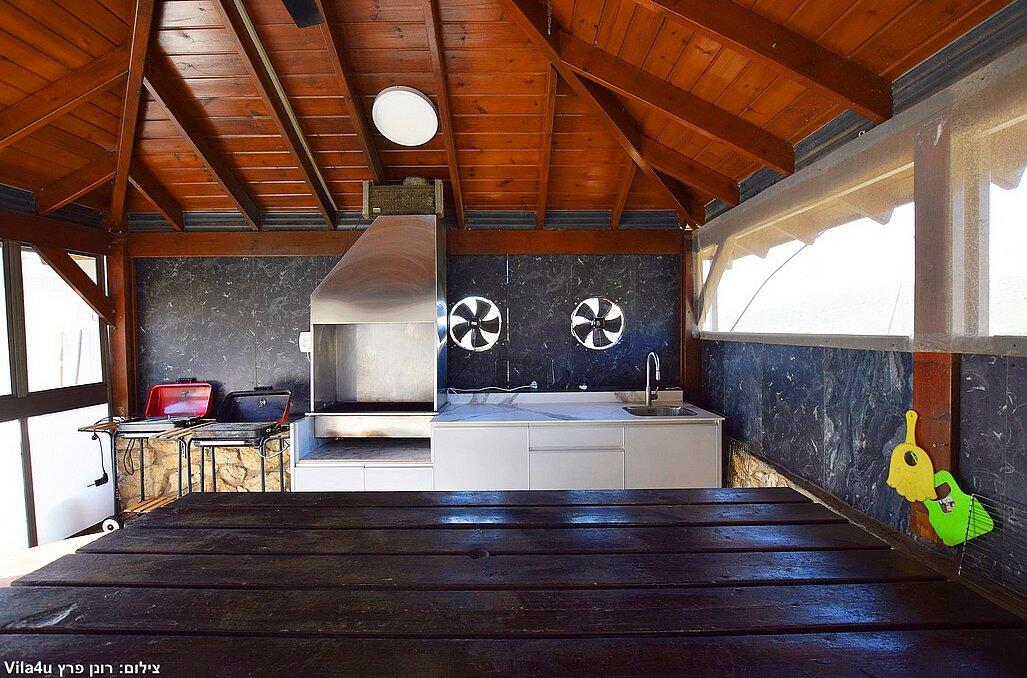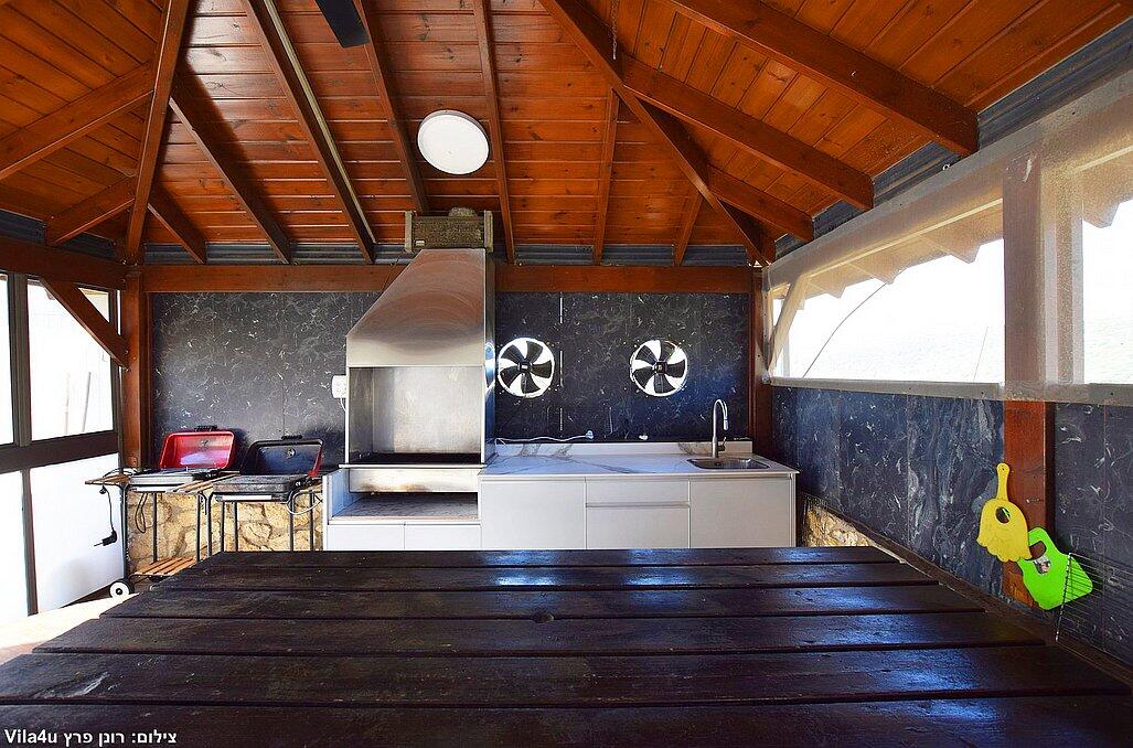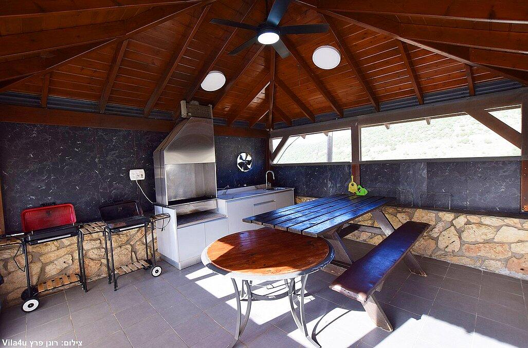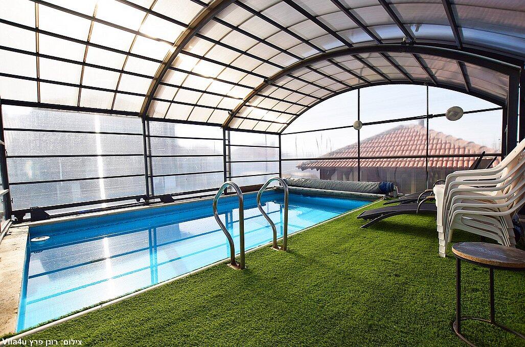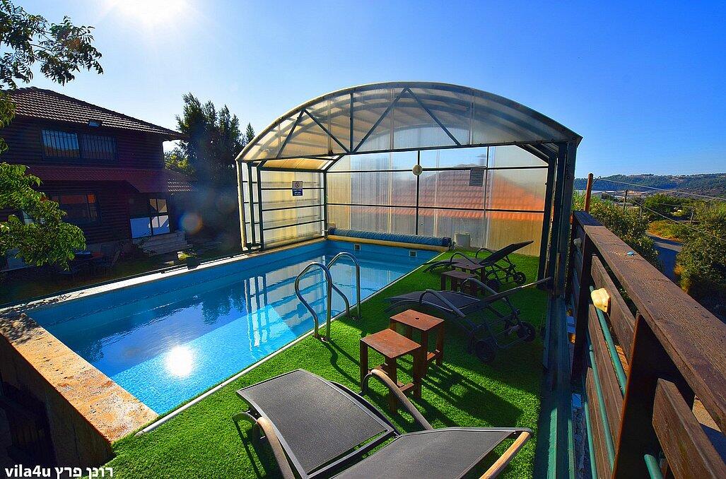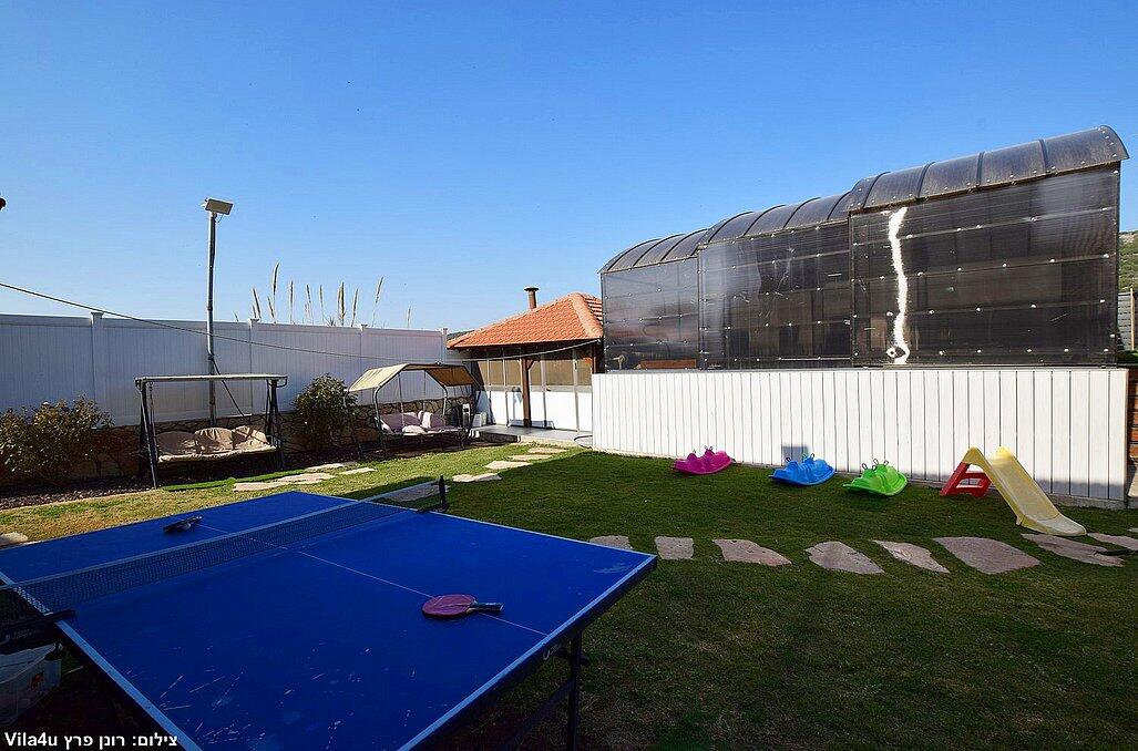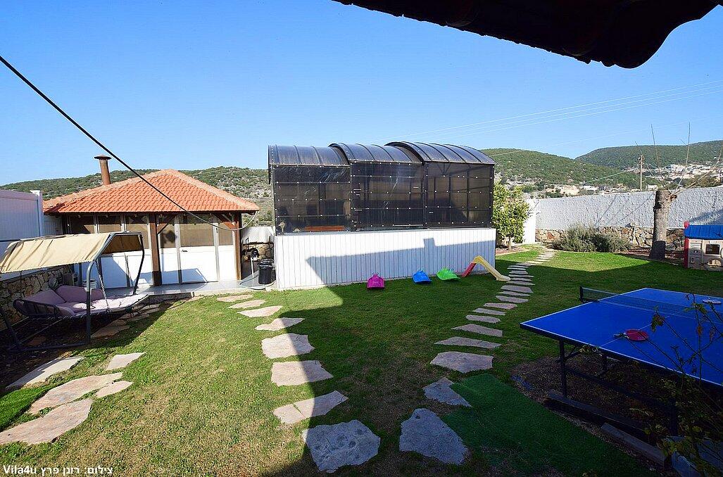 הגן המטופח משתרע על שטח נרחב עם צמחייה עשירה, מטבח חוץ עם פינת ברביקיו, ובריכת שחייה גדולה המחוממת ומקורה בעונת החורף. המקום המושלם לחופשה משפחתית או מפגש חברים באווירה קסומה.