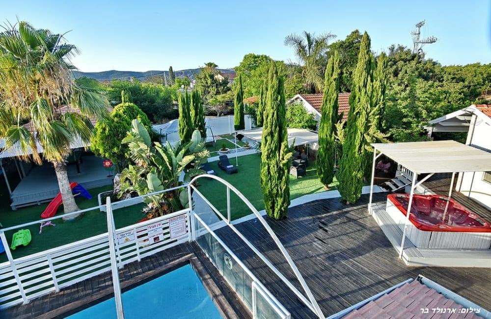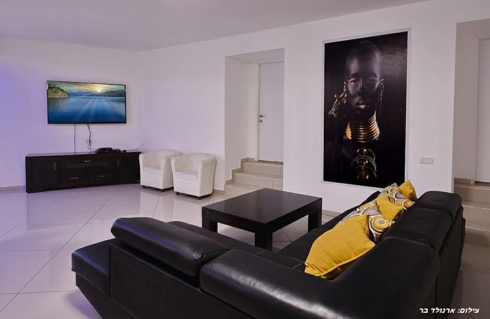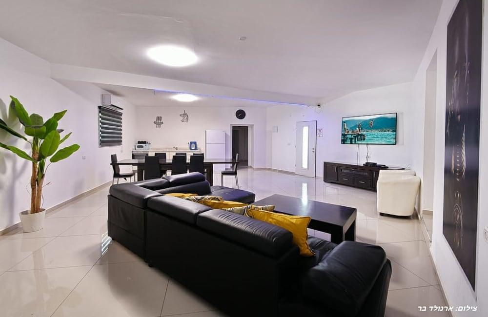 אושיה ריזורט במושב עבדון מציע וילה פרטית עם 5 חדרי שינה זוגיים וחדר ילדים, סלון מרווח, ומטבח מאובזר.