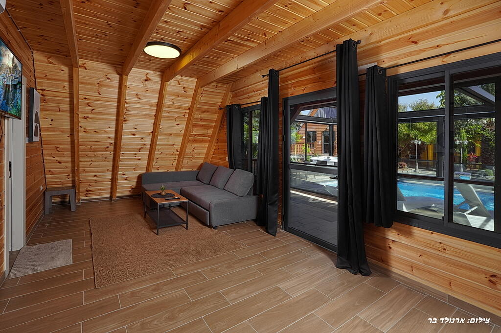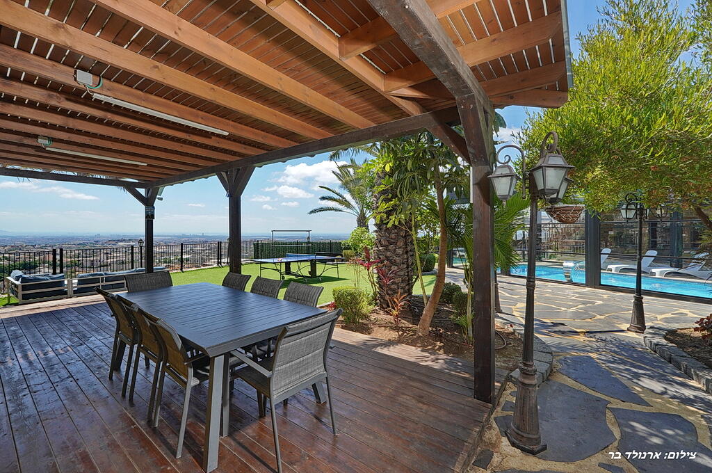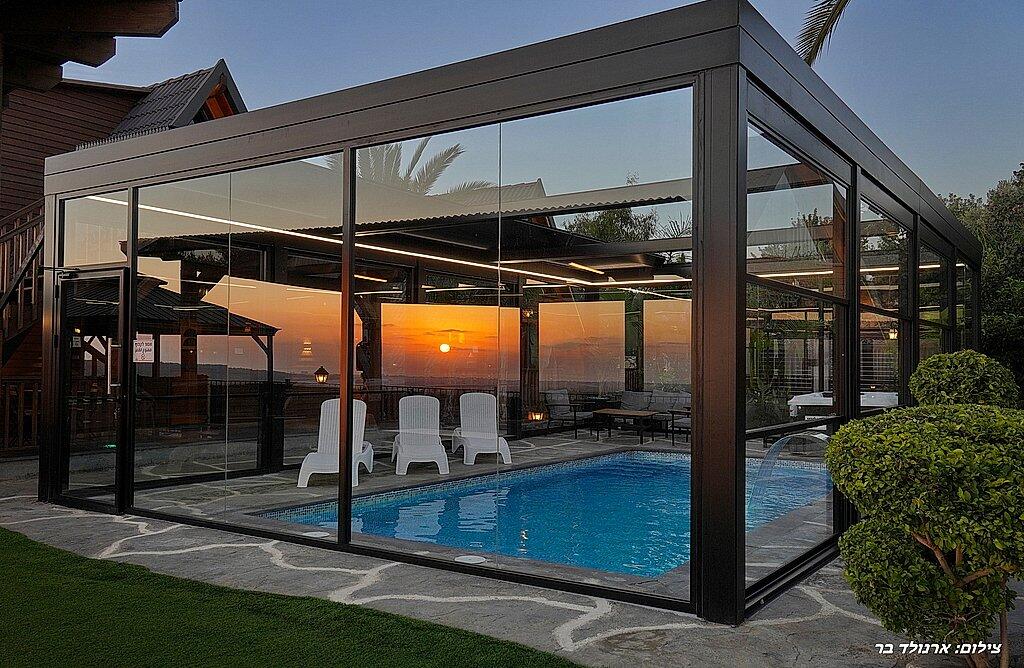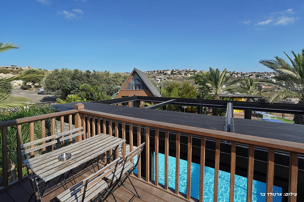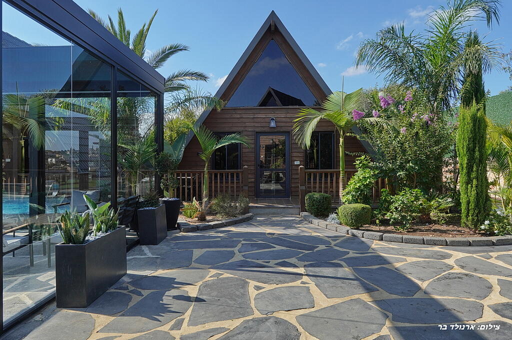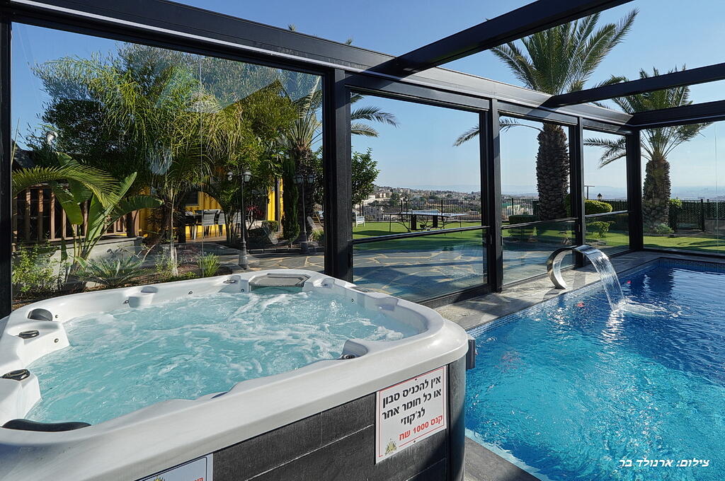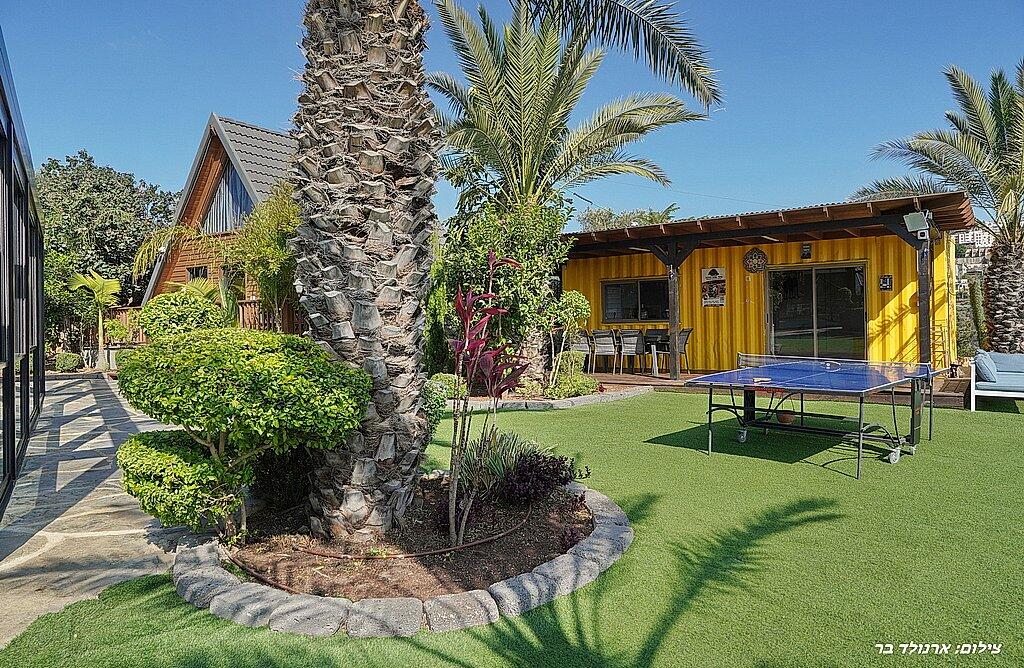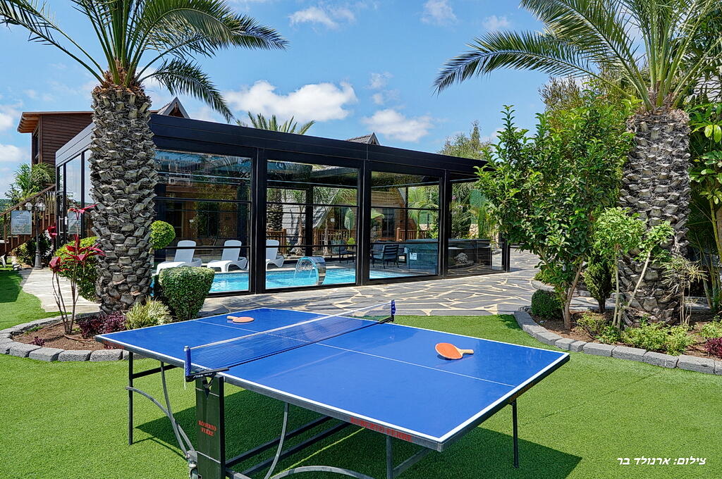 במתחם החיצוני המדהים תמצאו חצר גדולה ומטופחת המותאמת גם לאירועים של עד 100 איש. המתחם כולל מדשאות ירוקות, בריכה מאובטחת מחוממת ומקורה עם נעילת ילדים, שולחנות משחק, עמדת מנגל בנויה מאבן, מתקני משחקים לילדים, ופינות ישיבה ושיזוף מפנקות במיוחד.