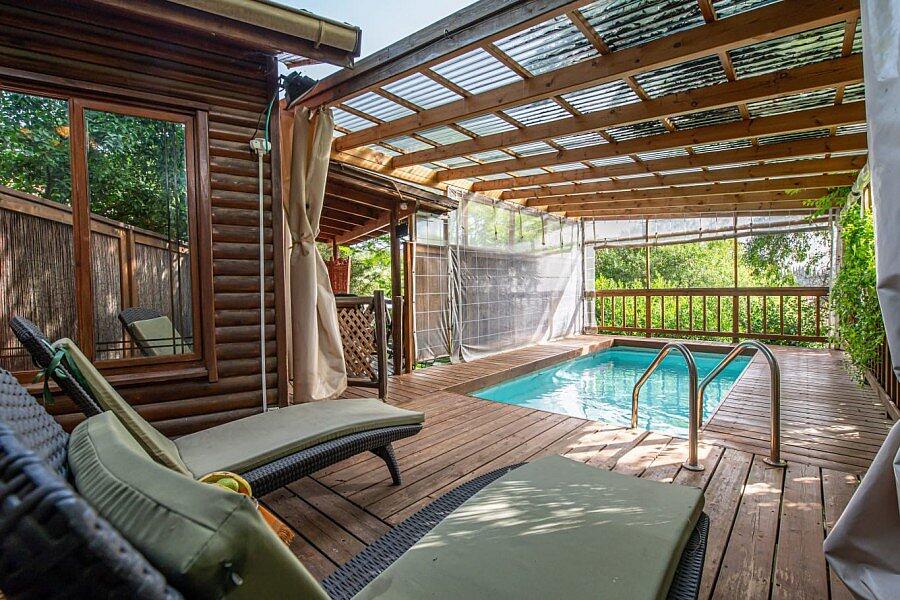בראש פינת נוי מחכות לכם שתי בקתות עץ קסומות וסוויטה מפנקת עם בריכה פרטית, ג'קוזי ונוף עוצר נשימה.